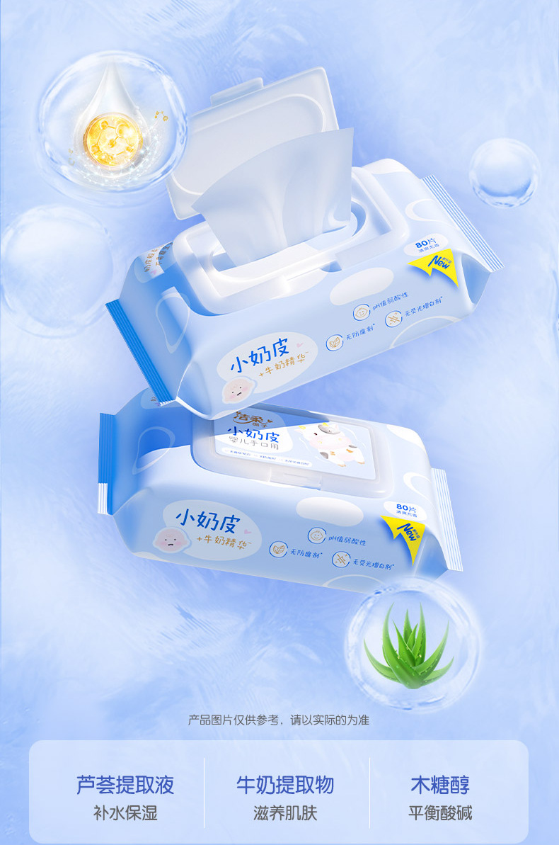 Jierou Baby Wipes, Skin-Friendly Small Milk Skin Wipes, Affordable 80-Piece Large Pack, Non-Irritating for Hands and Mouth, Js243-06E