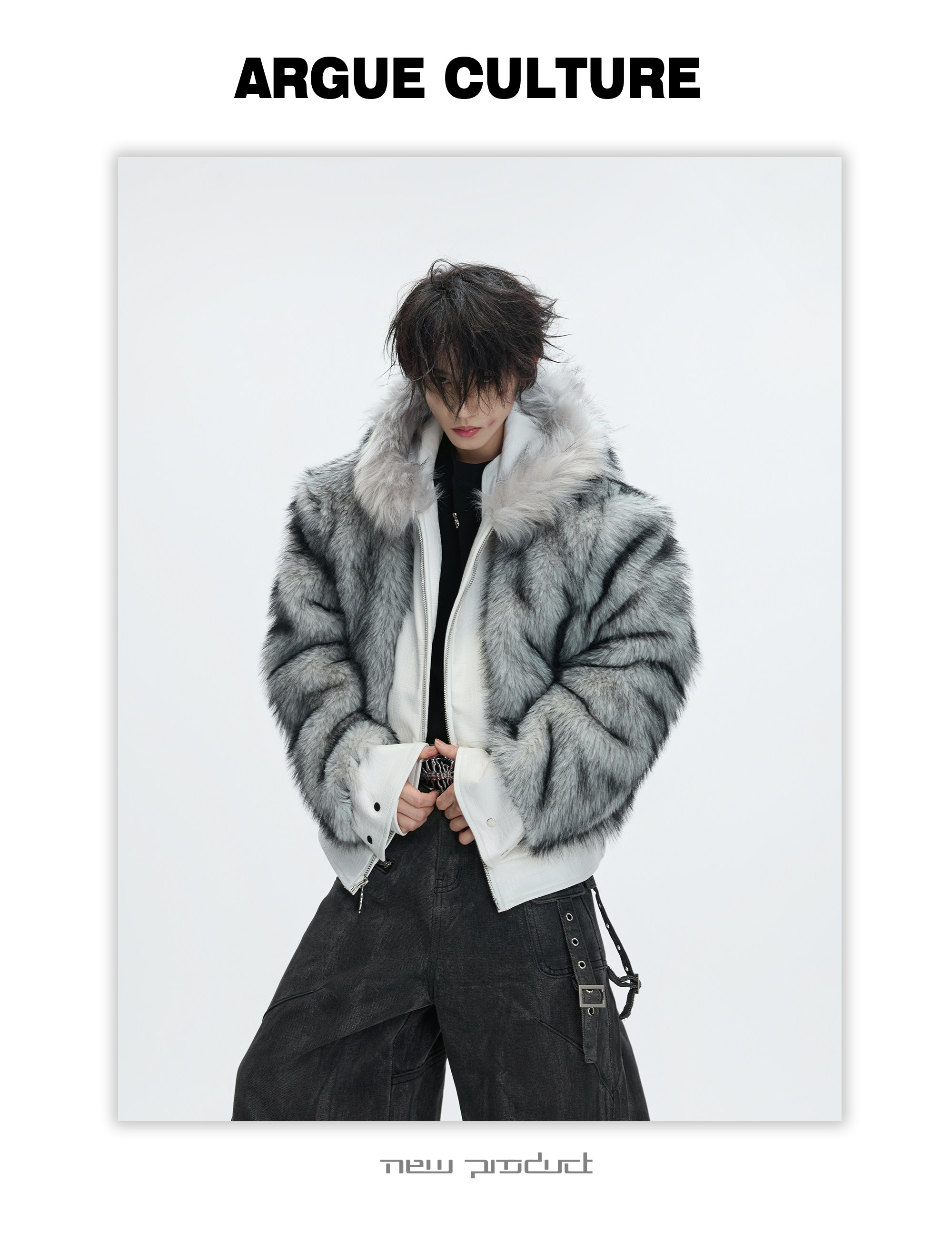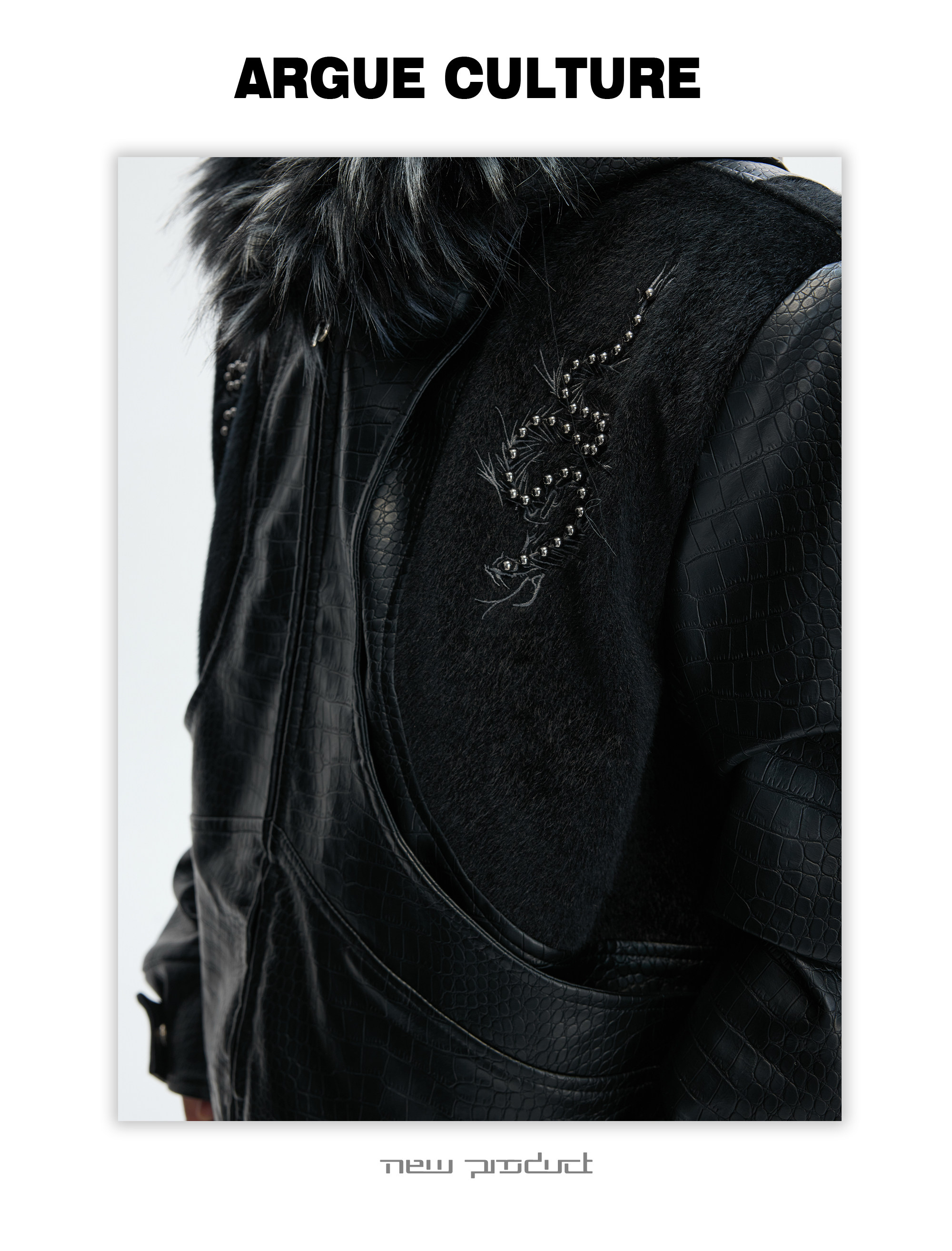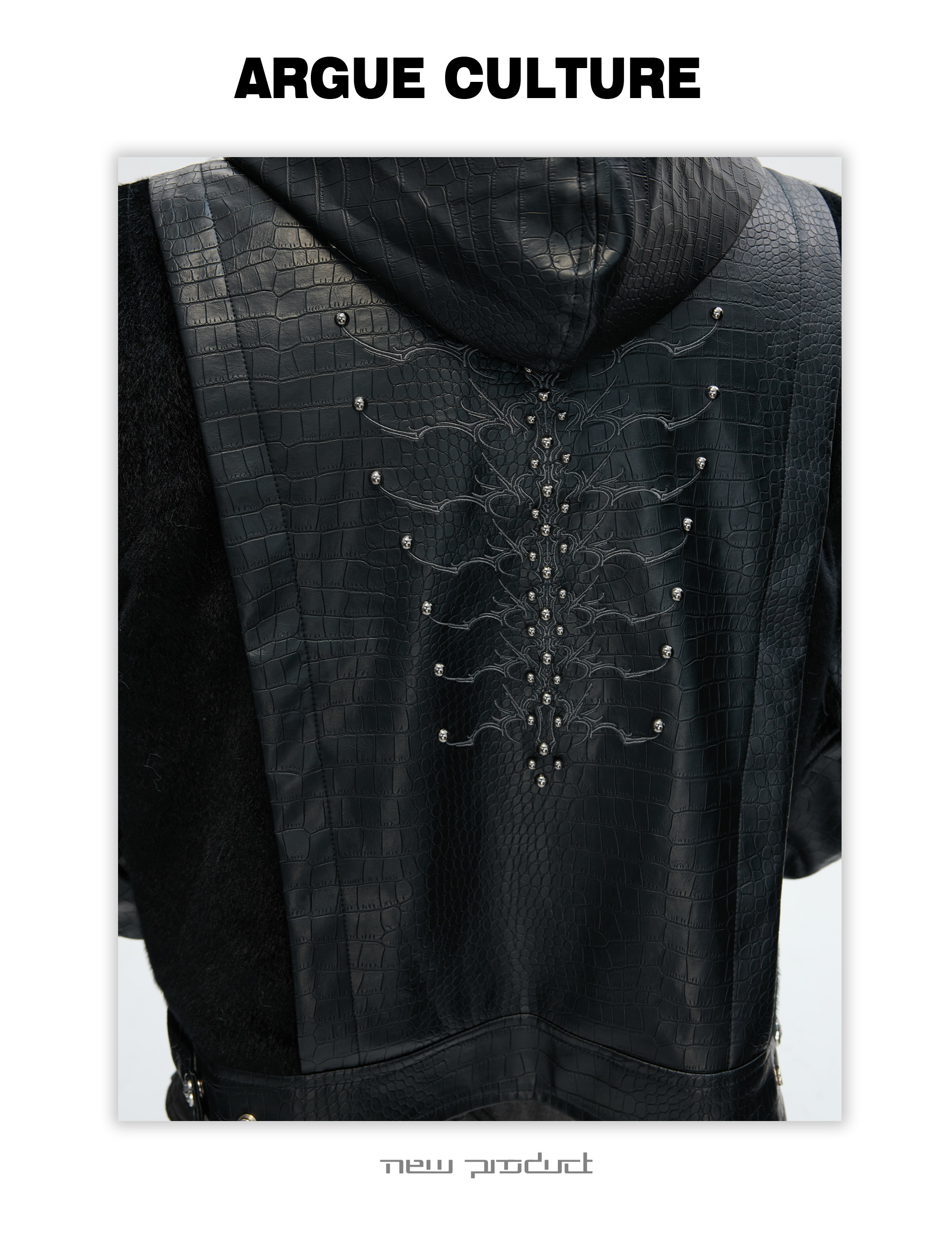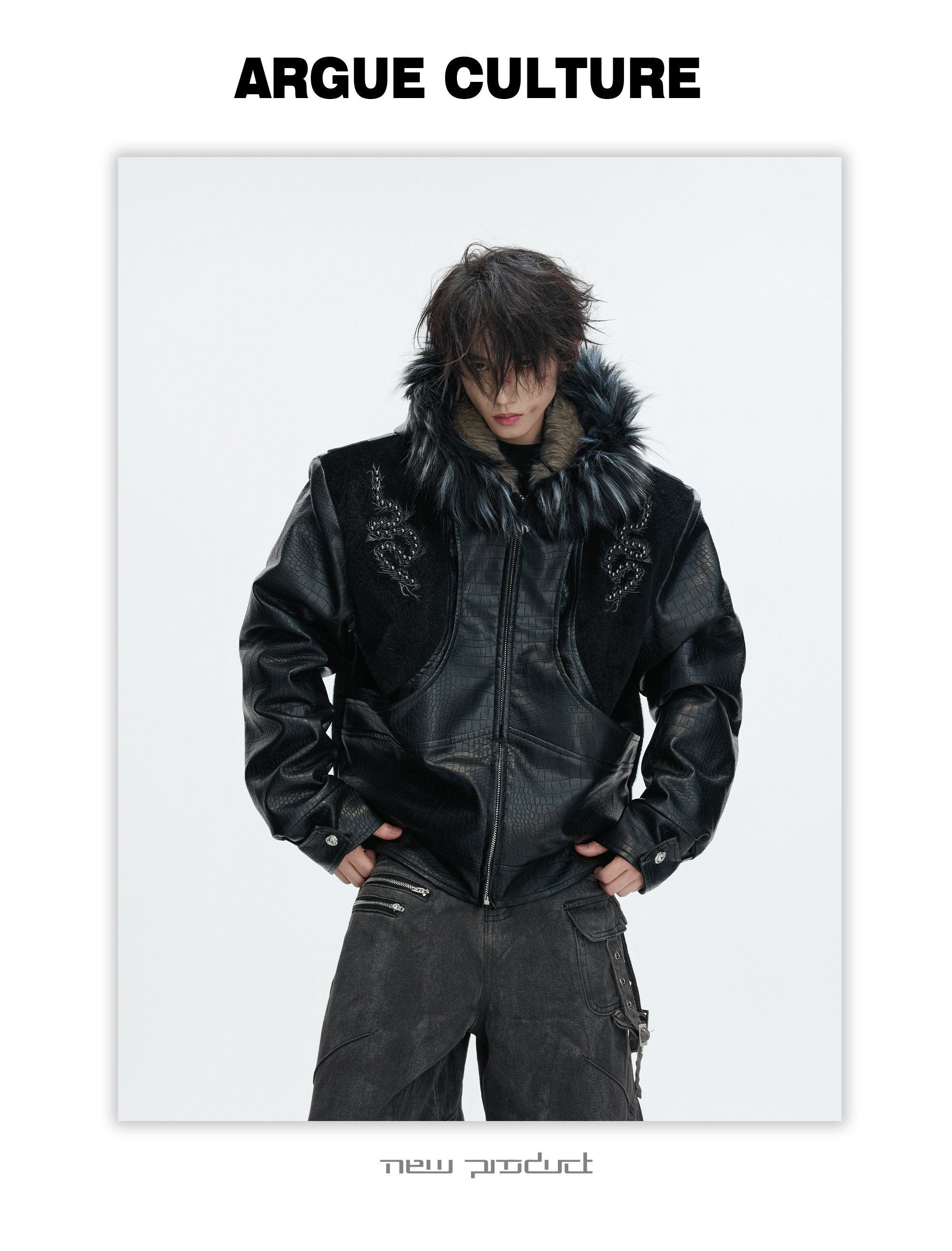 Argueculture Shadow* Horsehair Crocodile Pattern Hooded Mountain Carving Fleece-Lined Thickened Cotton Jacket Coat