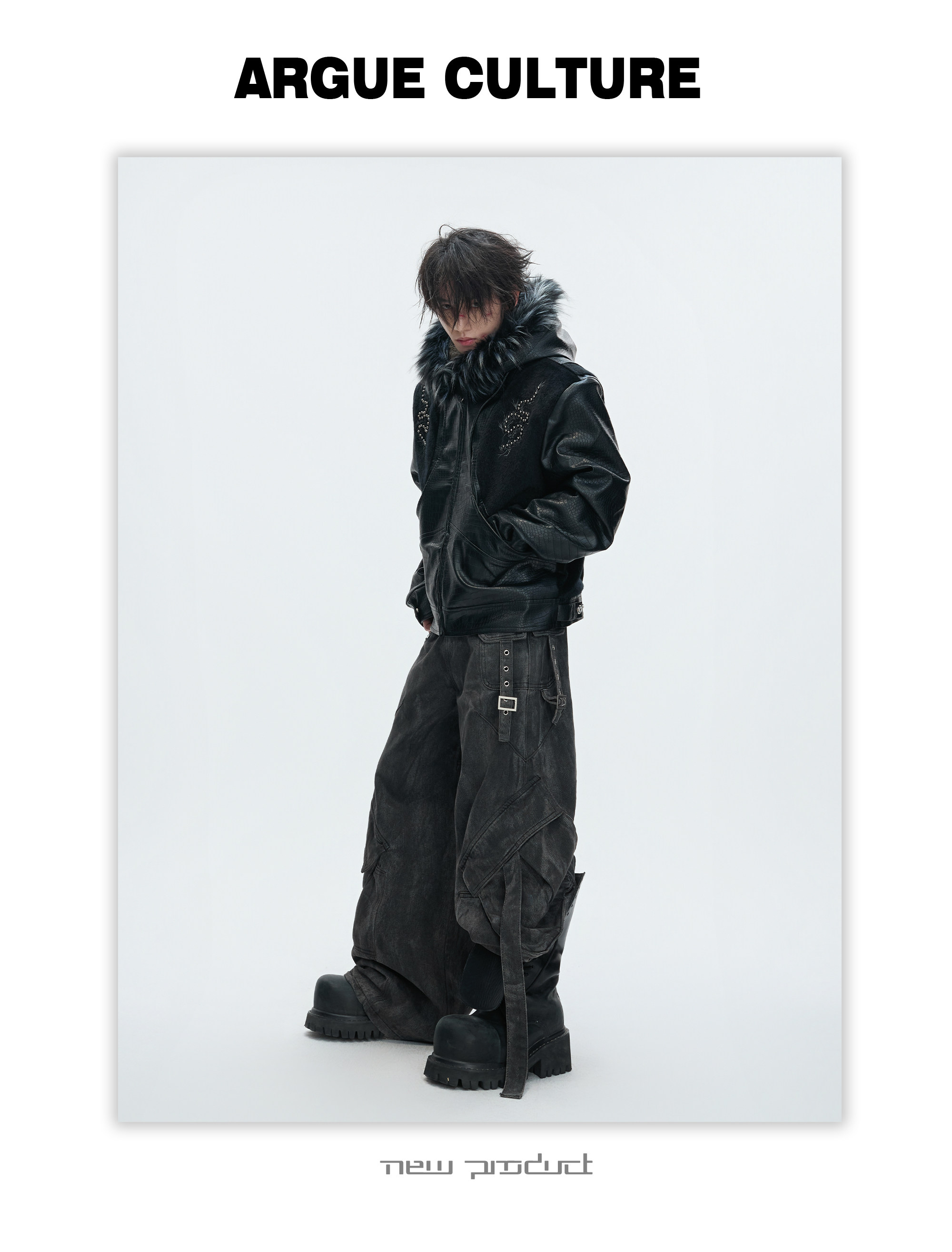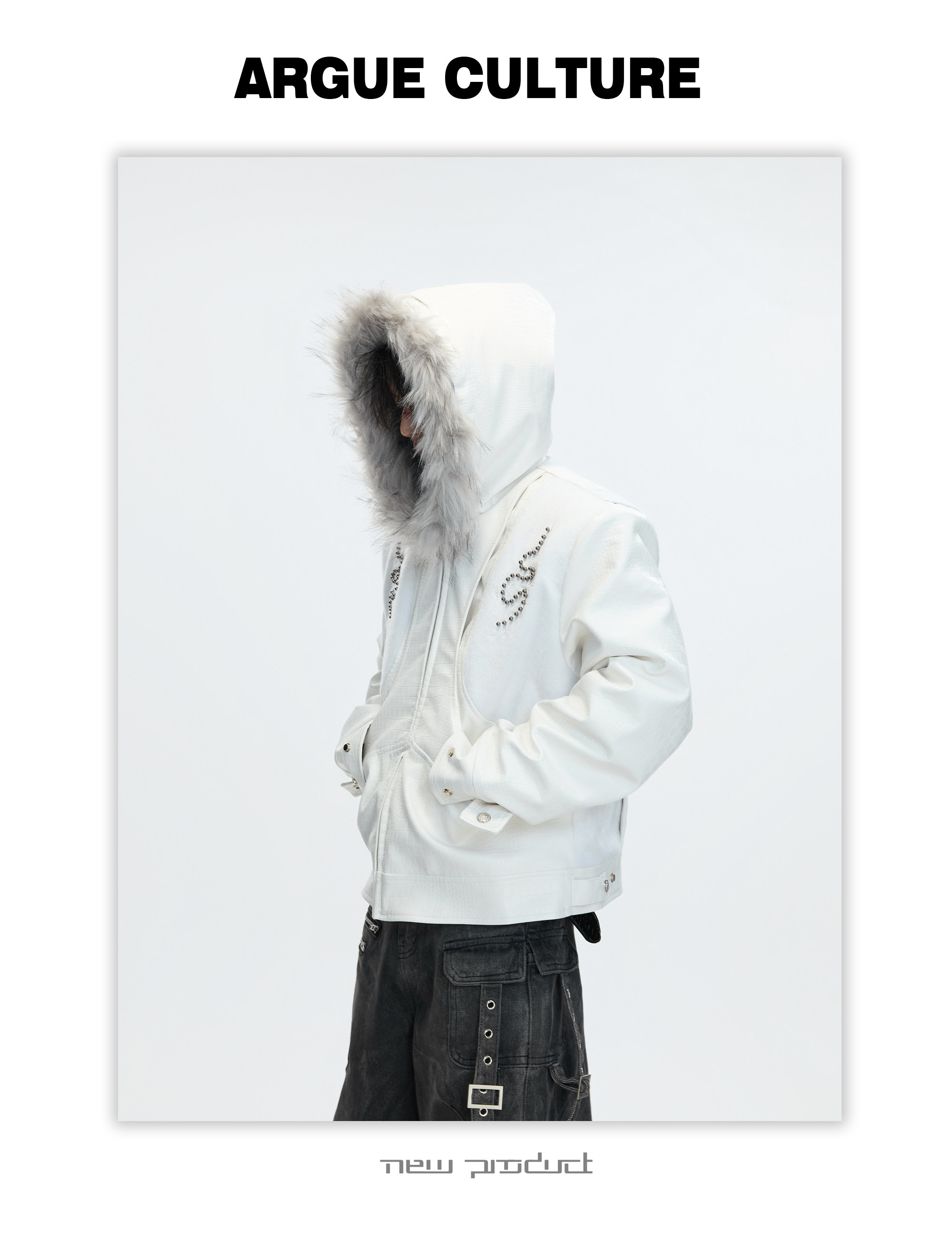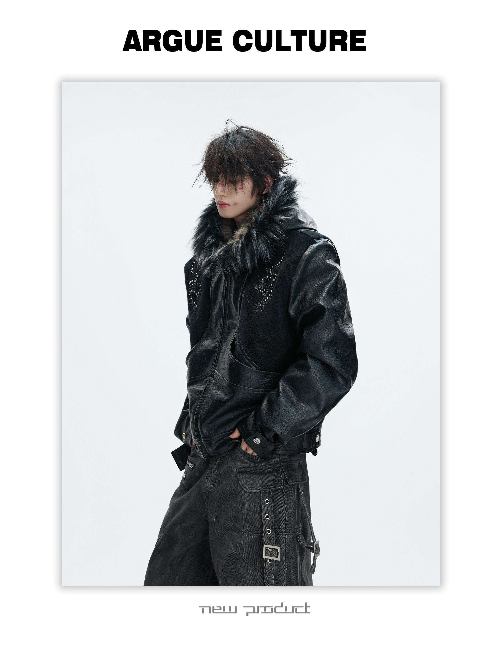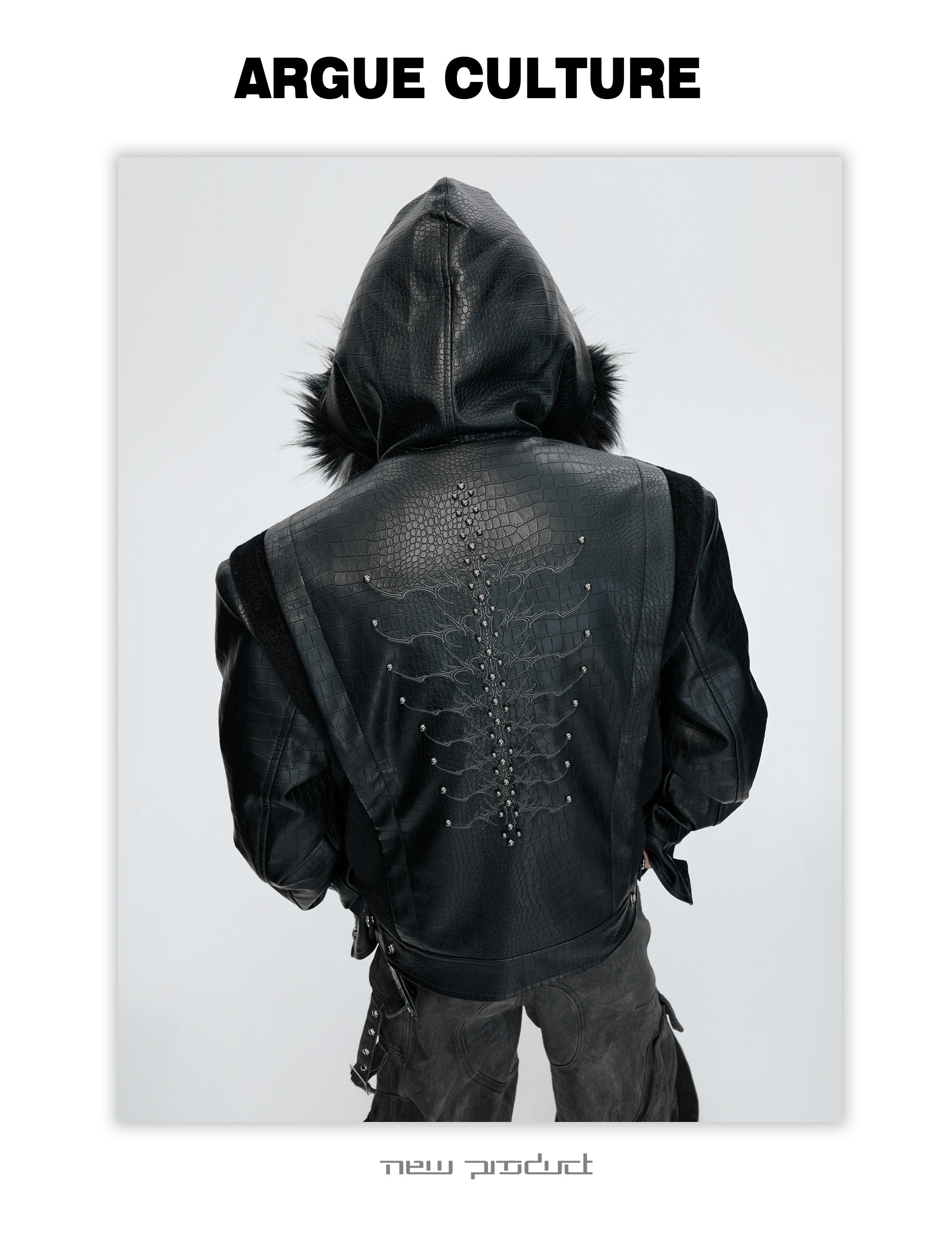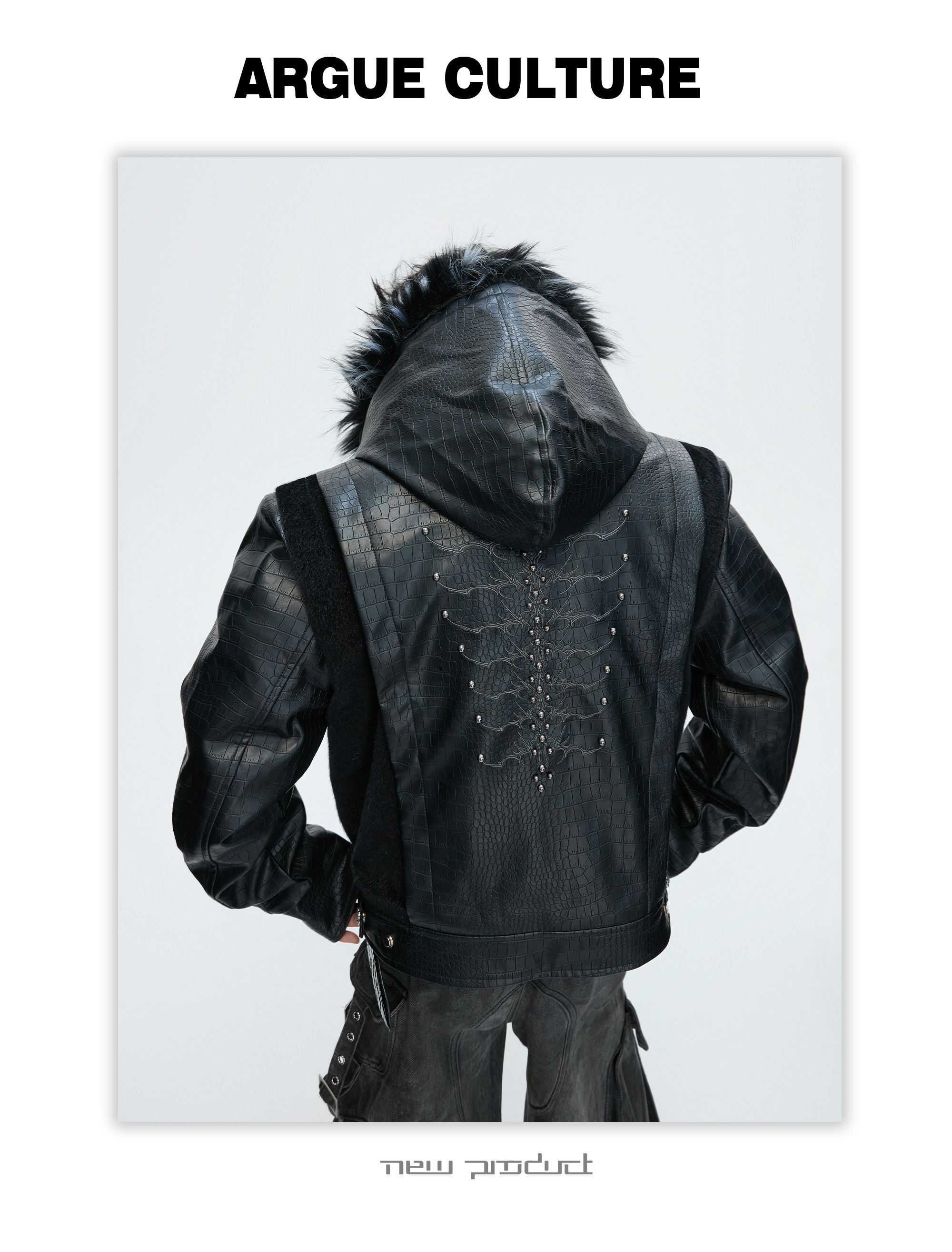 Argueculture Shadow* Horsehair Crocodile Pattern Hooded Mountain Carving Fleece-Lined Thickened Cotton Jacket Coat