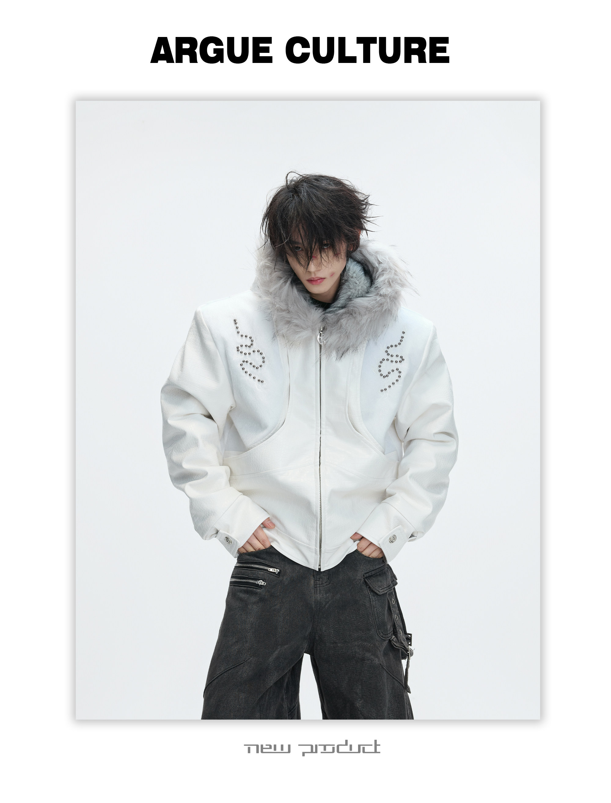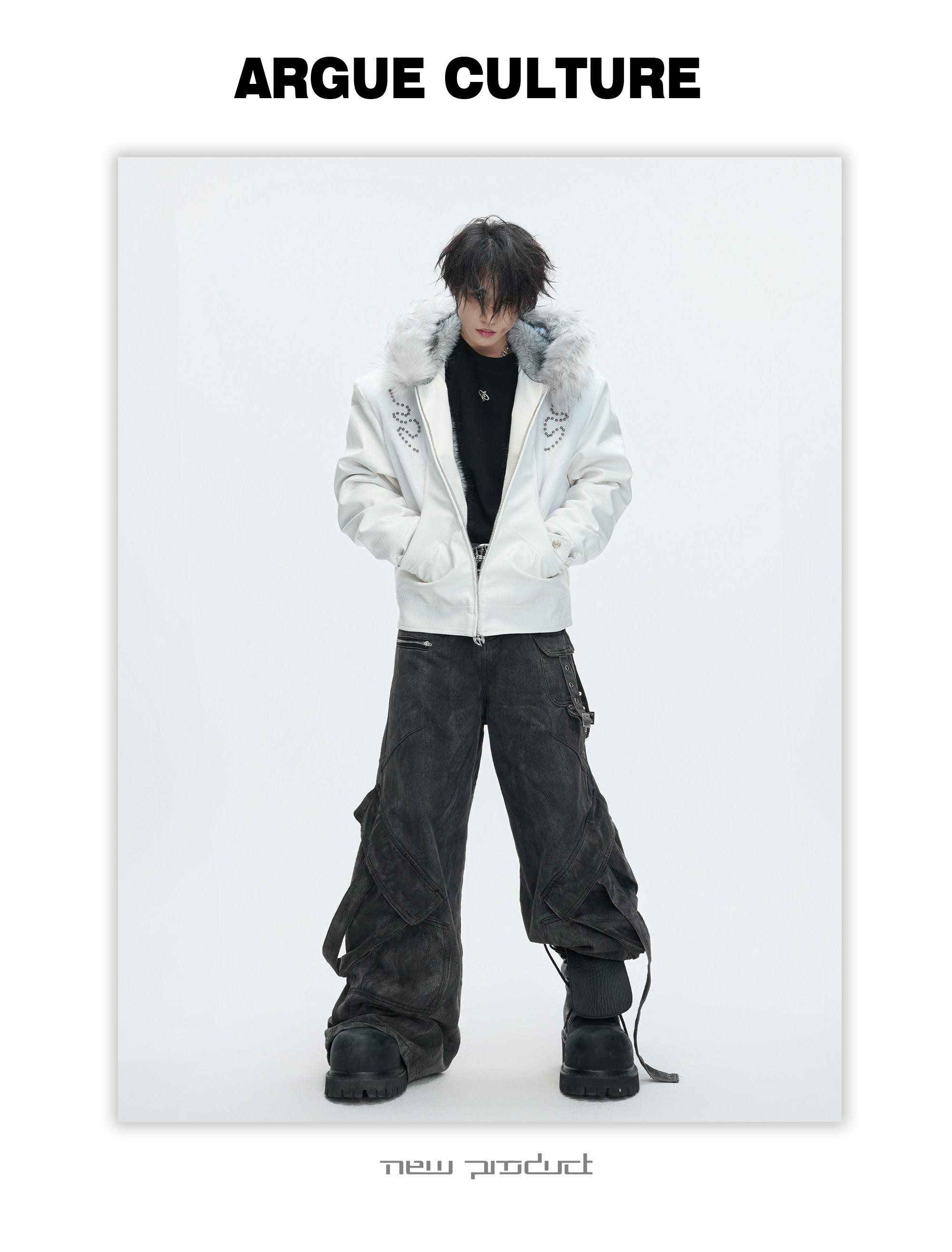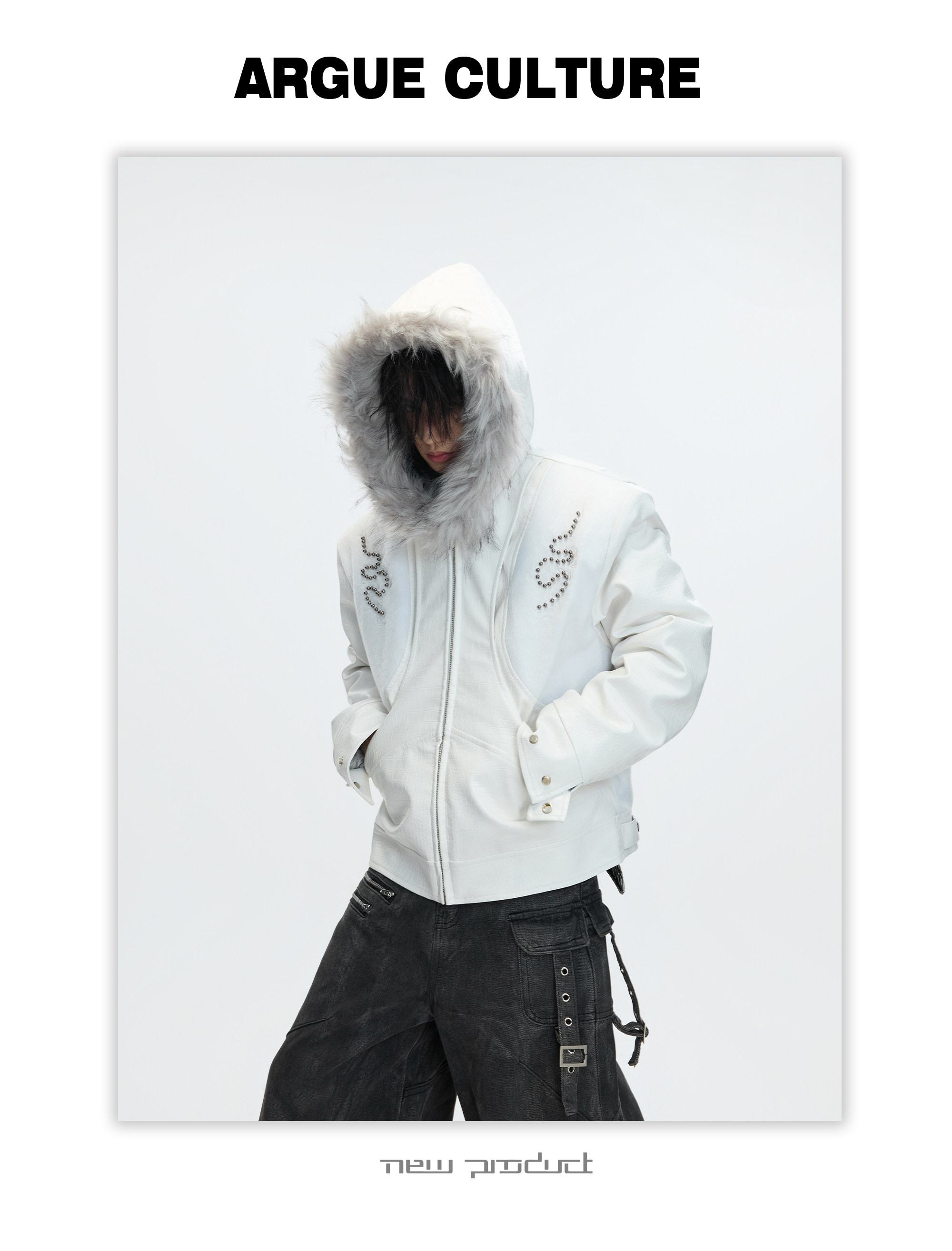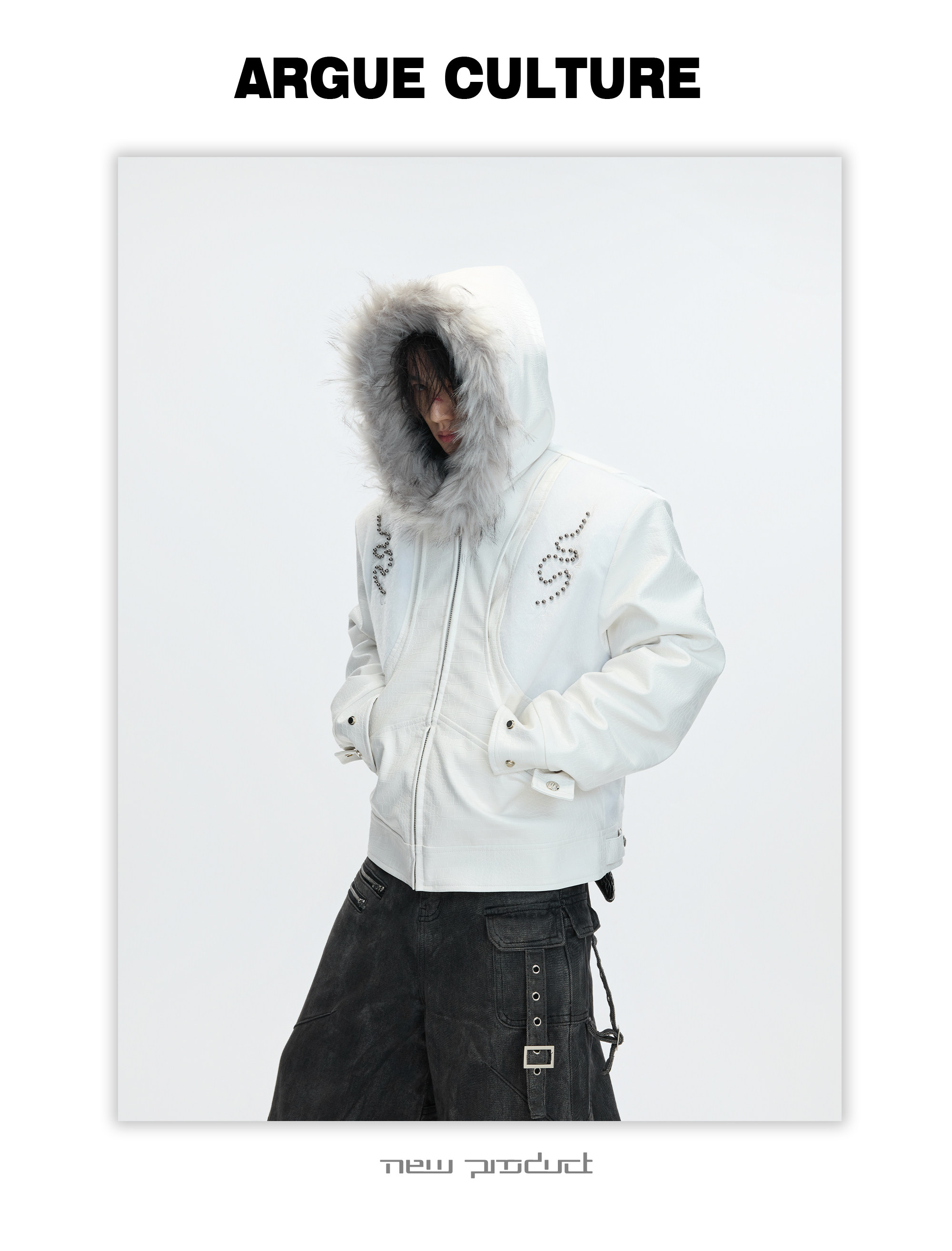 Argueculture Shadow* Horsehair Crocodile Pattern Hooded Mountain Carving Fleece-Lined Thickened Cotton Jacket Coat