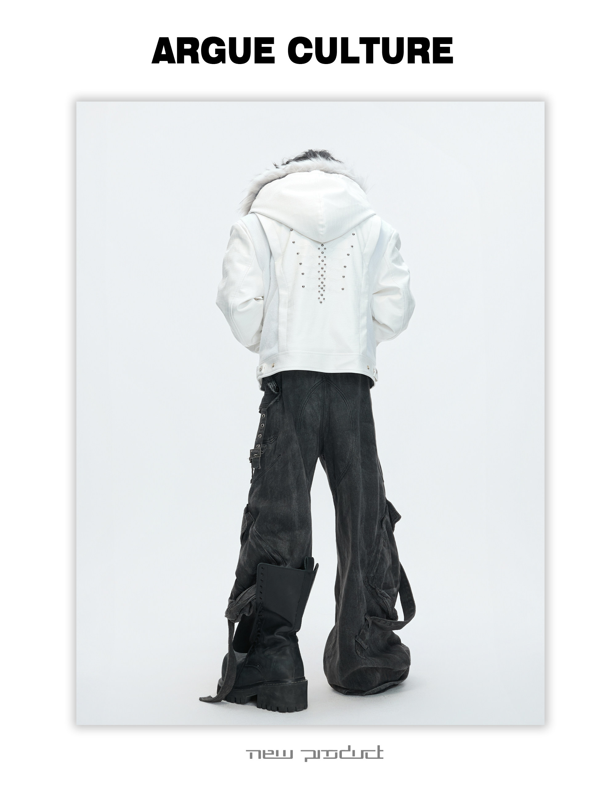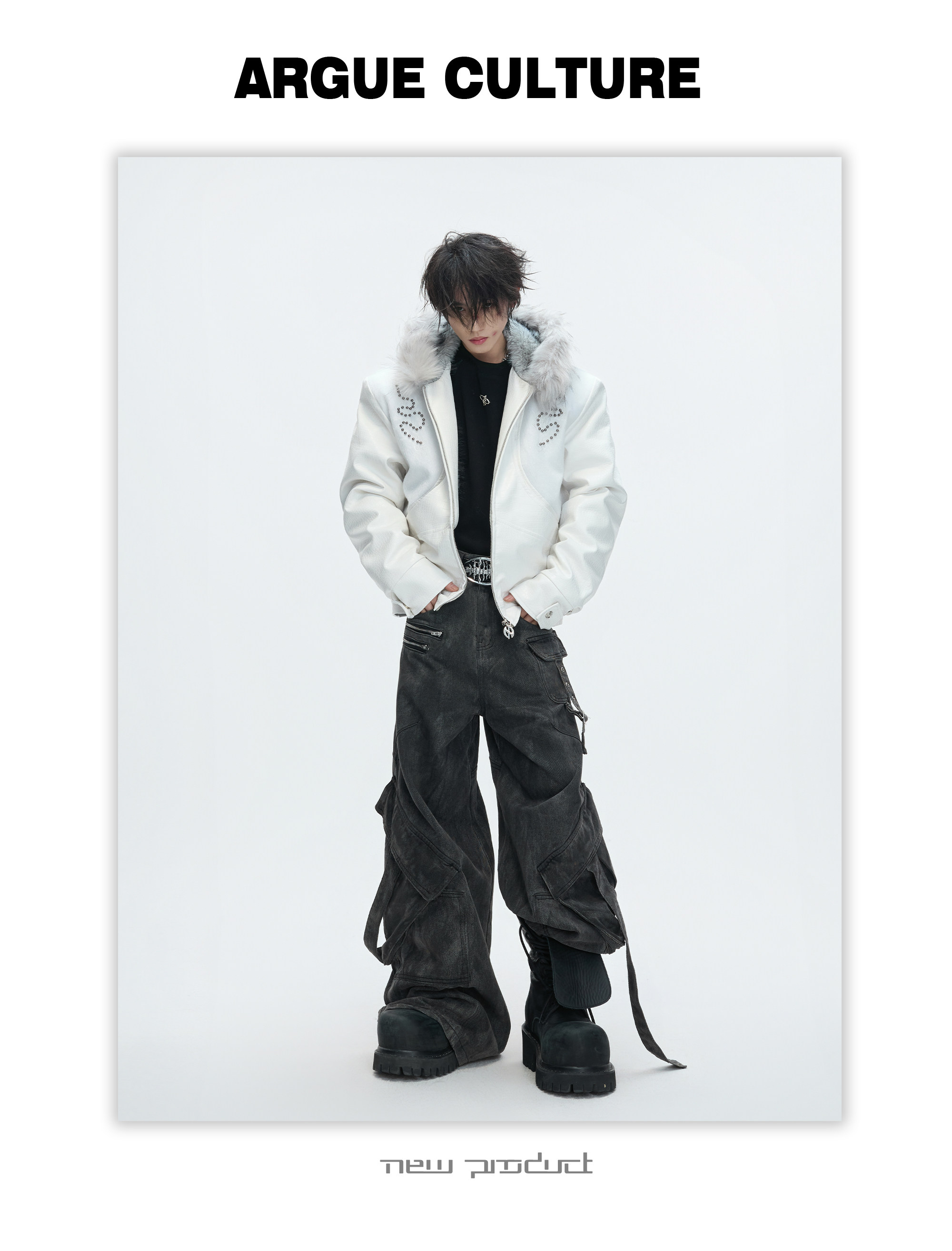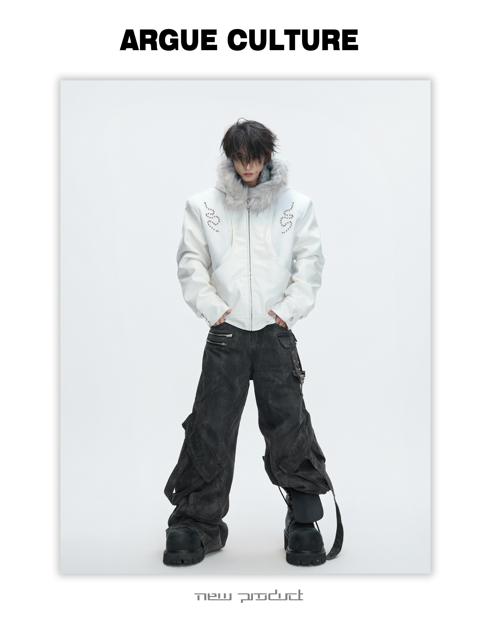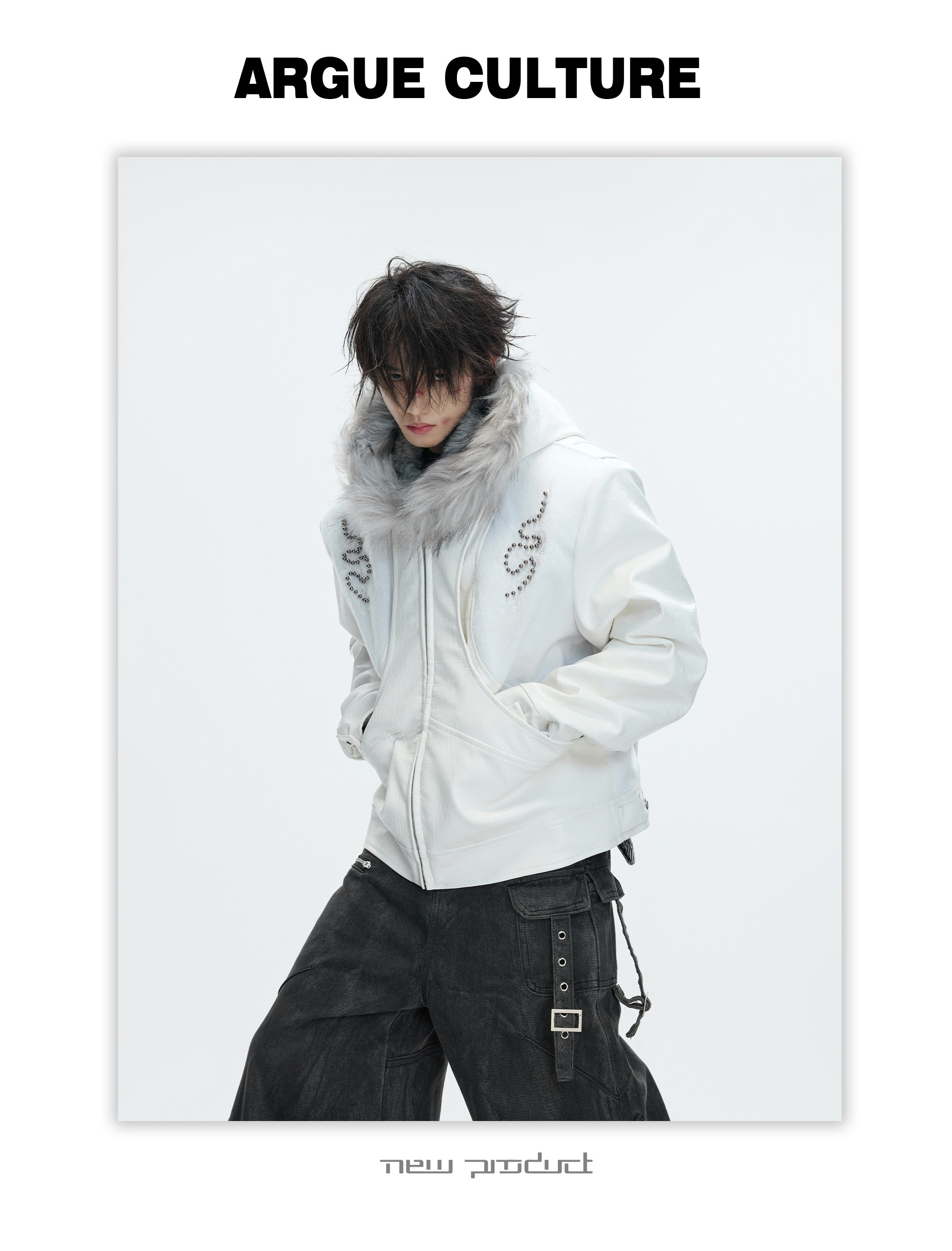 Argueculture Shadow* Horsehair Crocodile Pattern Hooded Mountain Carving Fleece-Lined Thickened Cotton Jacket Coat