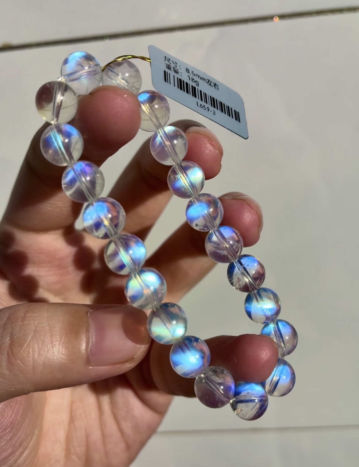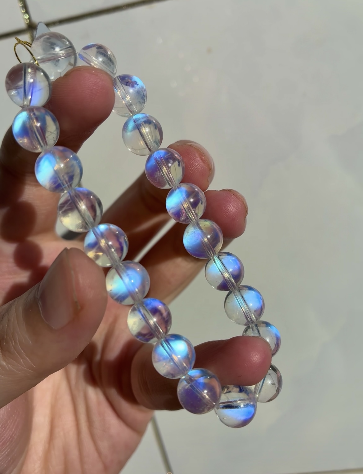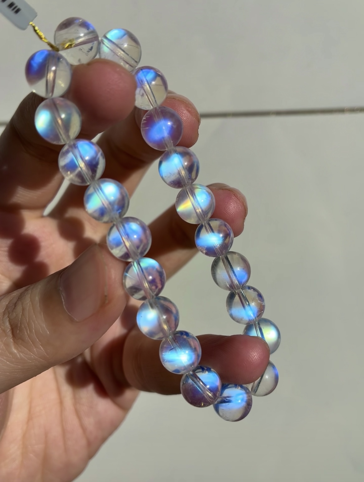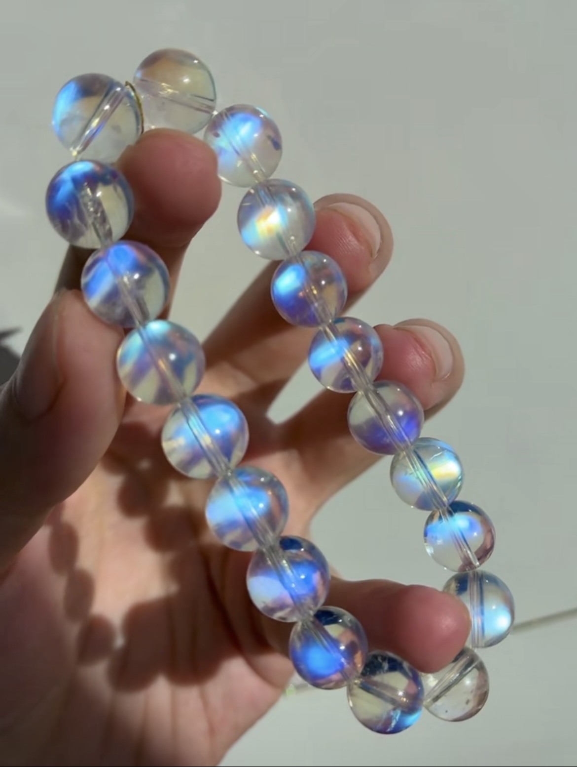 Collectible Natural Indian Blue Moonstone Bracelet, High Ice Glass Body, Strong Blue Light, Large Polished Surface