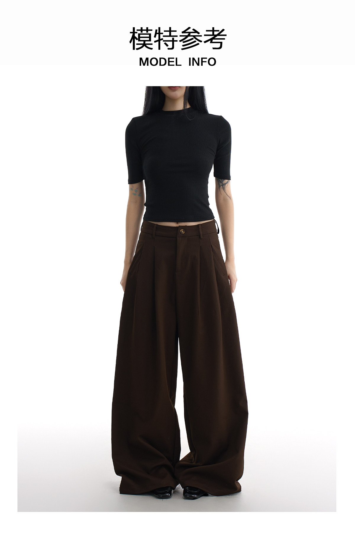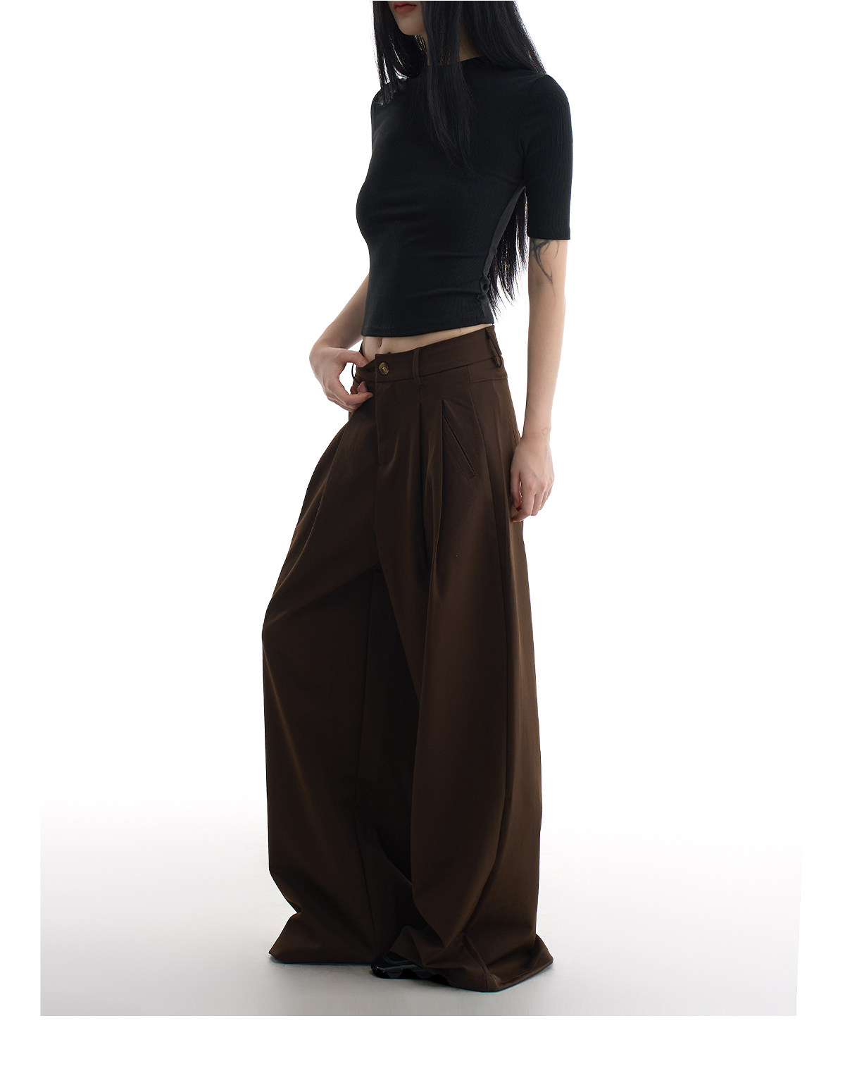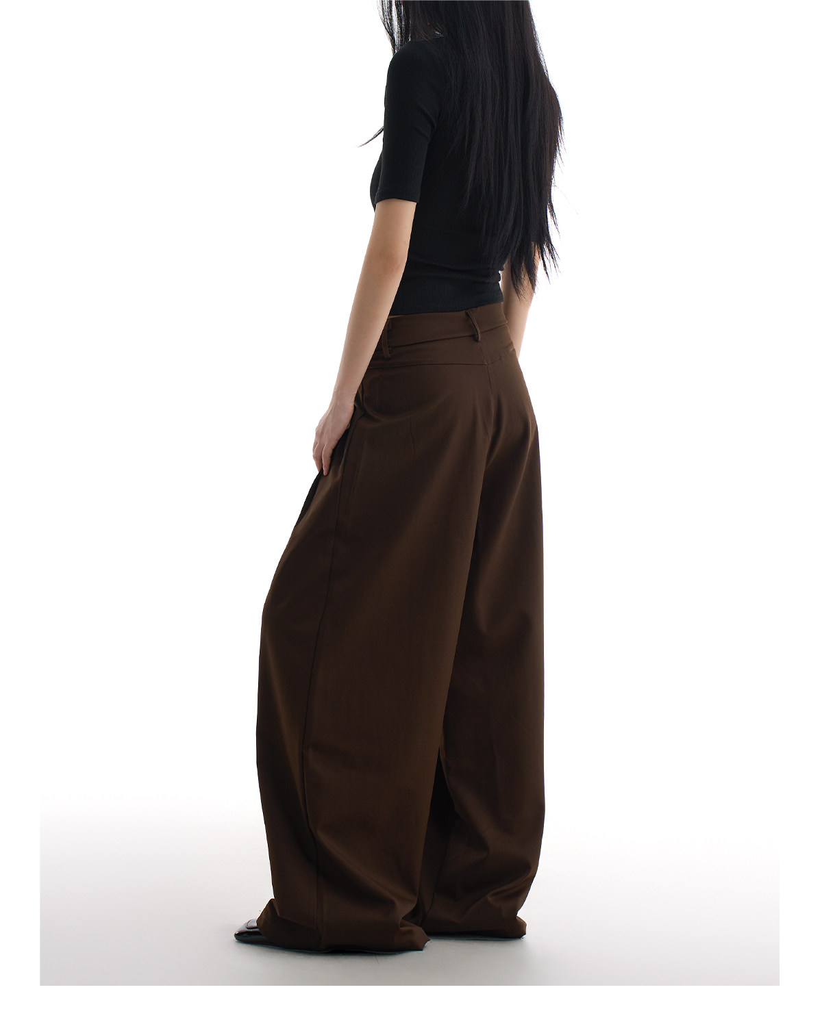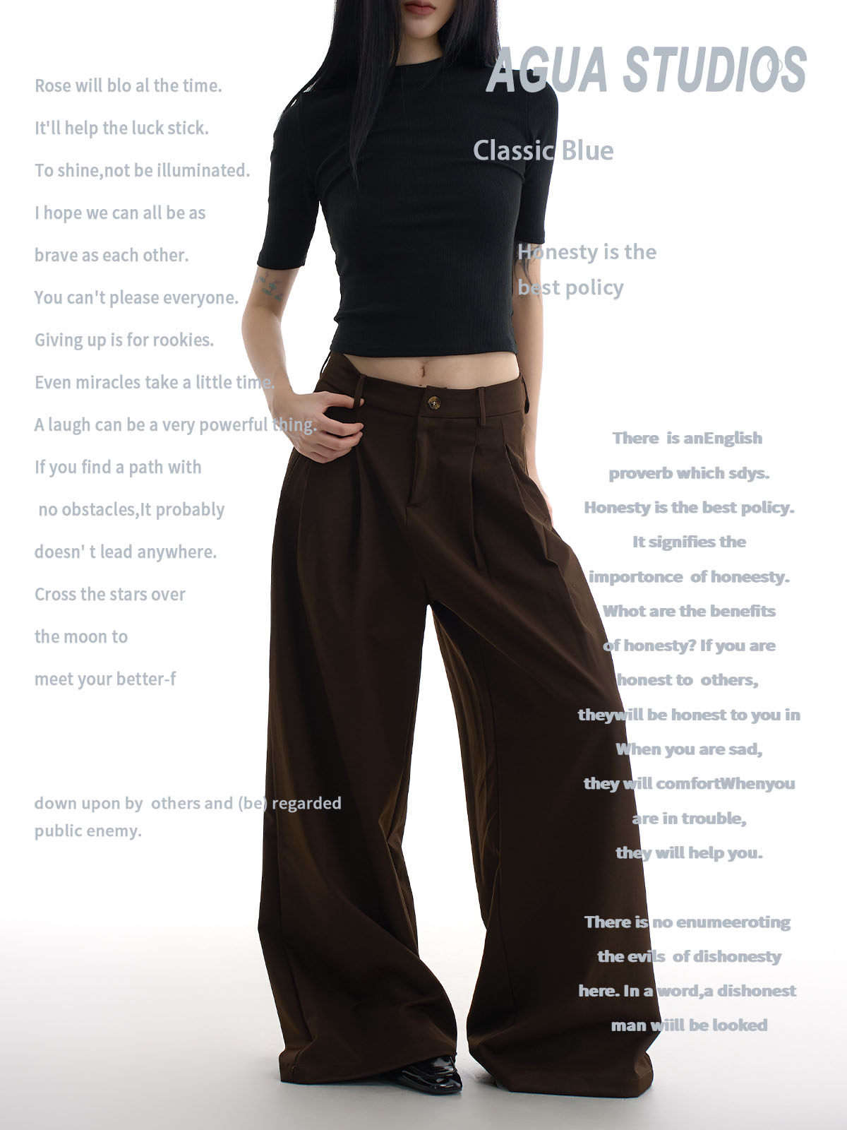 Agua Maillard Brown Wide-Leg Suit Pants for Women, New Spring Design, High-Waisted, Loose, Drapey Straight-Leg Trousers