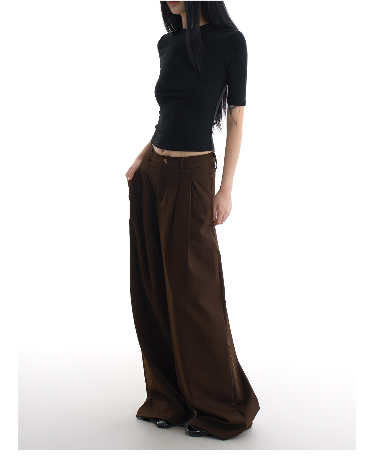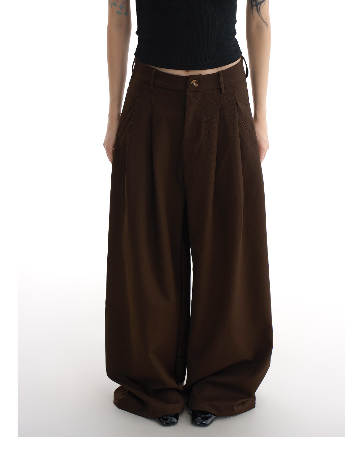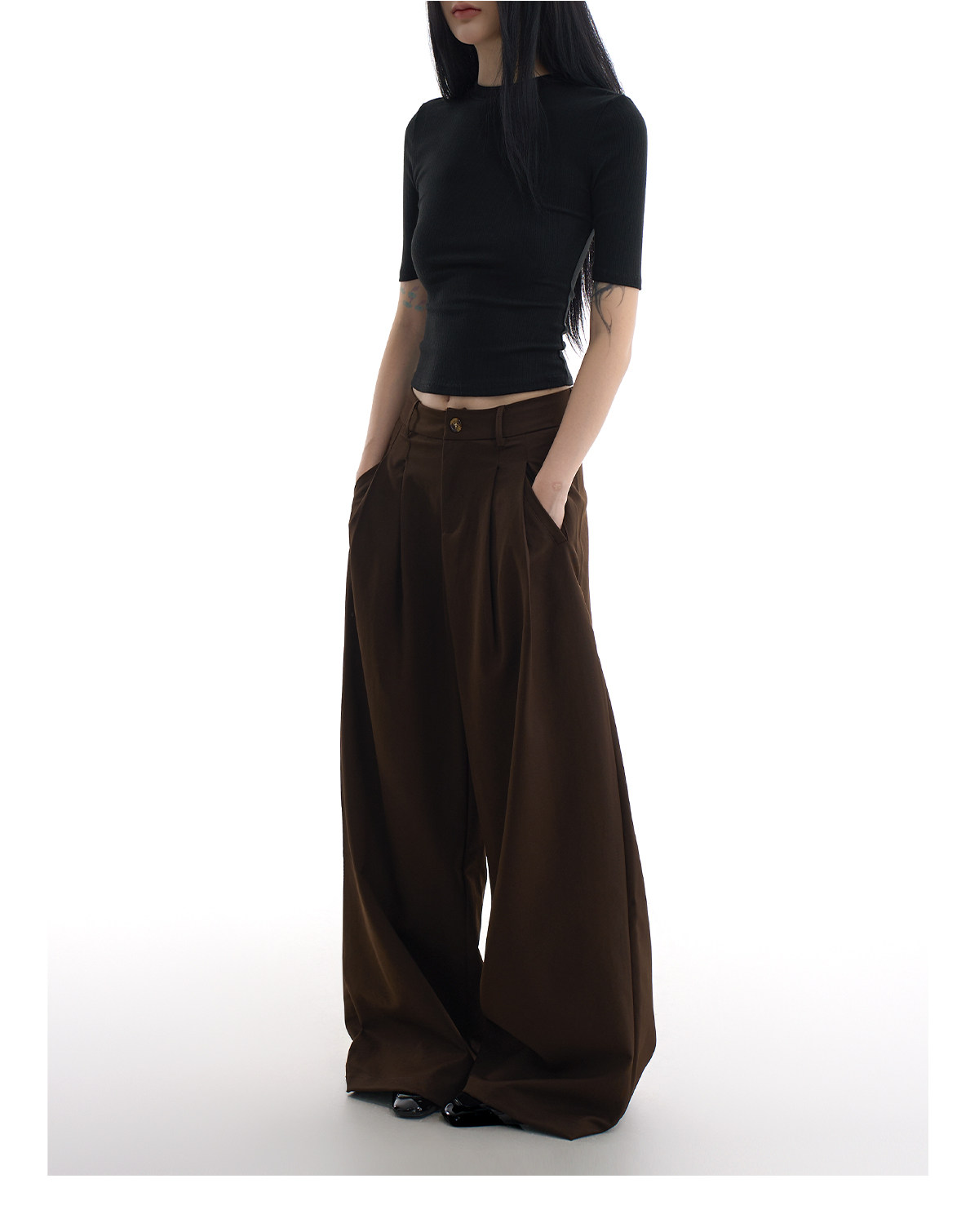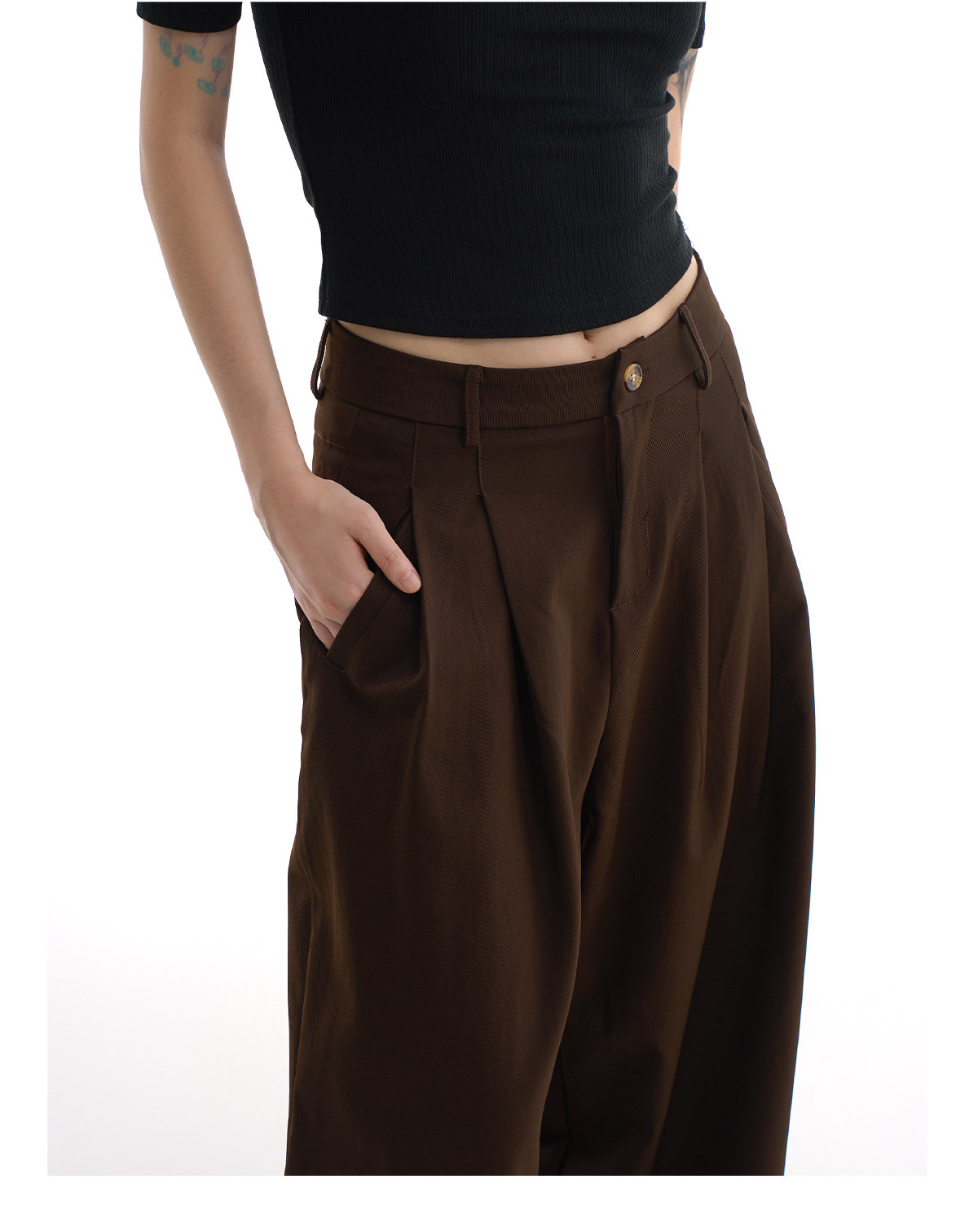Agua Maillard Brown Wide-Leg Suit Pants for Women, New Spring Design, High-Waisted, Loose, Drapey Straight-Leg Trousers