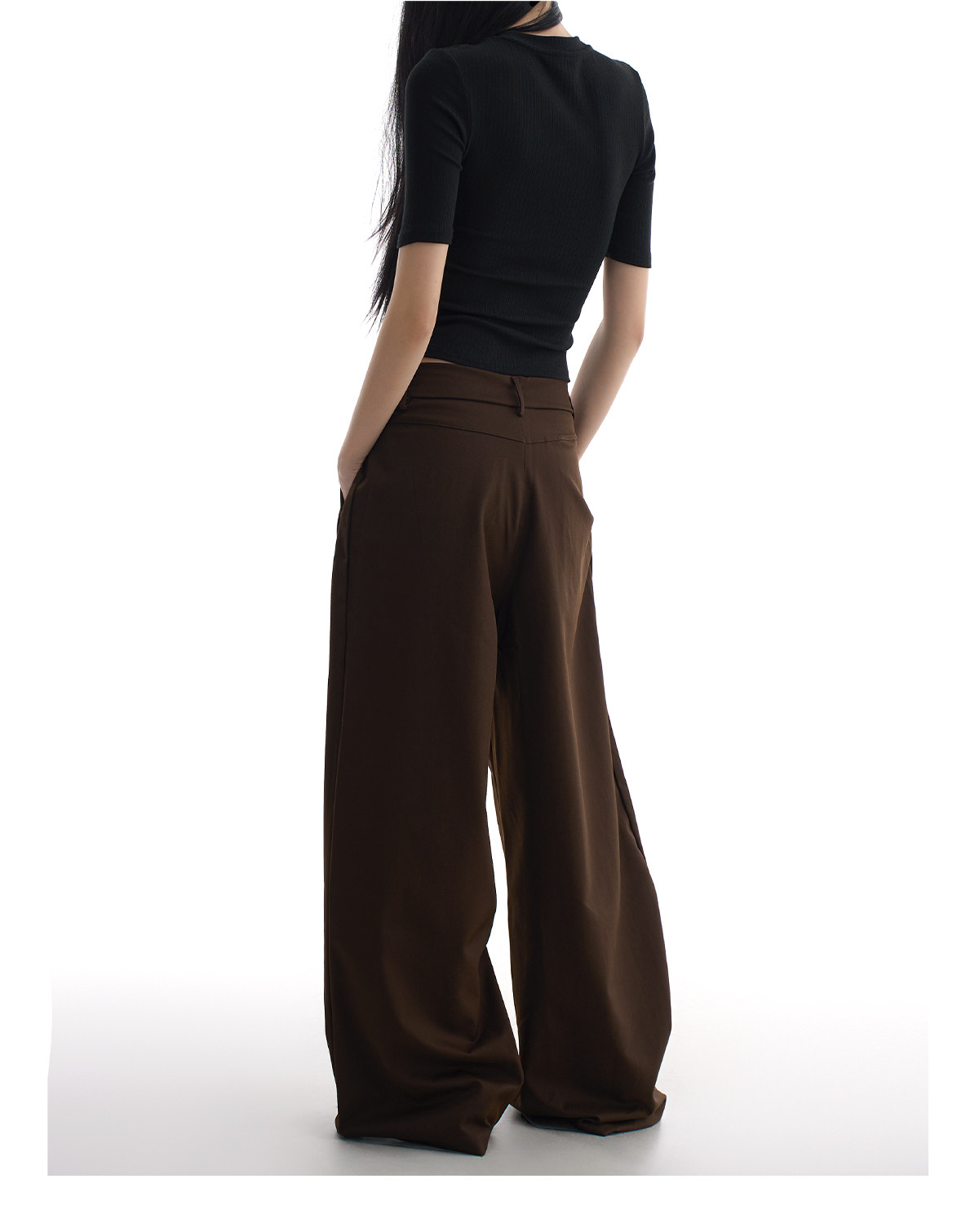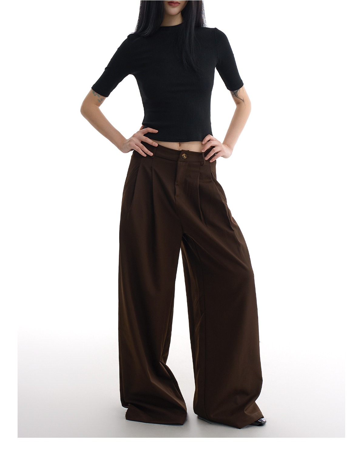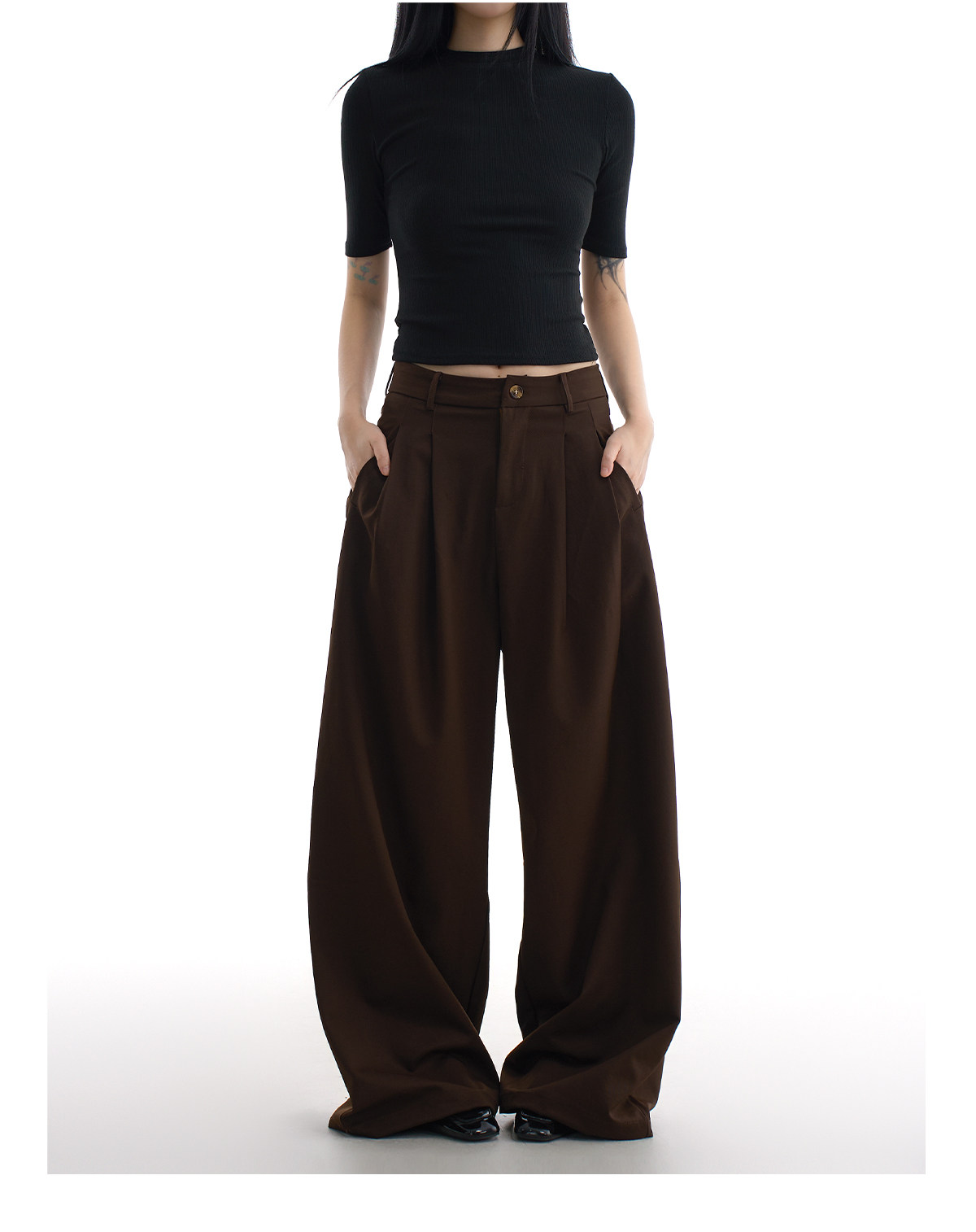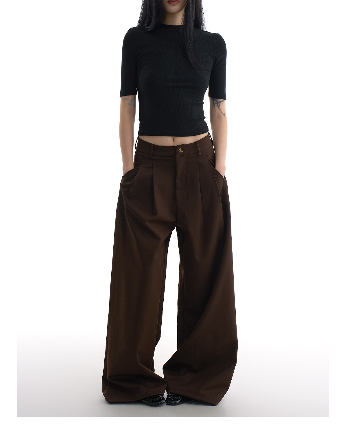 Agua Maillard Brown Wide-Leg Suit Pants for Women, New Spring Design, High-Waisted, Loose, Drapey Straight-Leg Trousers