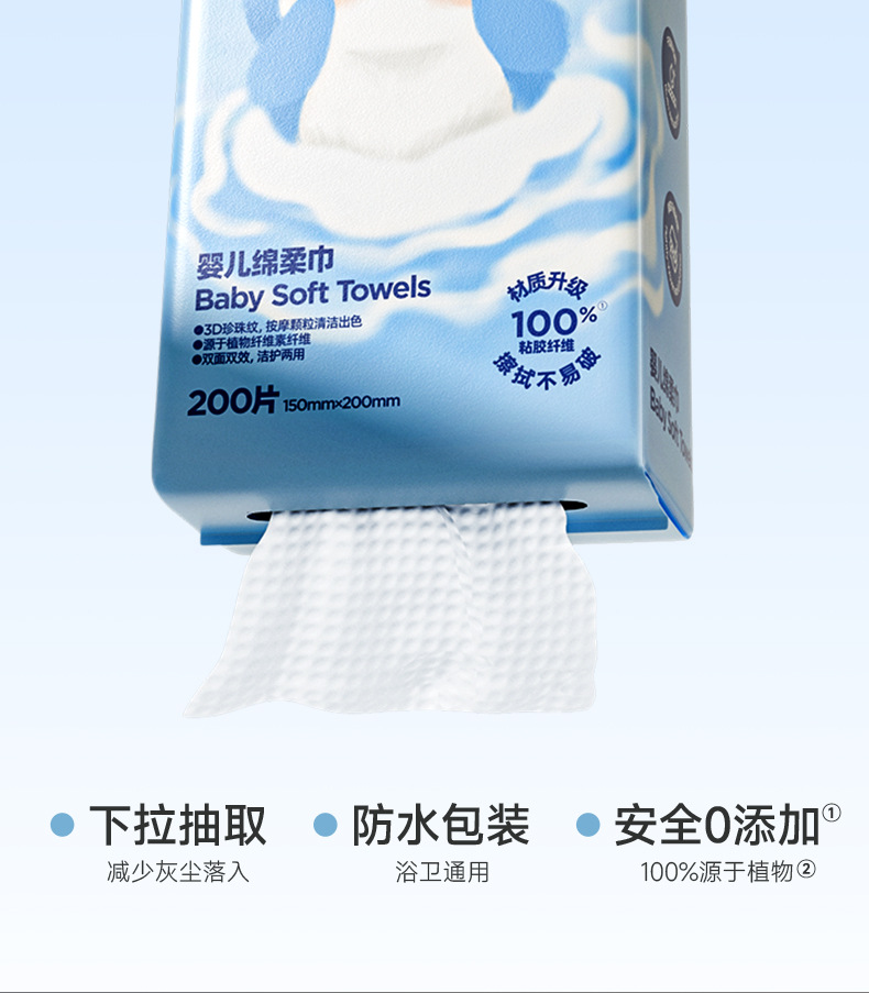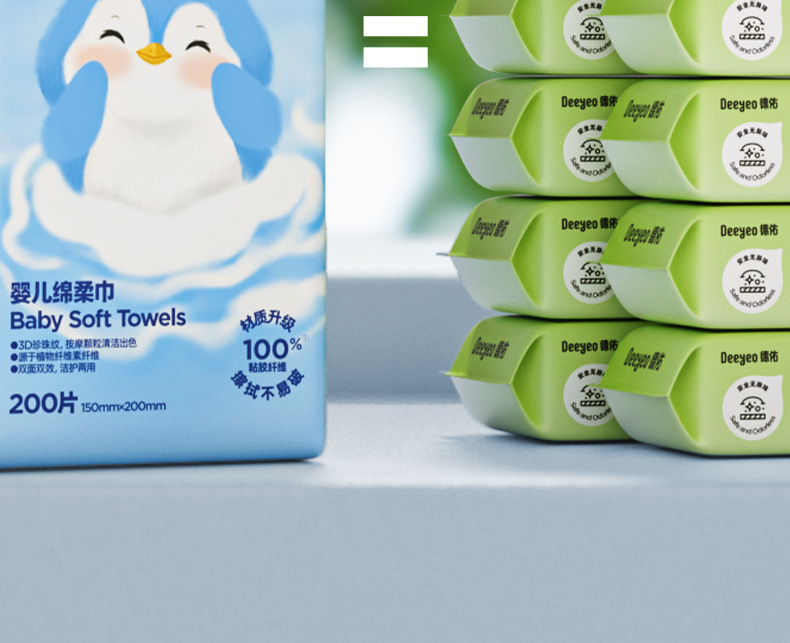 Deyou Baby Soft Towels Disposable Face Washing Towels Wall-Mounted Face Wipes Hanging Cleansing Towels 200 Pieces