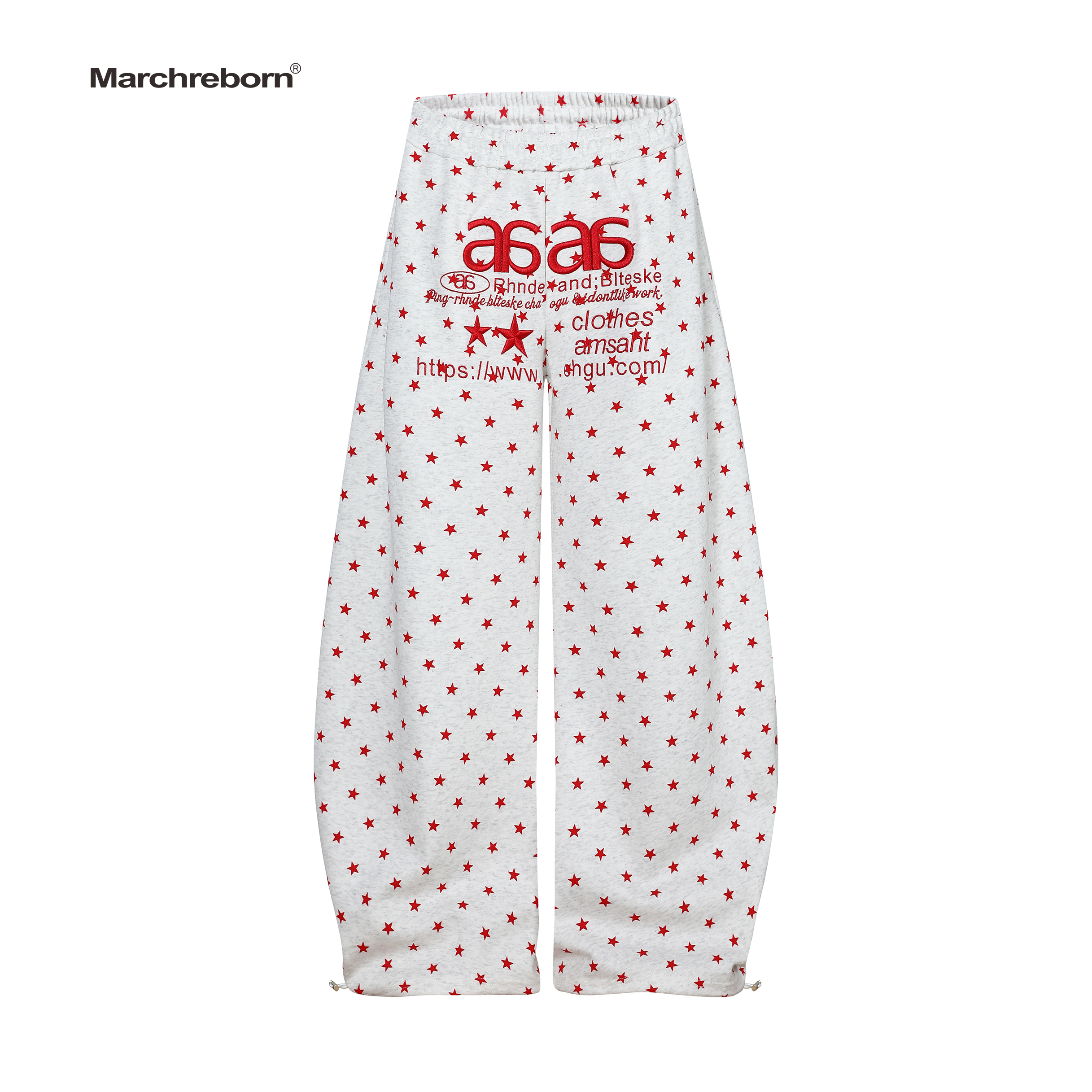 March American-Style Polka Dot Star Embroidered Letter Loose Wide-Leg Women's Hip-Hop Casual Pants Versatile Fleece-Lined Sweatpants