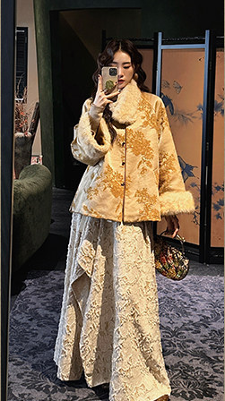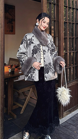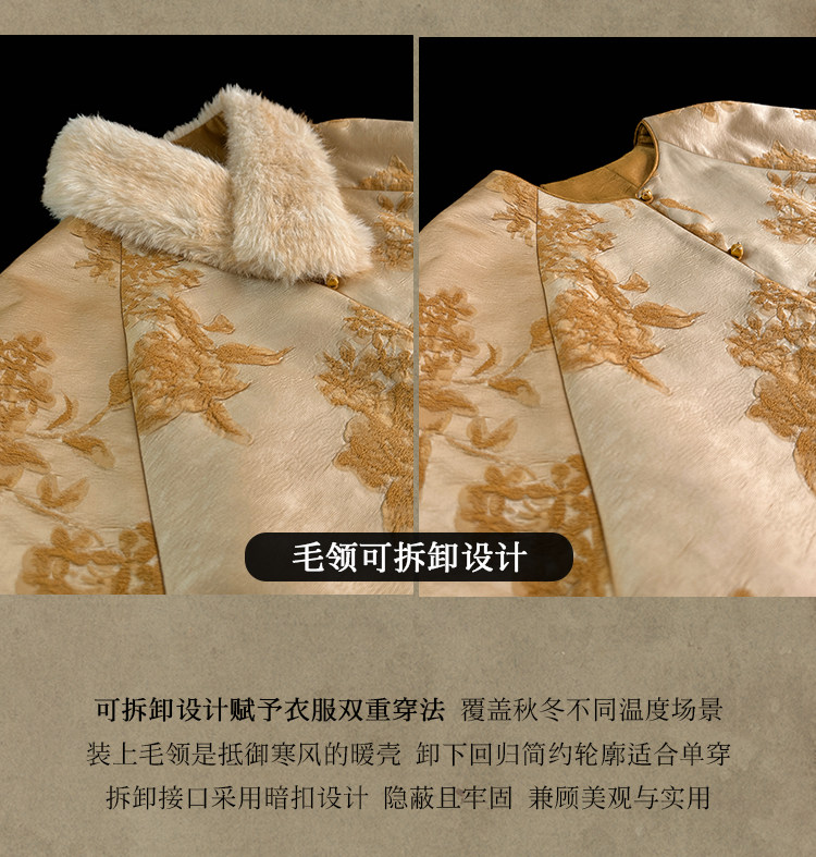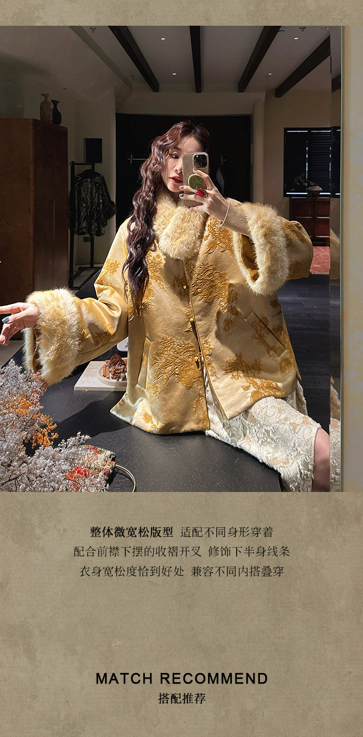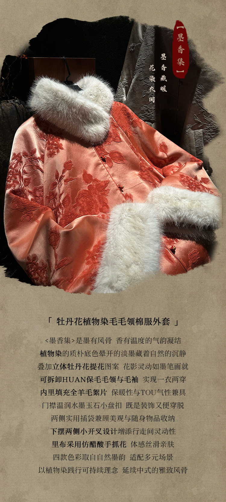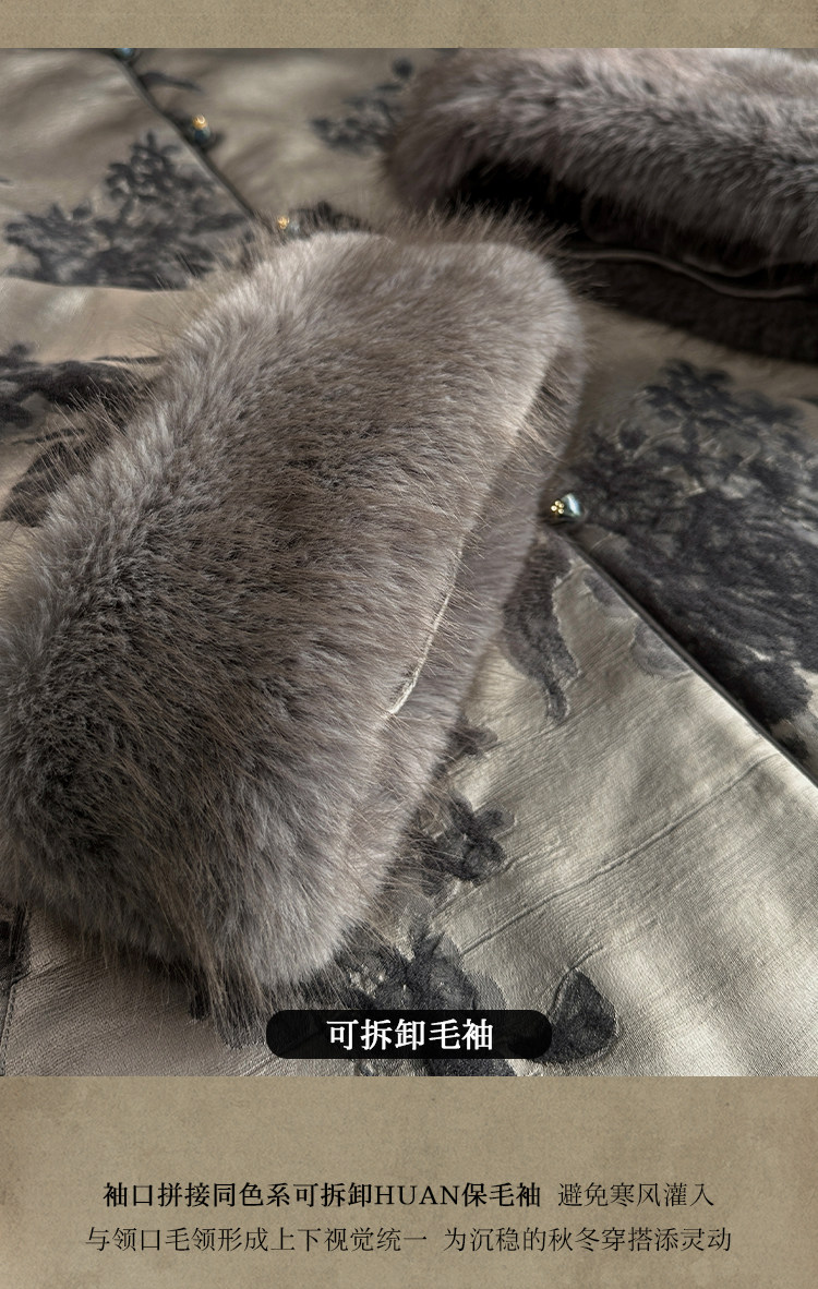 Sanji Heihua [Ink Fragrance Collection] New Chinese Style Fur Collar Cotton Thick Coat Winter Wear 2025 New Trendy Top Jacket