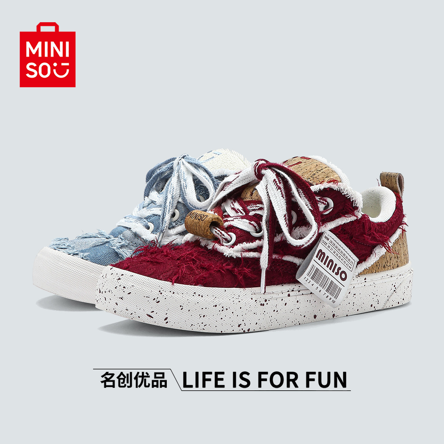 MINISO Men's Red and Blue Mandarin Duck Tassel Loafers Campus Style Couple's Sports Skateboard Shoes