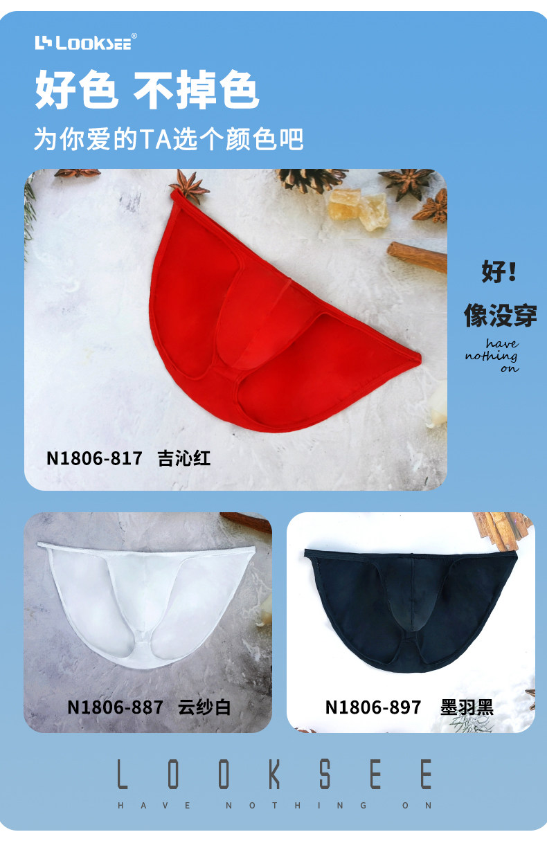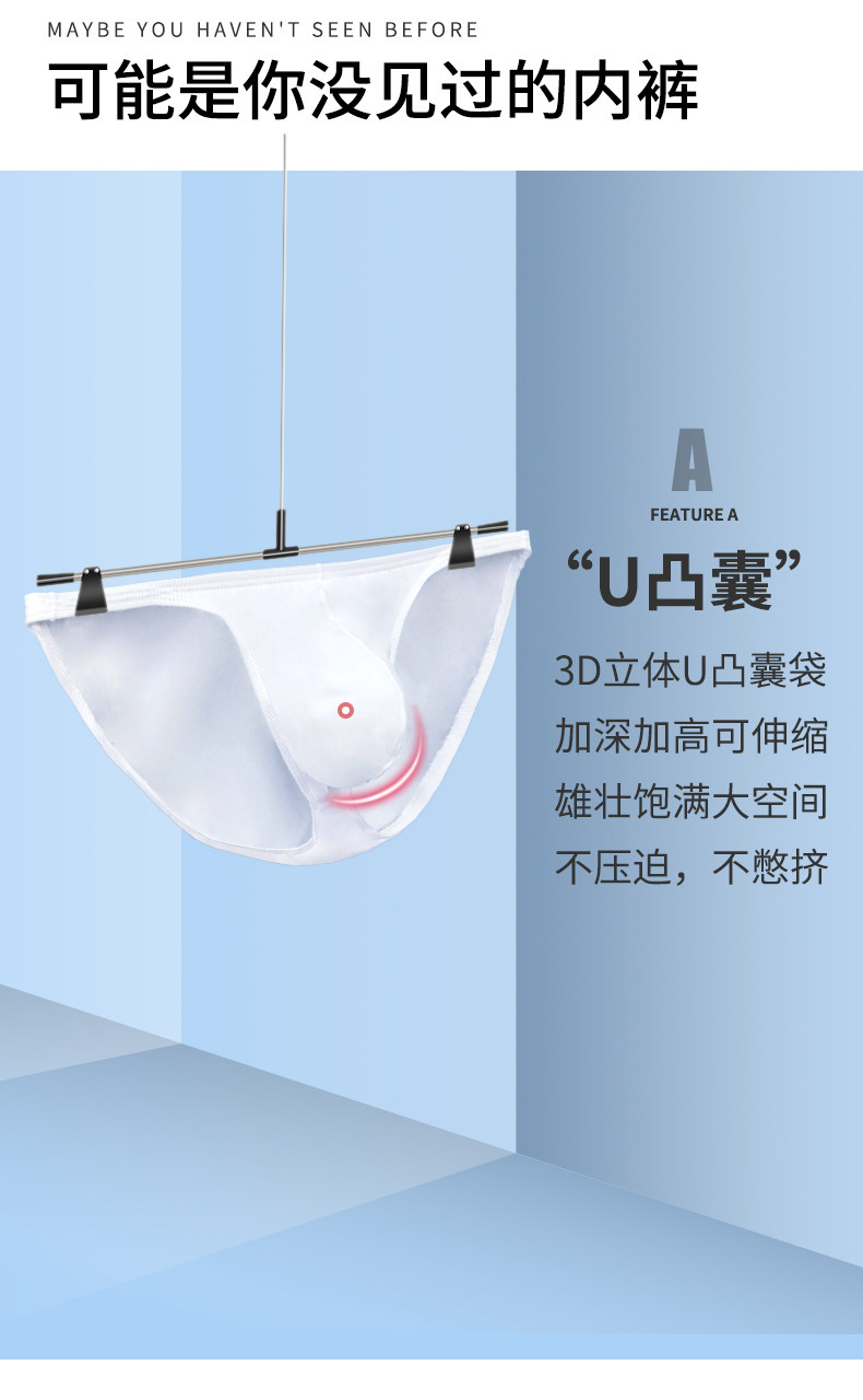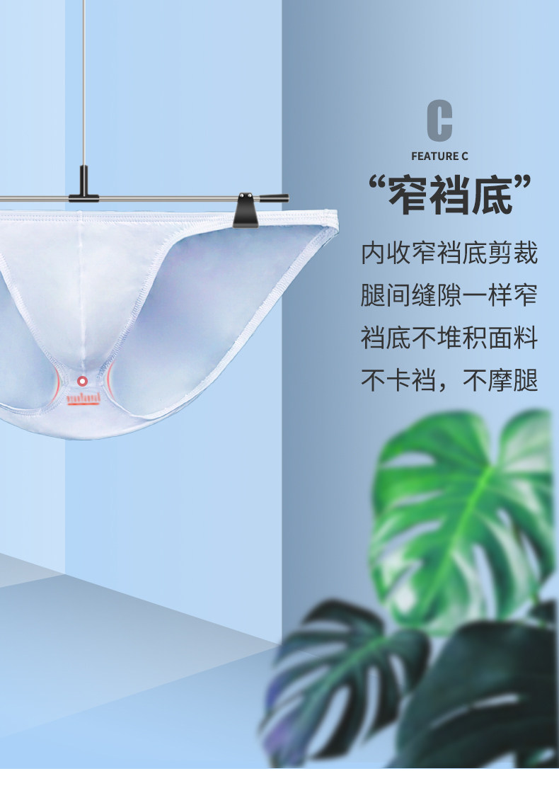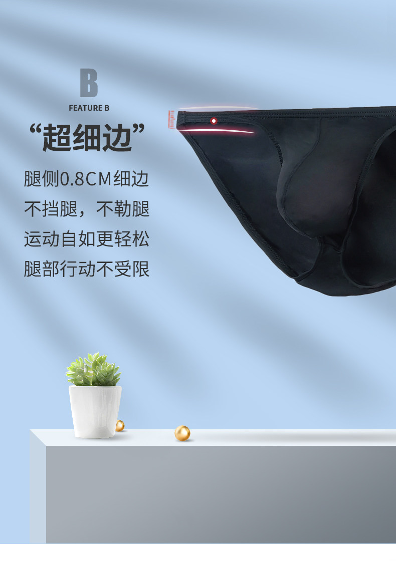 Side-High-Cut Ultra-Thin Ice Silk Low-Rise Thin-Edged Briefs Men's Sports Underwear U-Convex Large Pouch Stylish and Sexy