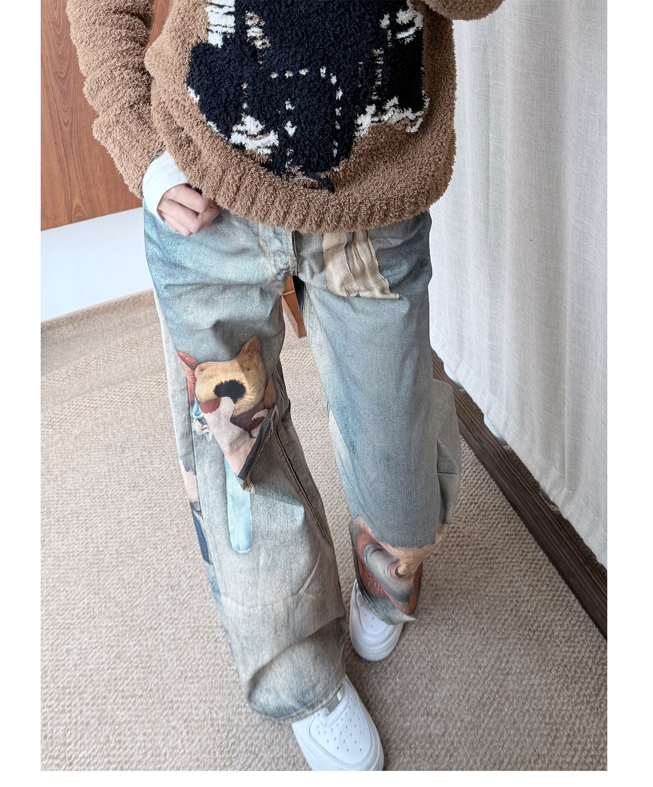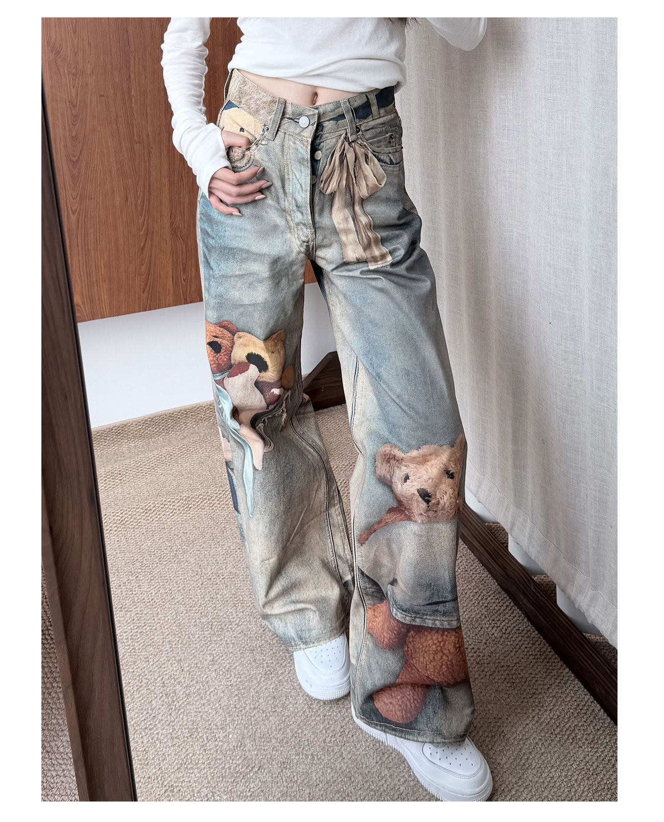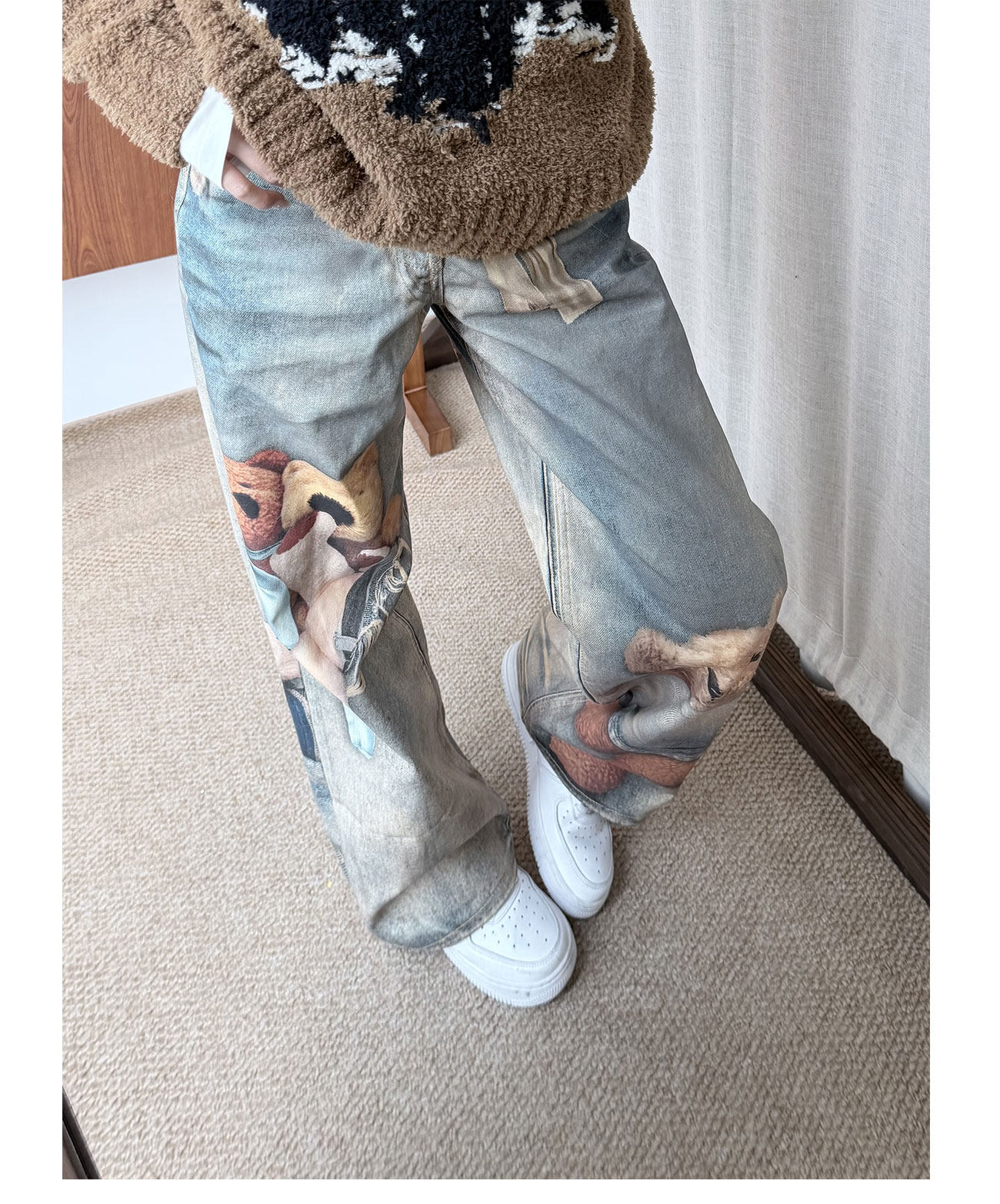 继蕾丝珍珠印花牛仔裤之后 又一个“王炸”来了 就是这条绸缎小熊玩偶印花牛仔裤 用的还是原产国面料 裤型依然是最经典的1981直筒 其实早在 11 月初 第一次刷到这个条裤子的时候 心里就很确定 这条裤子一定会火 所以当时PD团队没有任何犹豫 直接定项开发 现在看确实是对的 最近也有很多演员、爱豆、时尚博主 都已经上身这条小熊裤了