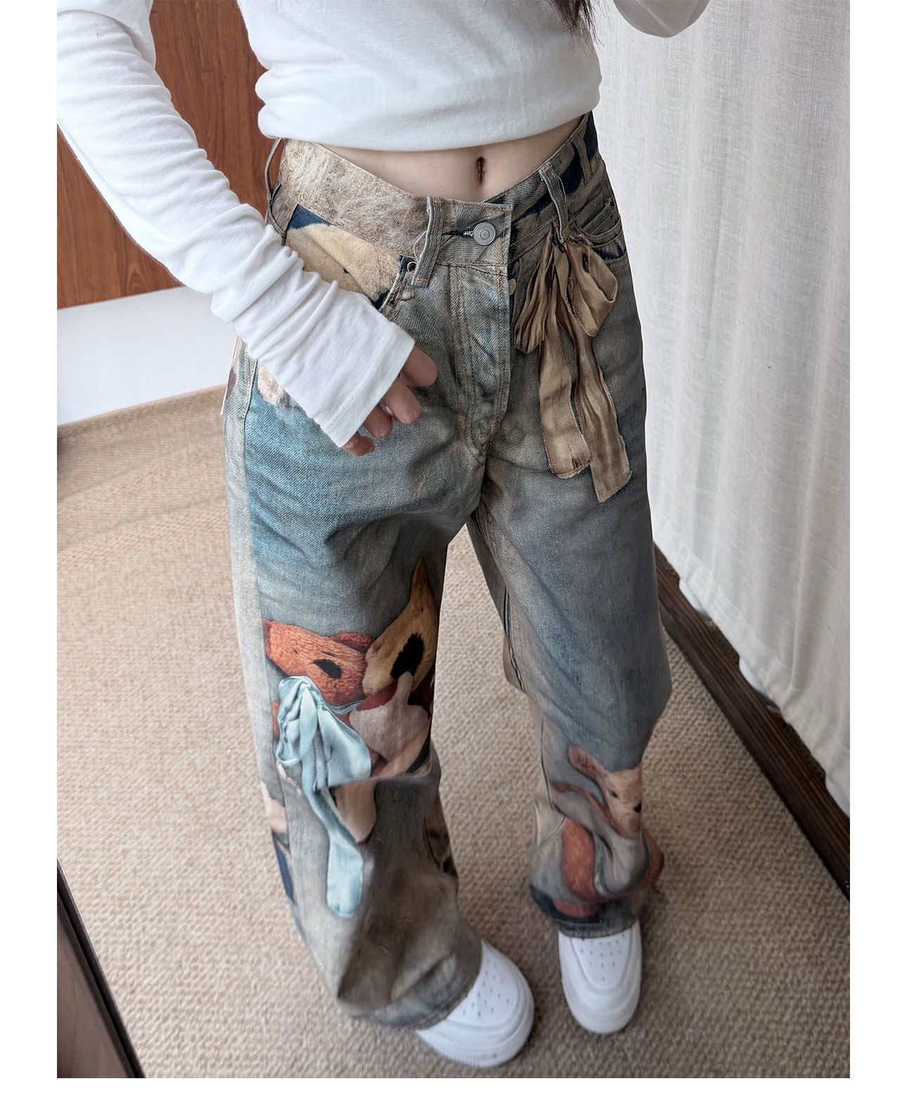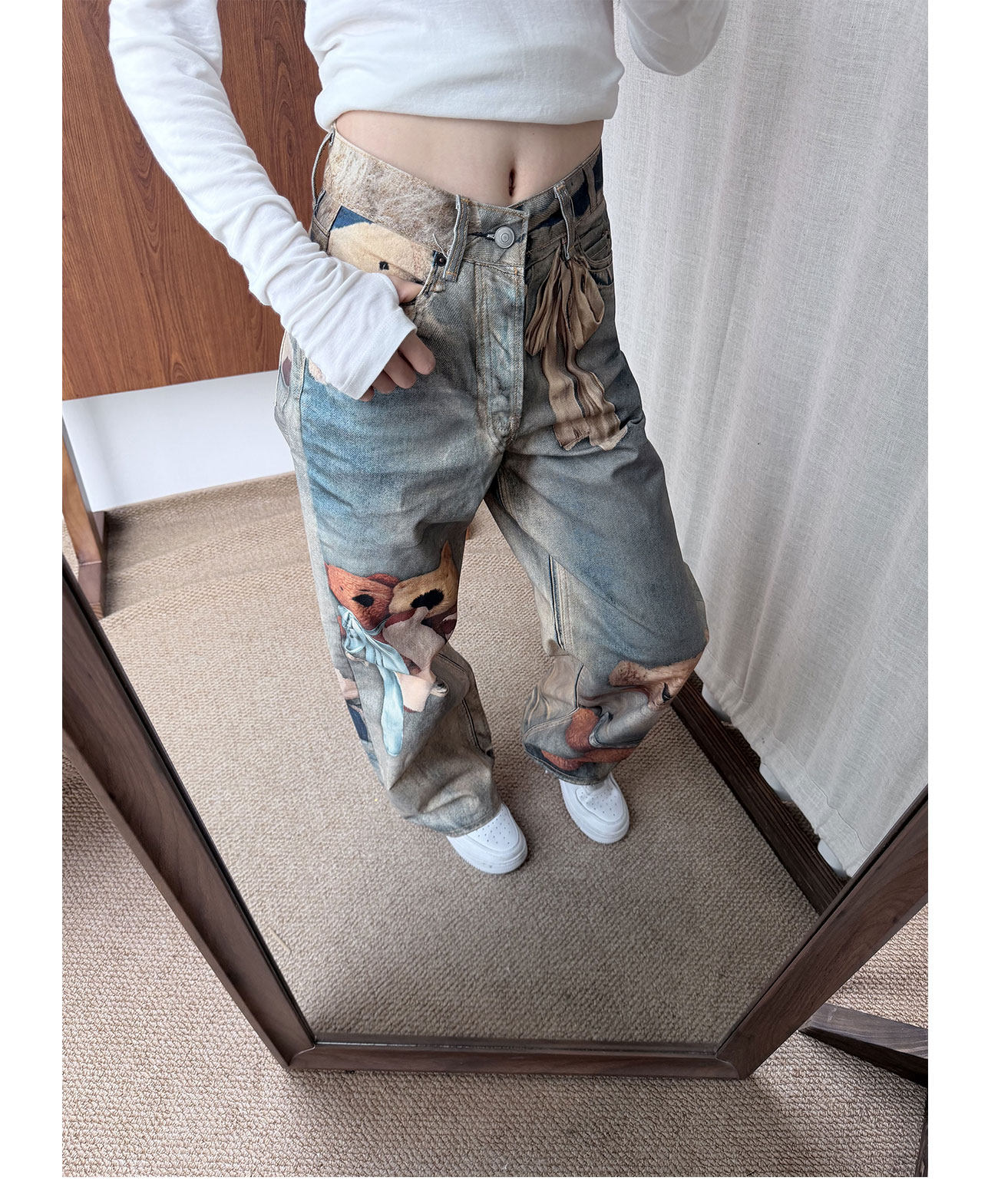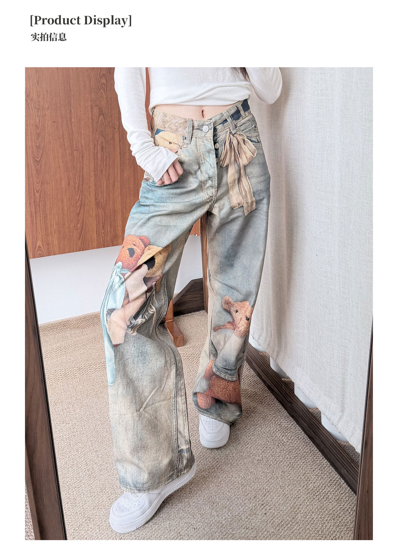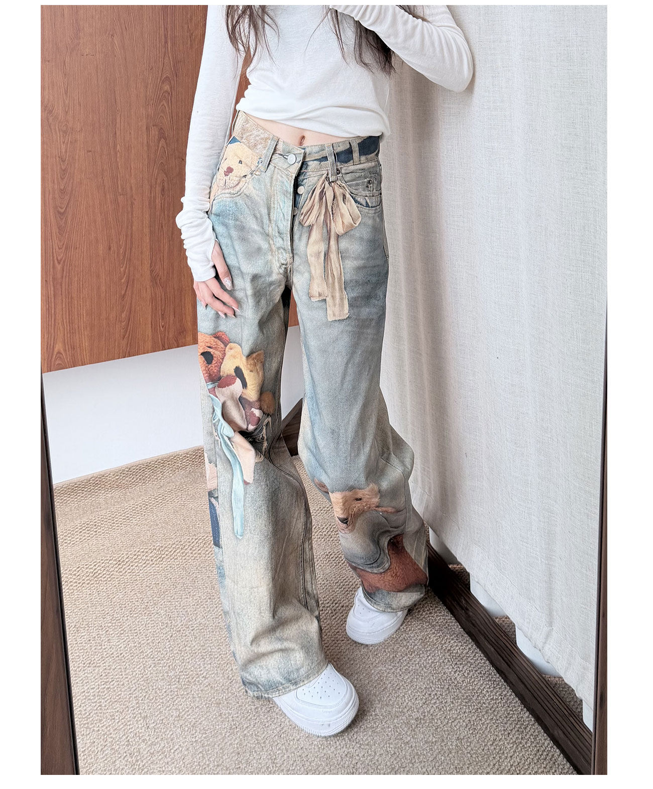 继蕾丝珍珠印花牛仔裤之后 又一个“王炸”来了 就是这条绸缎小熊玩偶印花牛仔裤 用的还是原产国面料 裤型依然是最经典的1981直筒 其实早在 11 月初 第一次刷到这个条裤子的时候 心里就很确定 这条裤子一定会火 所以当时PD团队没有任何犹豫 直接定项开发 现在看确实是对的 最近也有很多演员、爱豆、时尚博主 都已经上身这条小熊裤了
