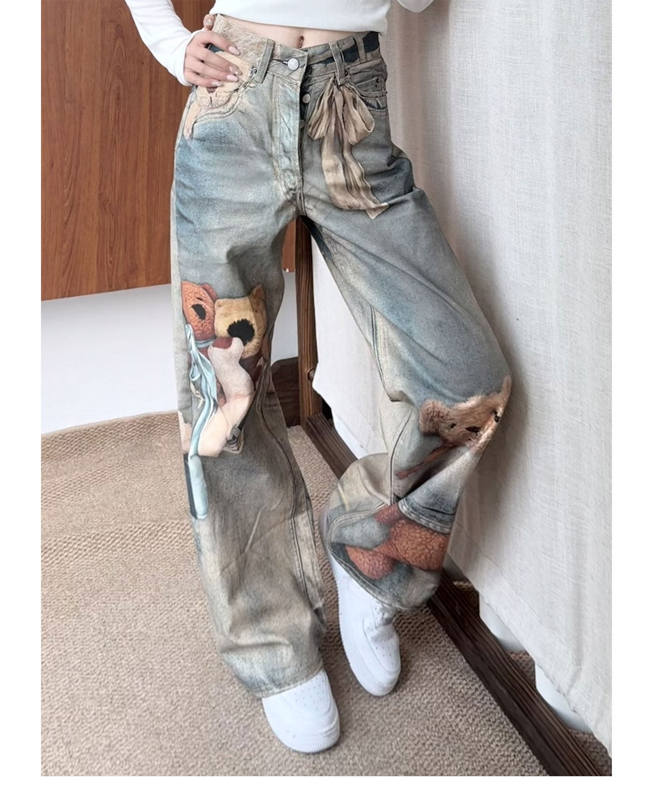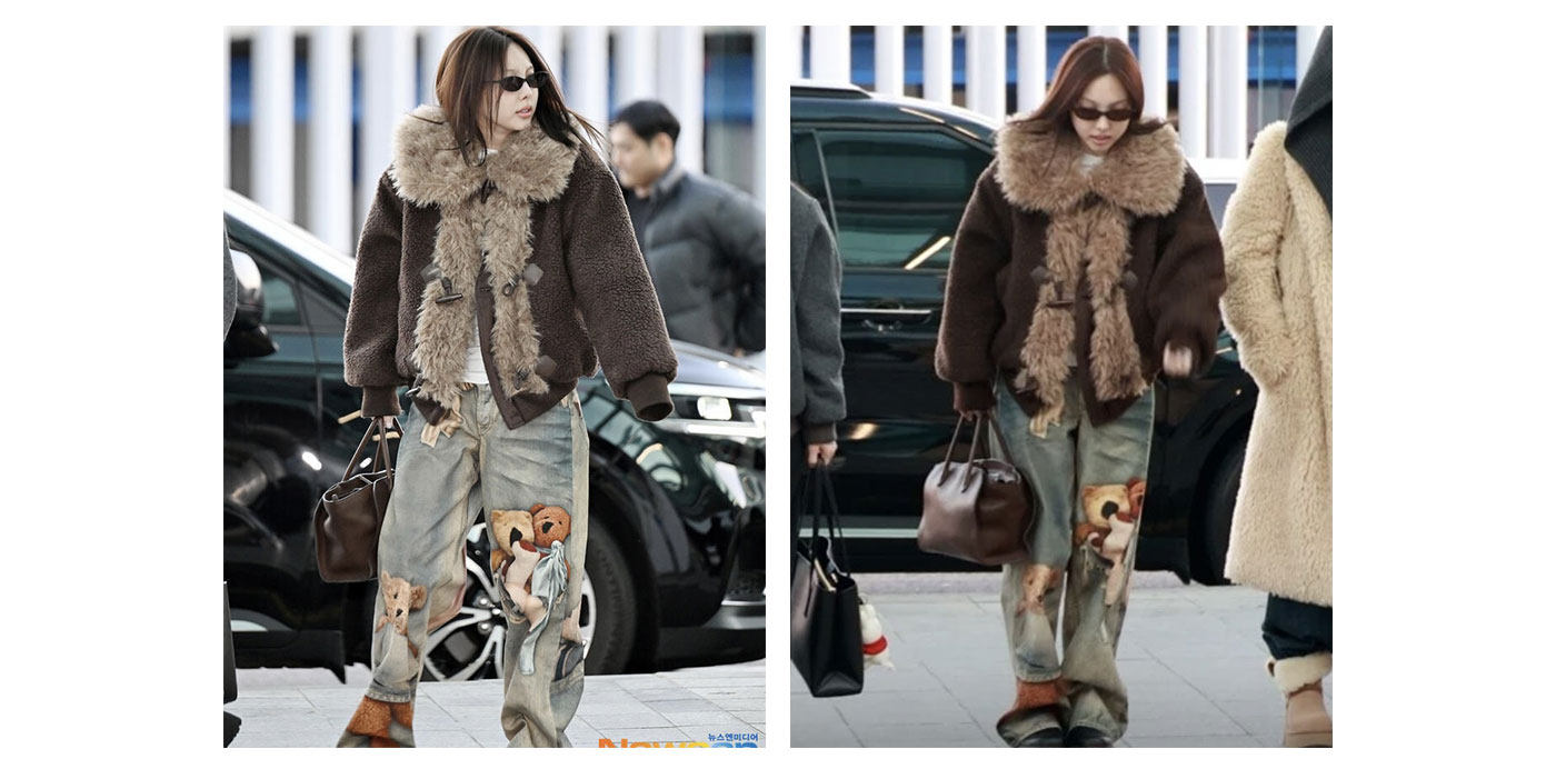 泰国女明星陈奥/陈美铃(Orm)11月路透 同款小熊印花牛仔裤