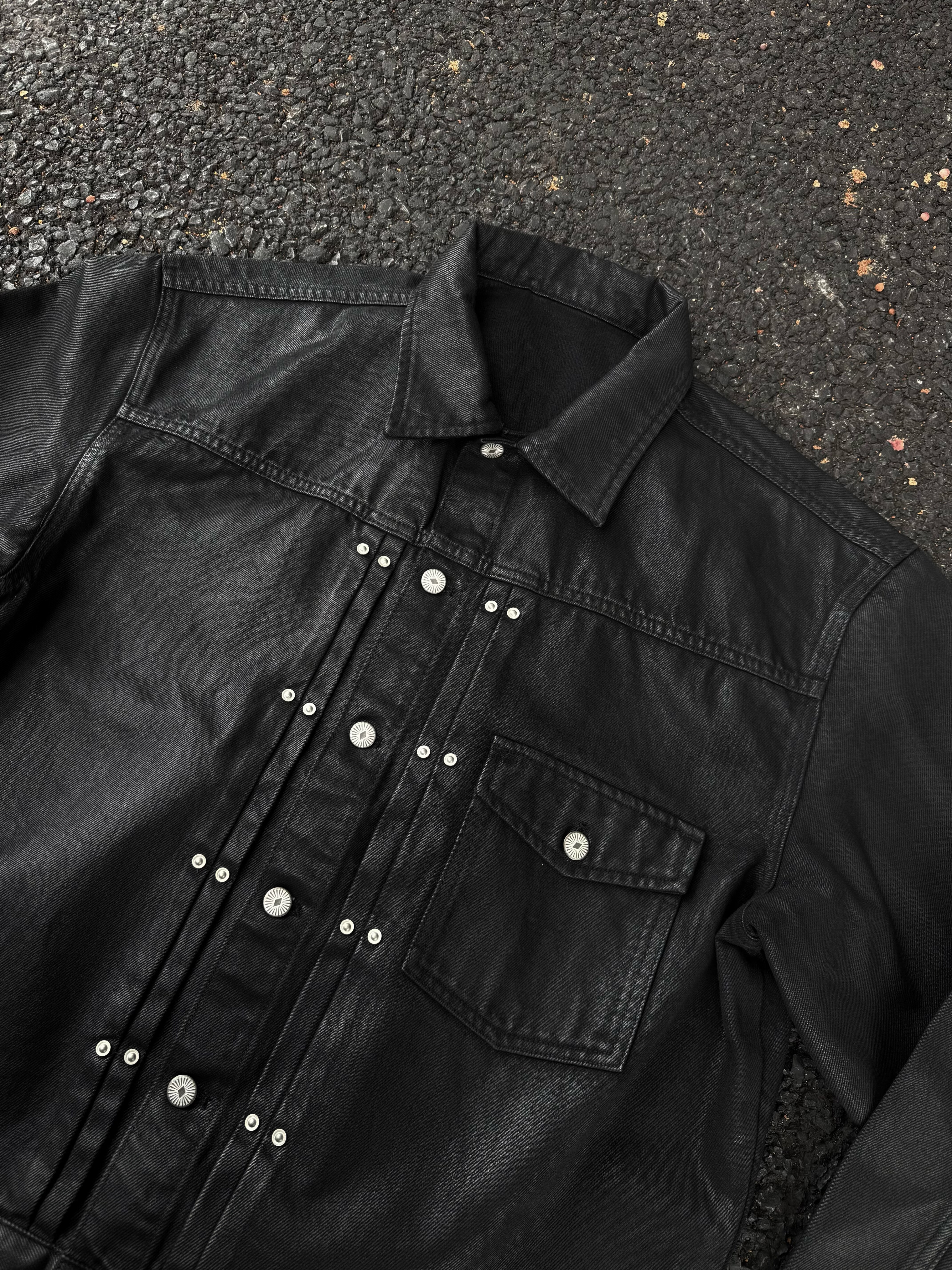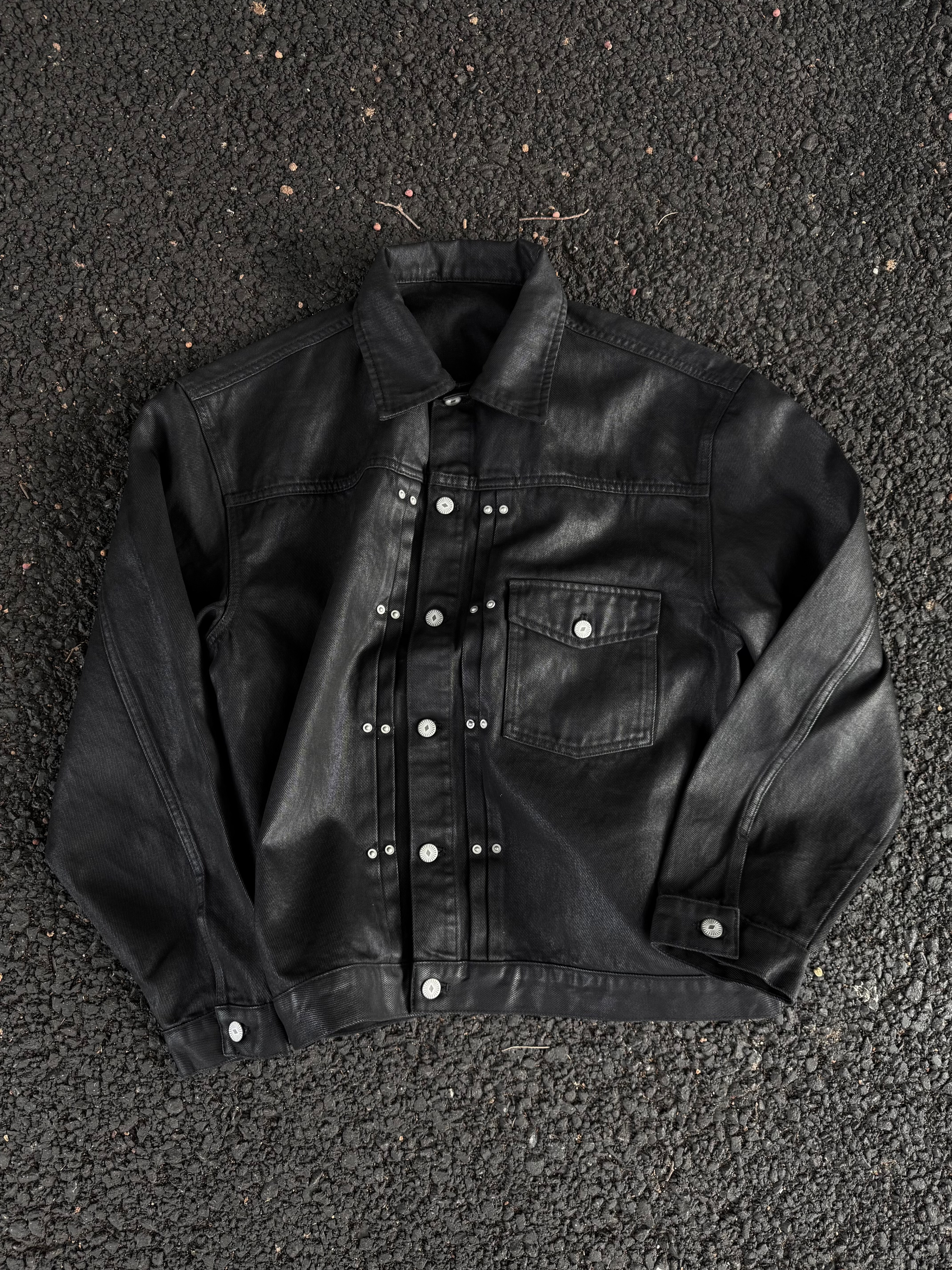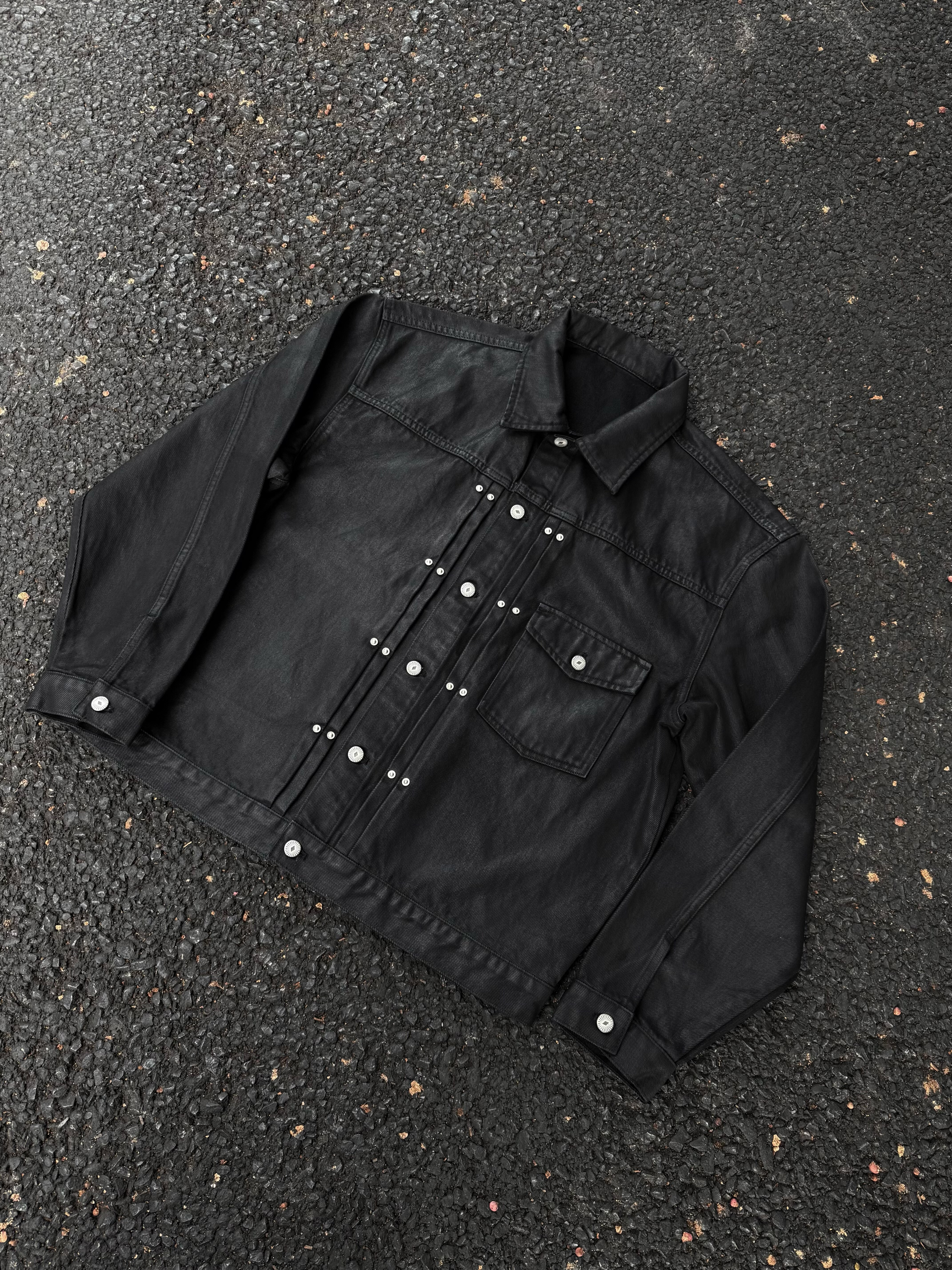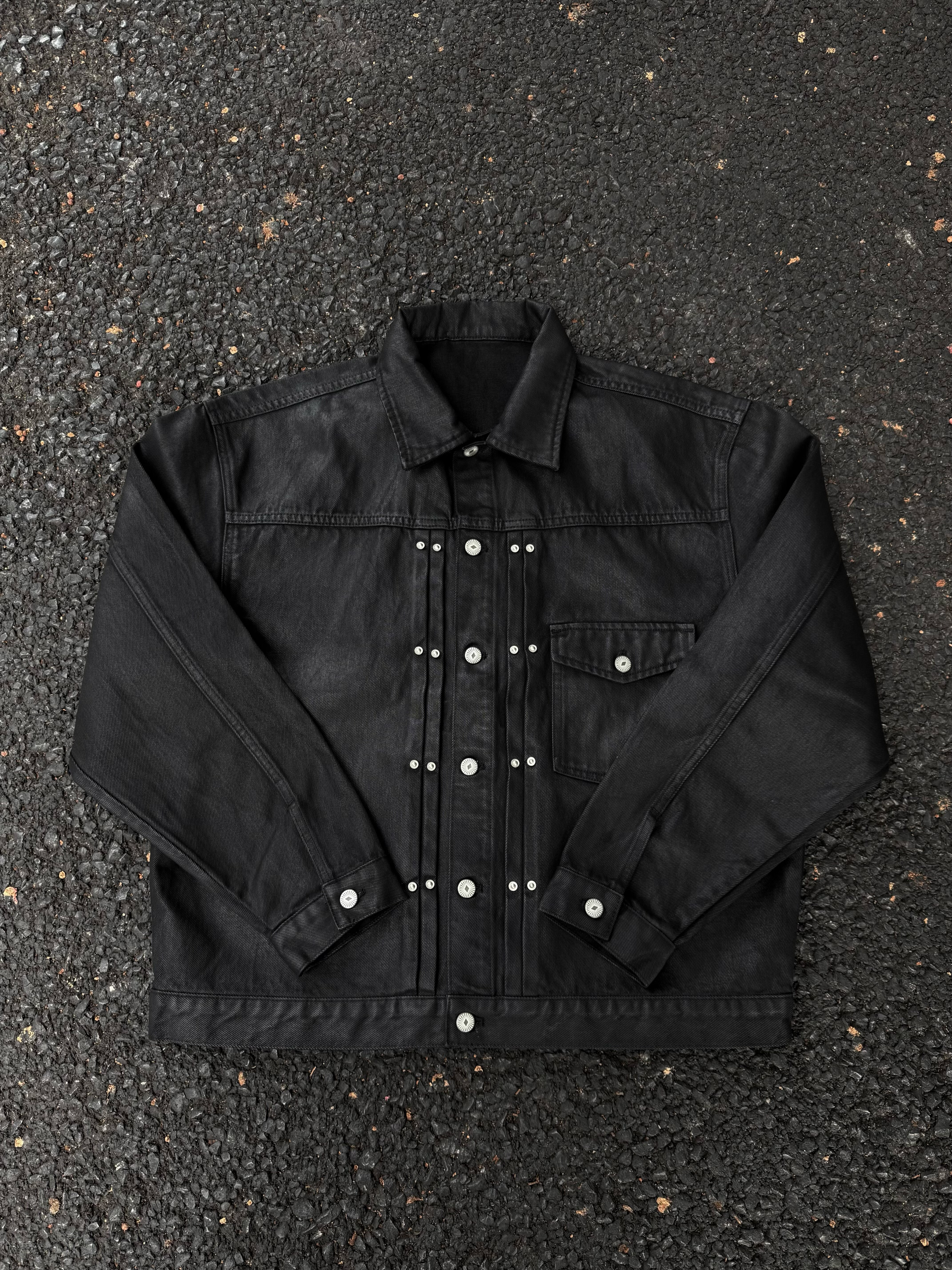 Vowprogress Vinyl Wax Coating Accordion Pleated Denim Jacket/Kanglong Fabric/Type2 Upgrade