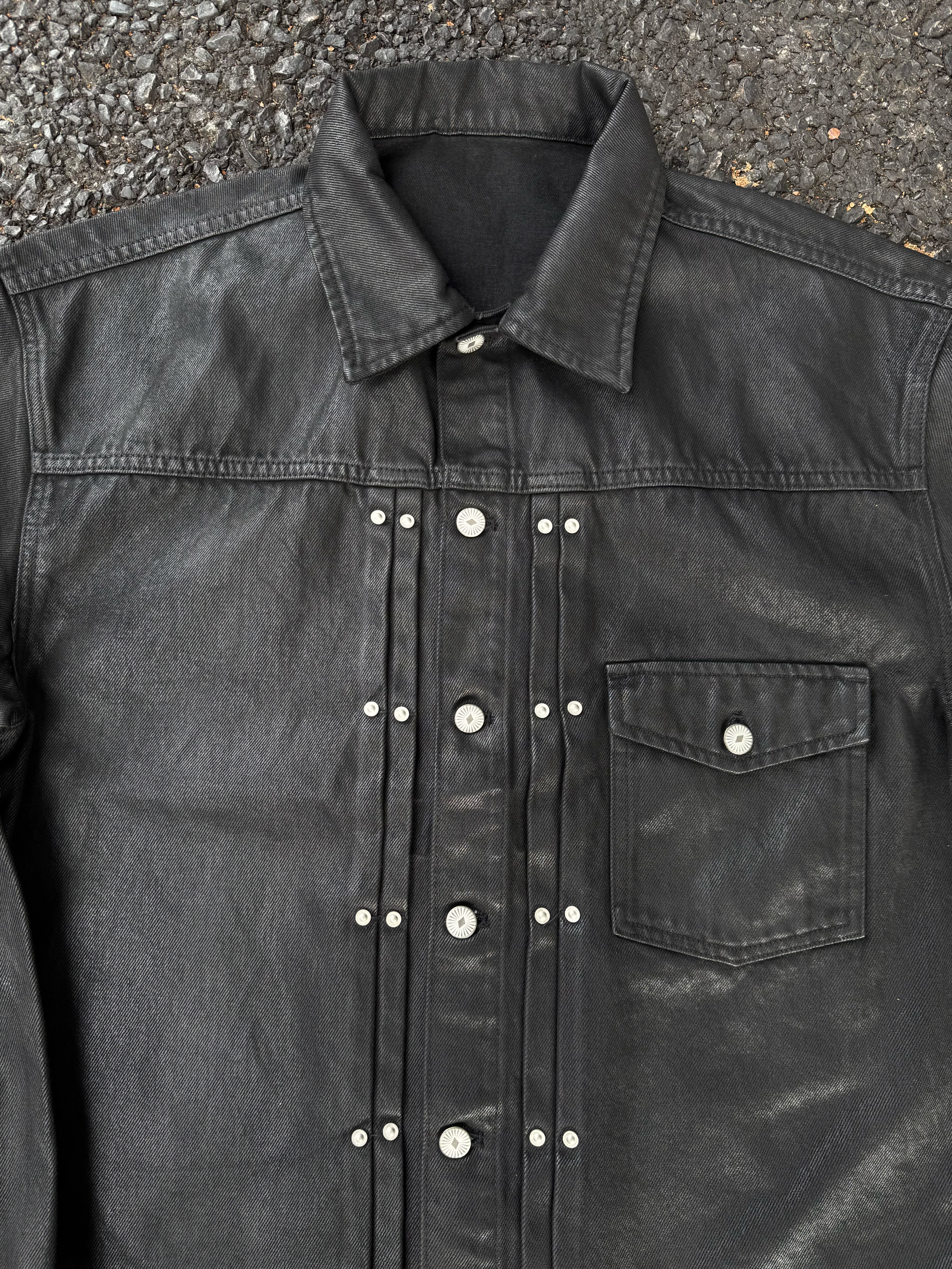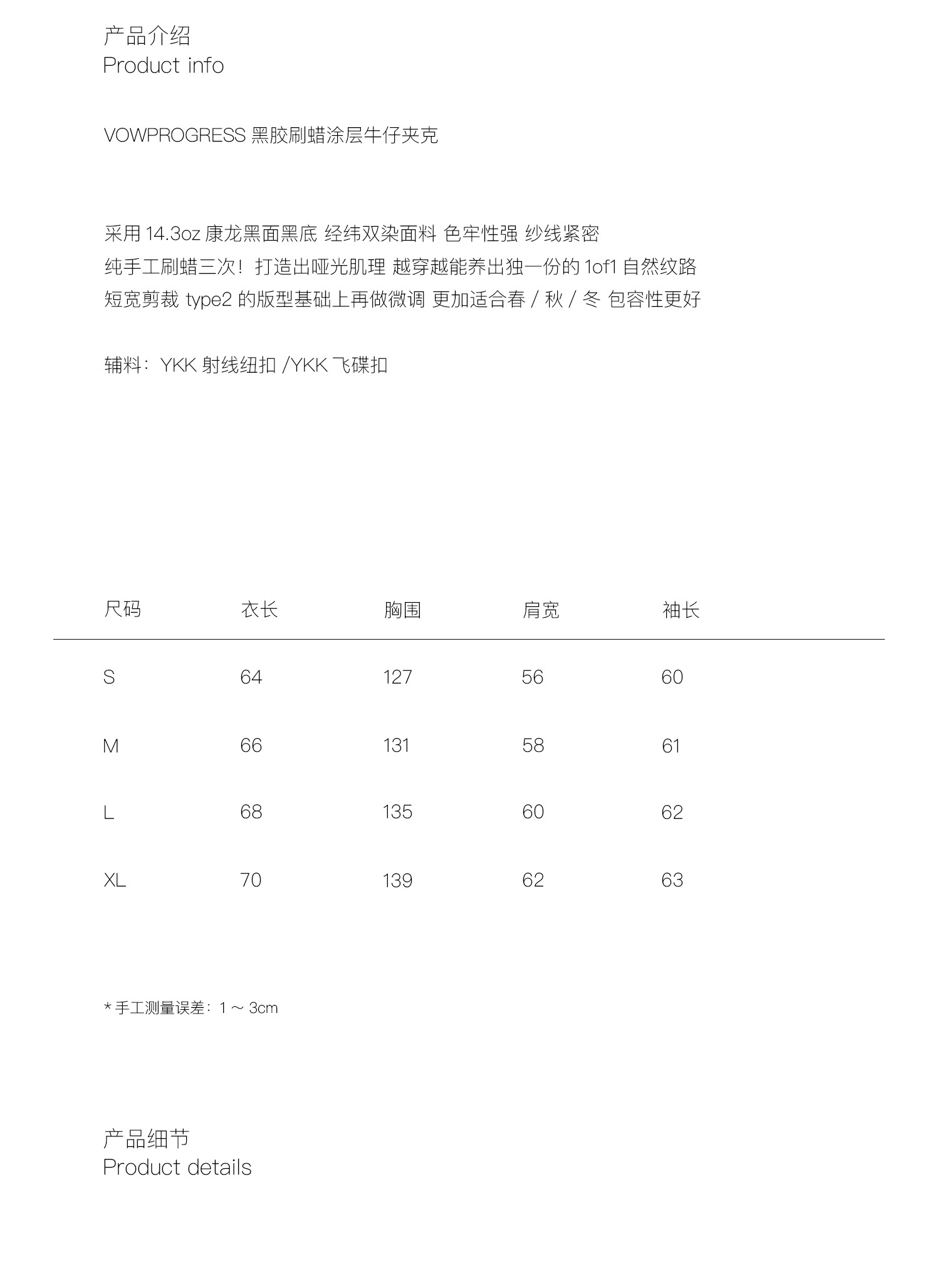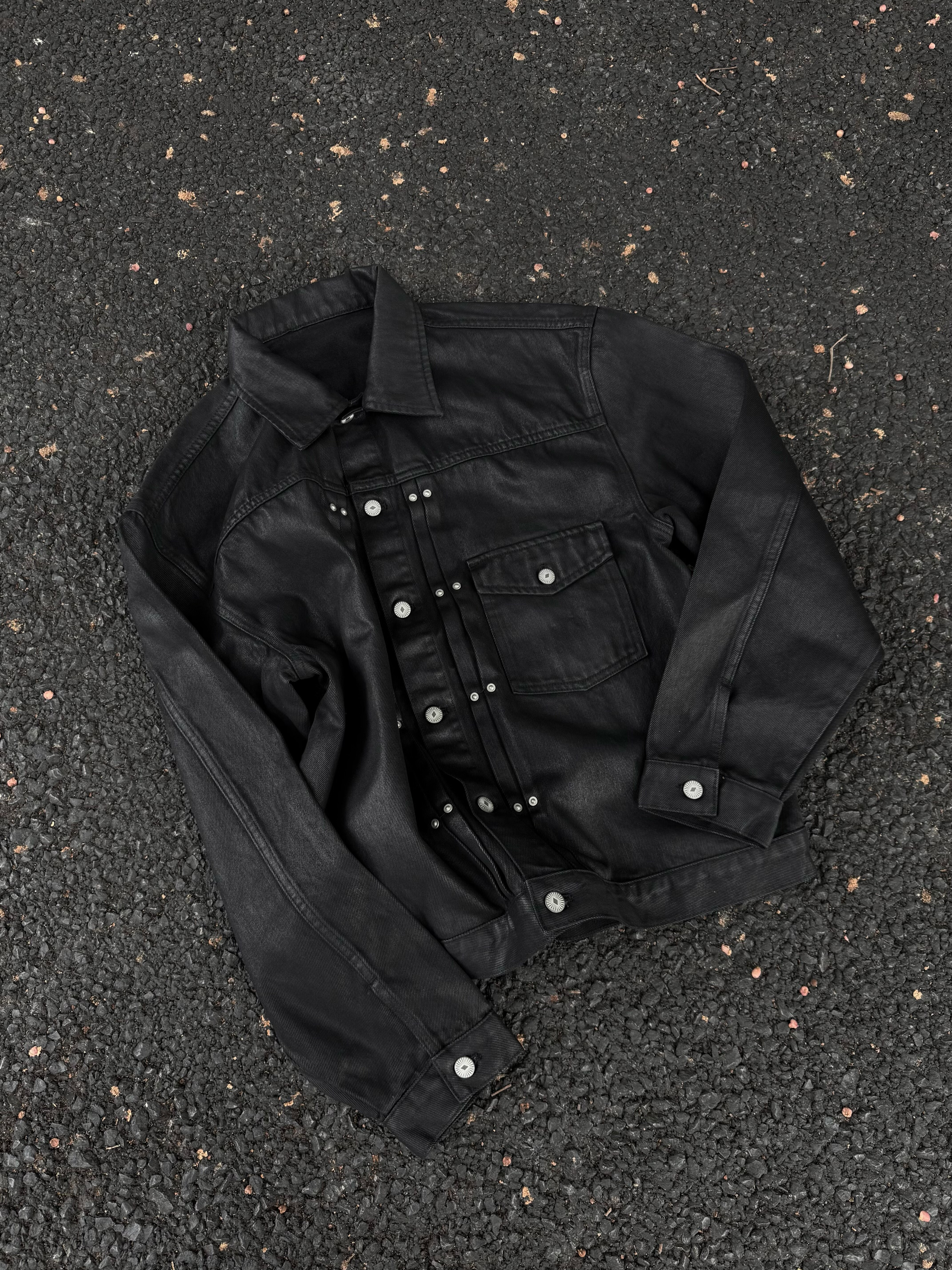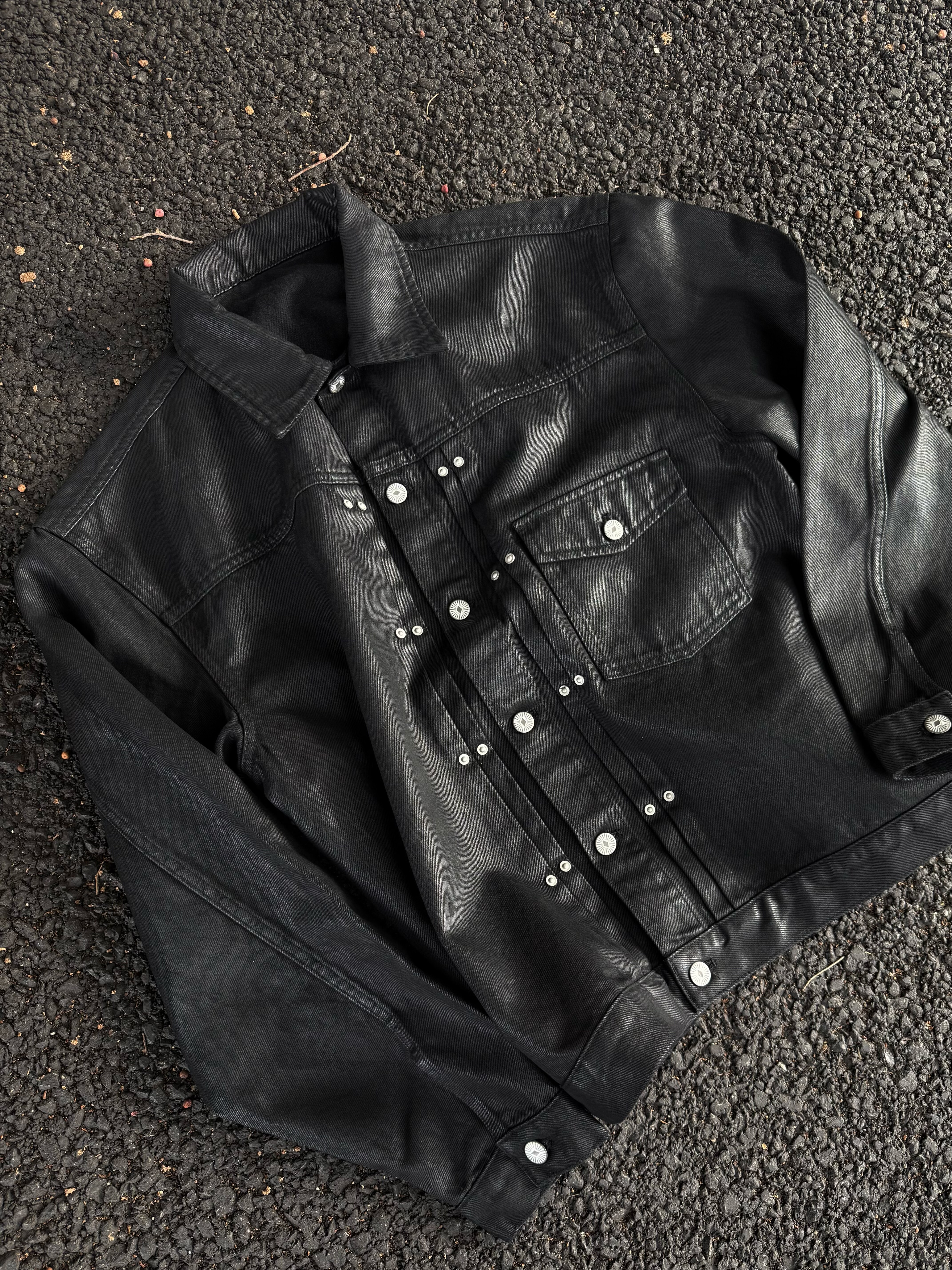 Vowprogress Vinyl Wax Coating Accordion Pleated Denim Jacket/Kanglong Fabric/Type2 Upgrade