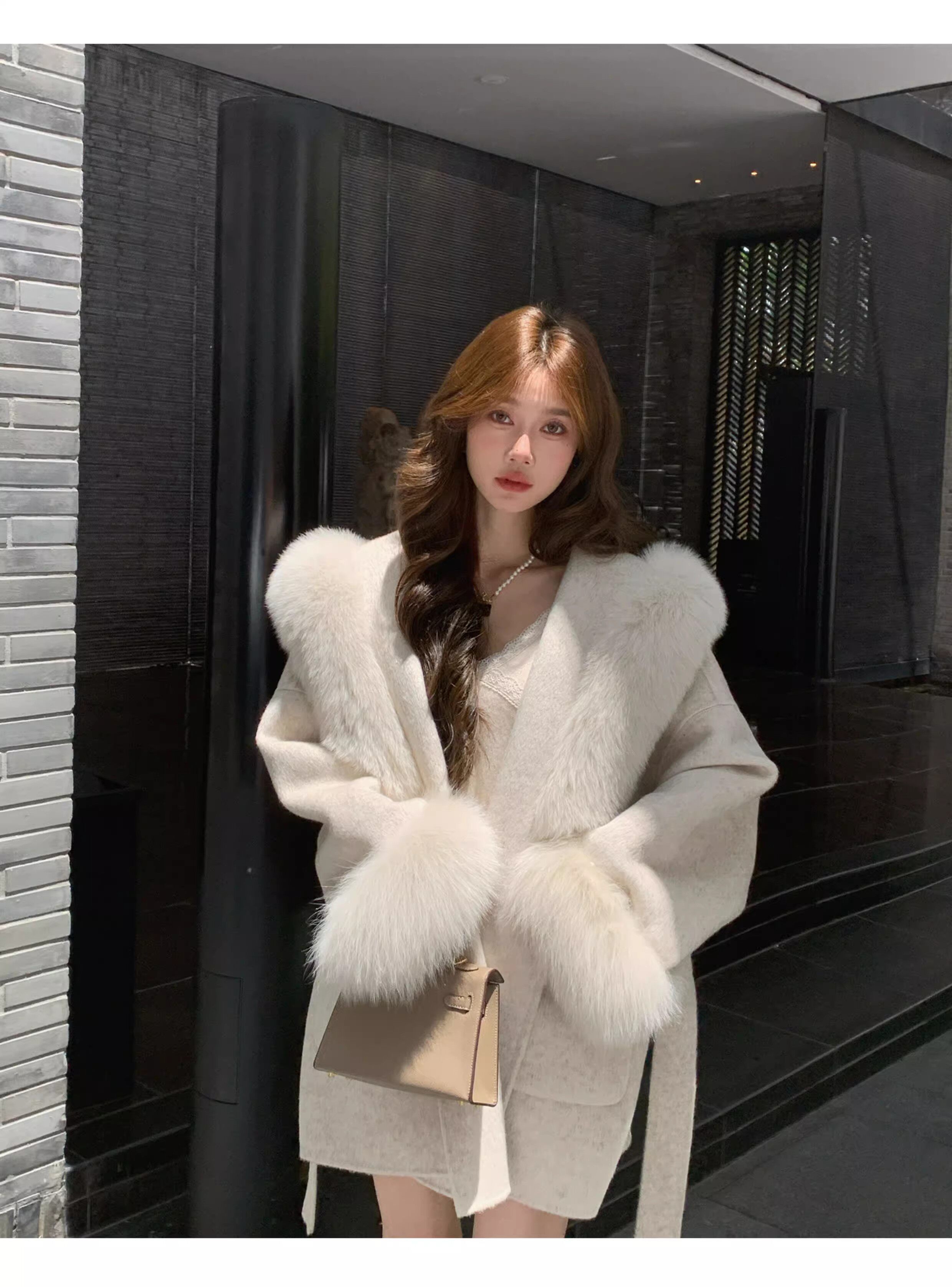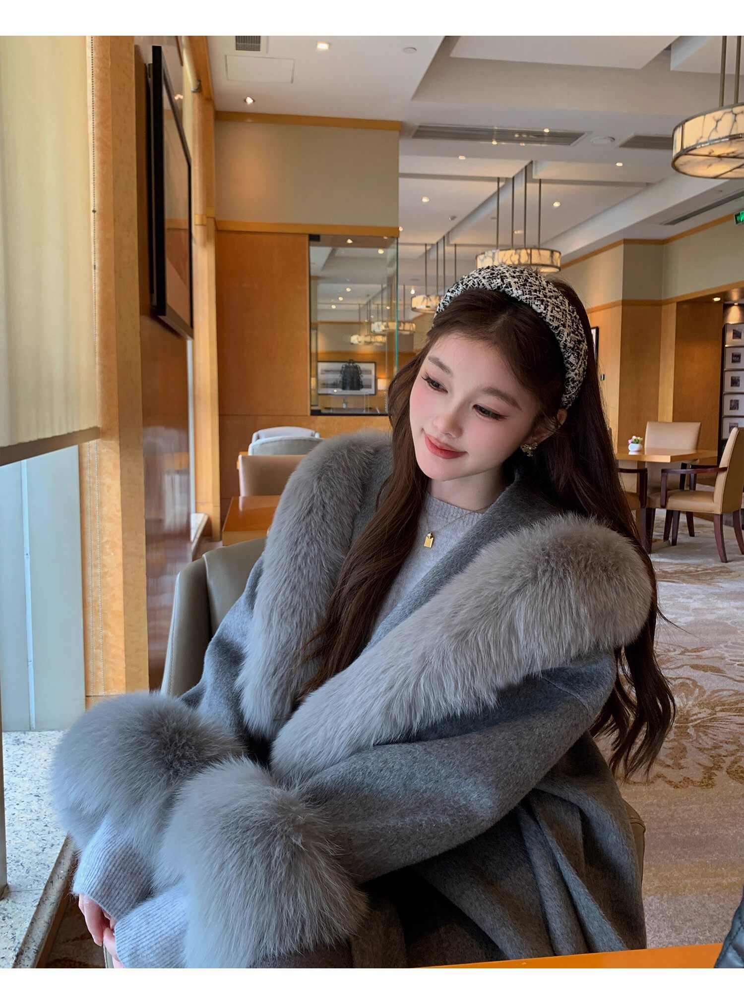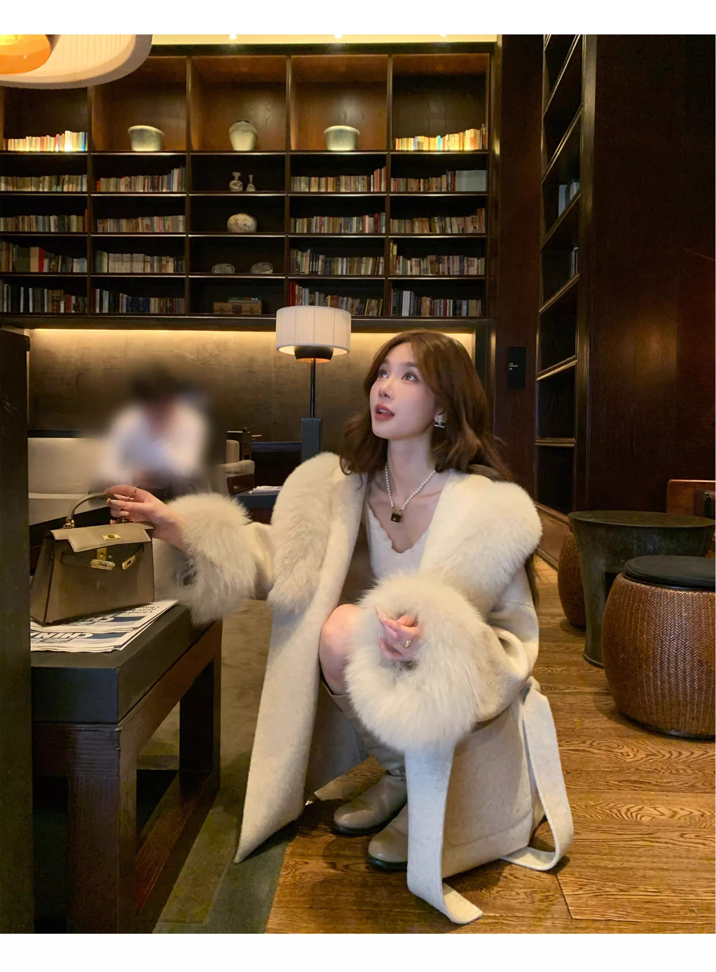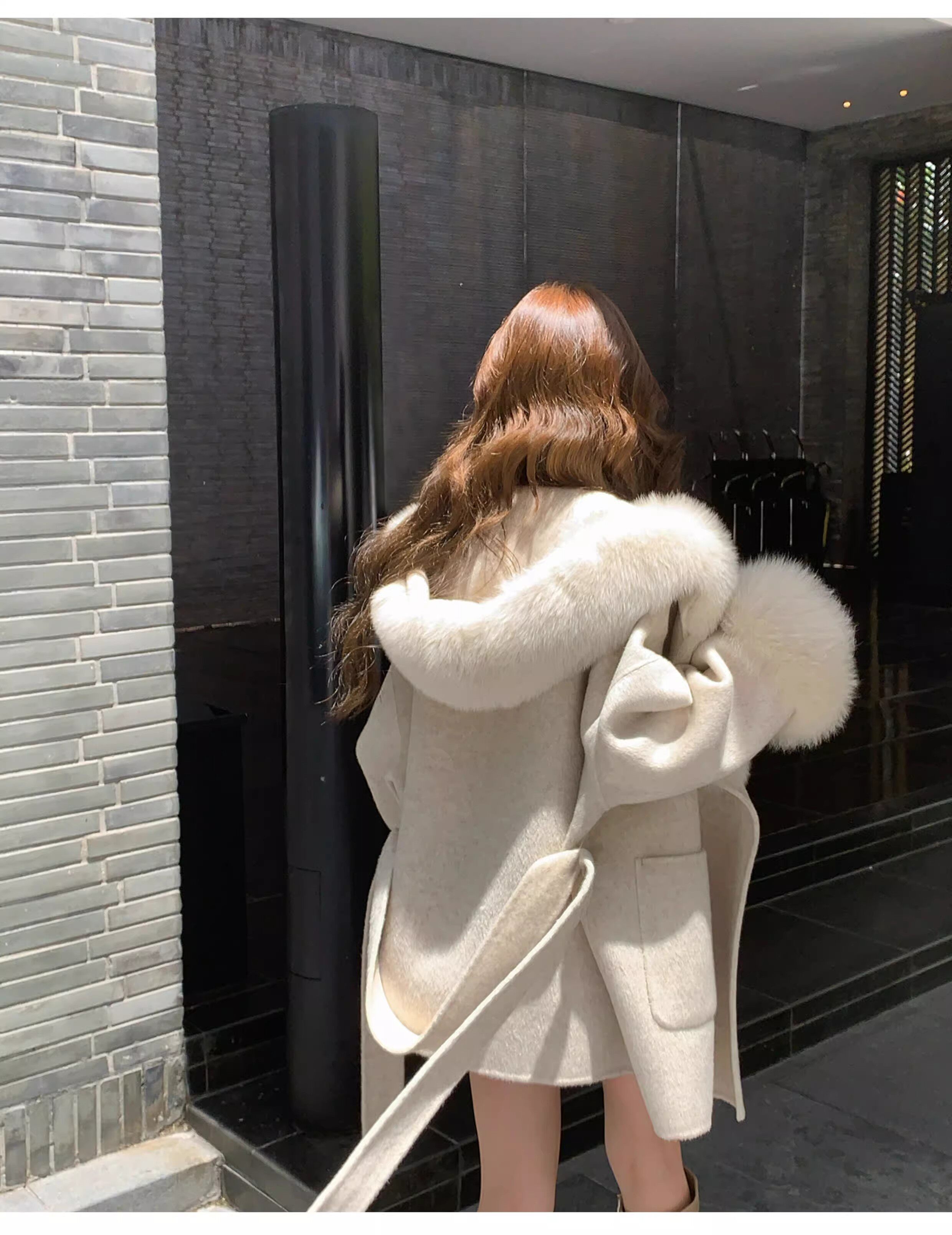 Extra Large Fox Fur Collar Double-Sided Cashmere Coat for Women 2025 Winter New Style Hooded Fur Woolen Coat