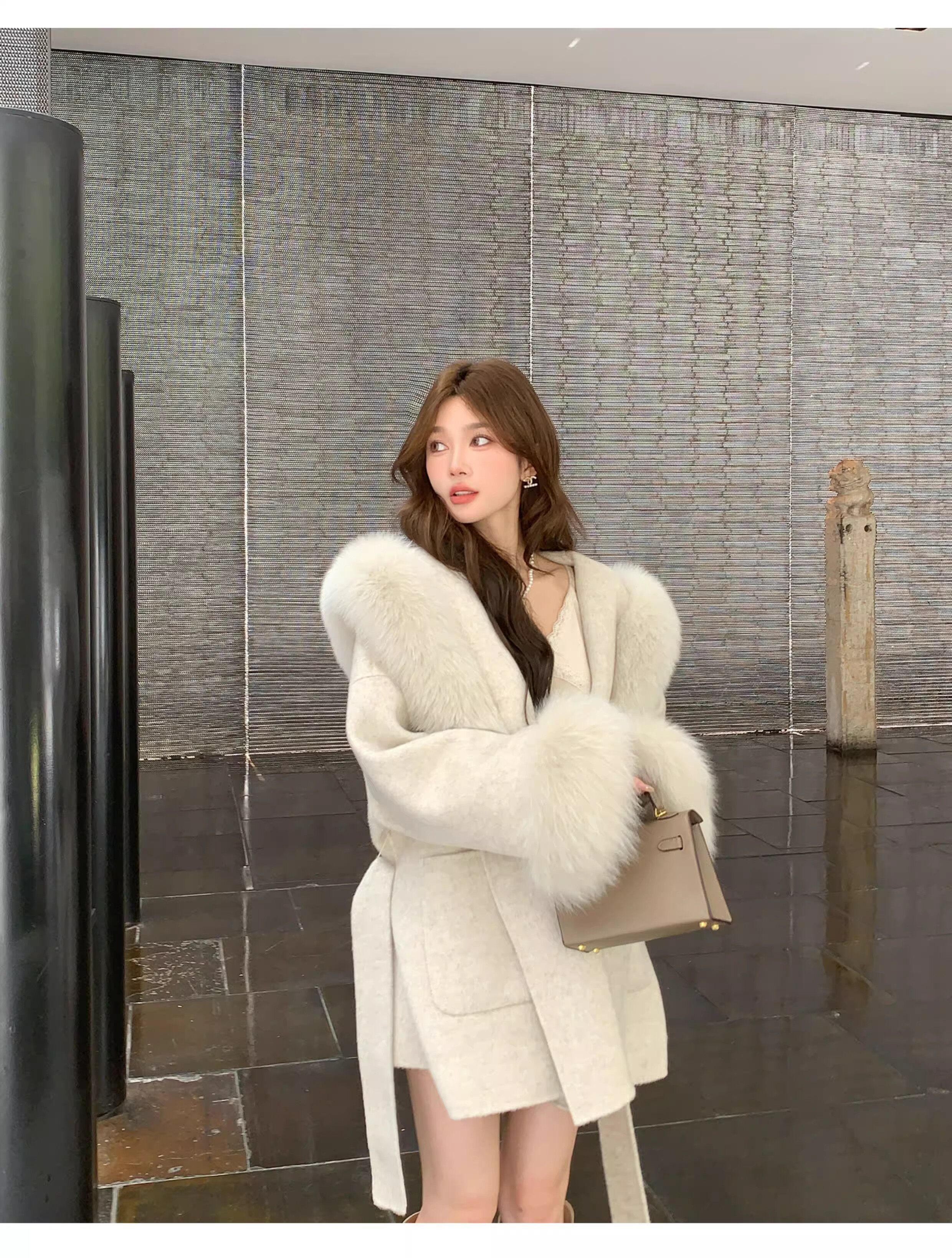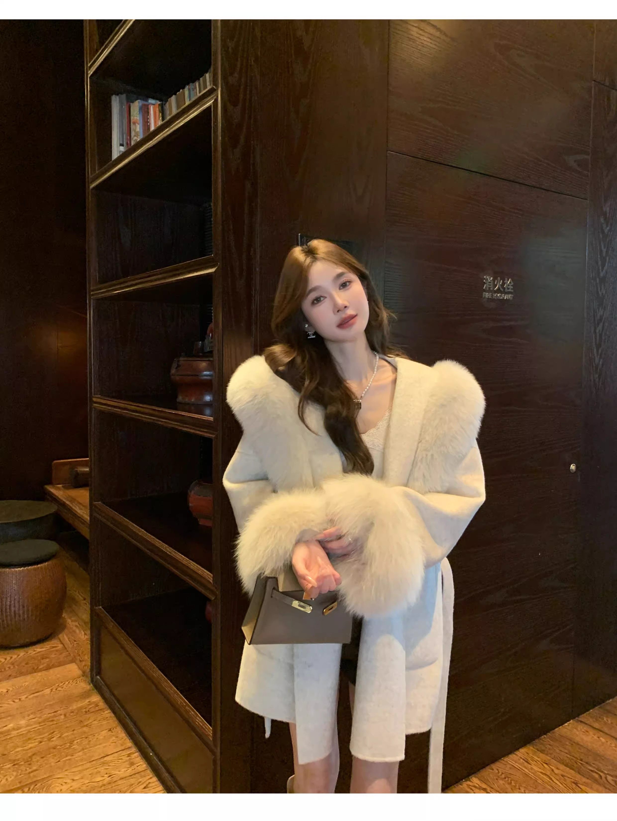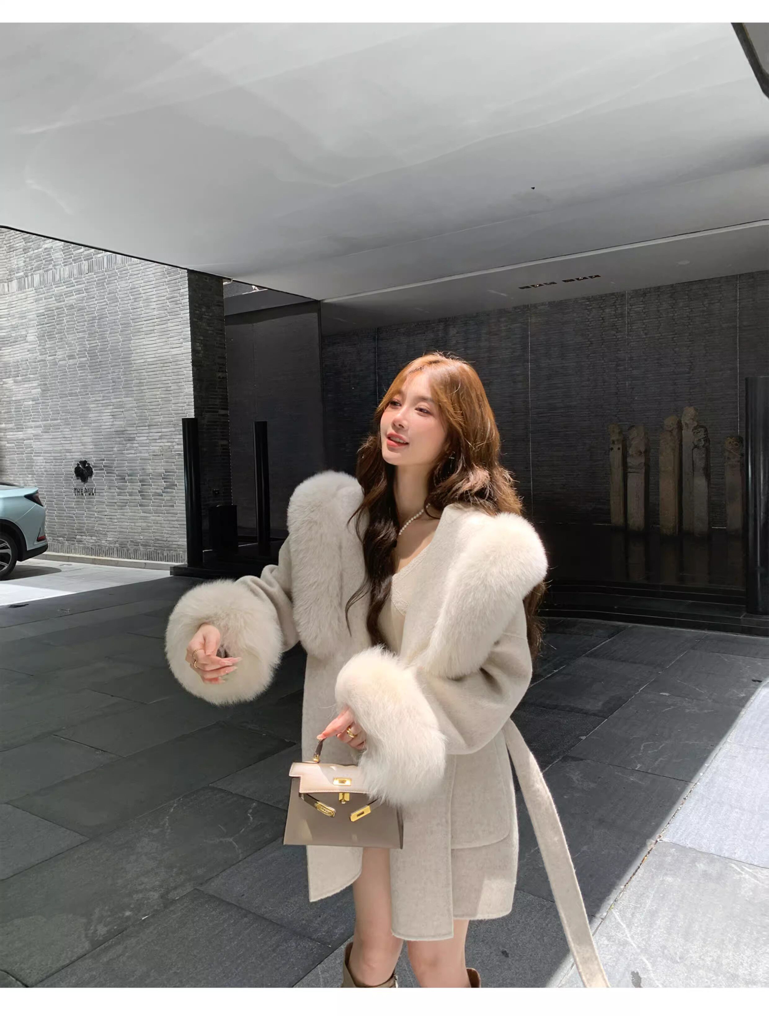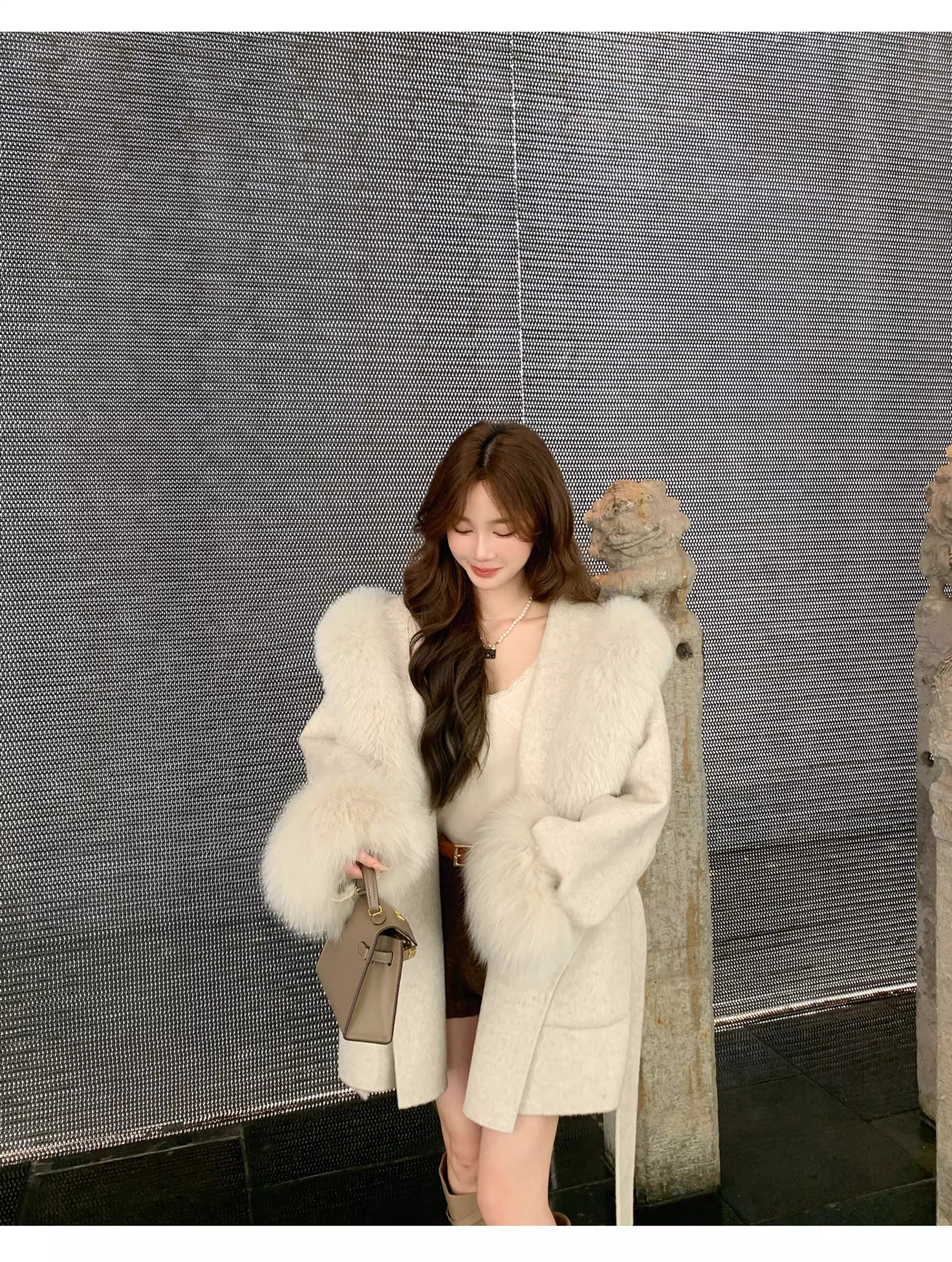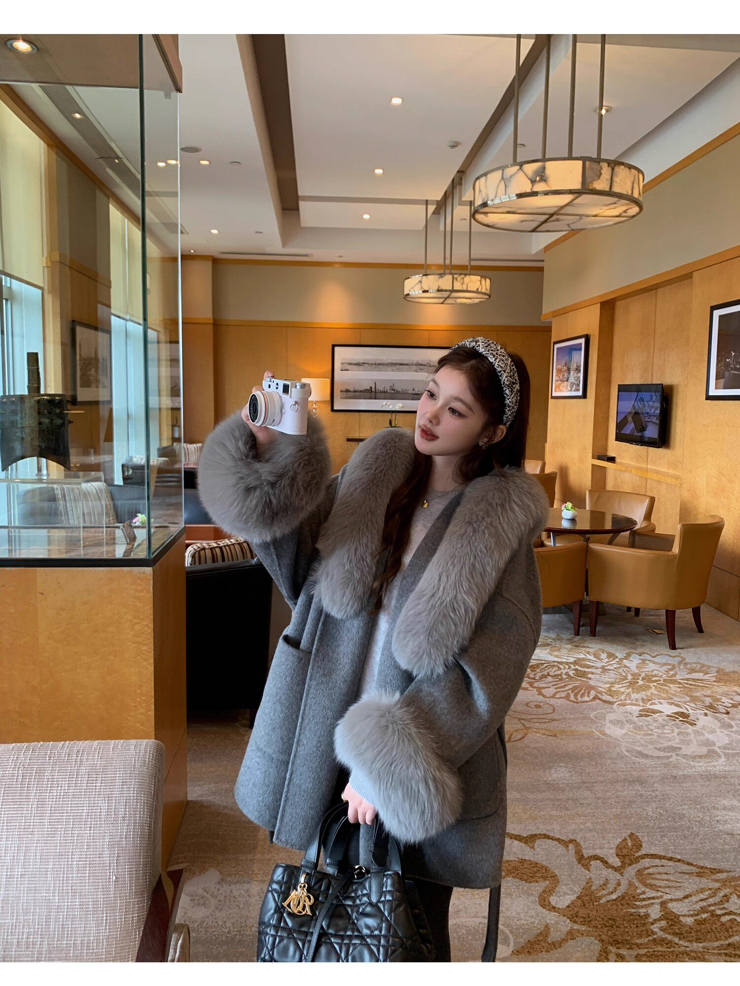 Extra Large Fox Fur Collar Double-Sided Cashmere Coat for Women 2025 Winter New Style Hooded Fur Woolen Coat