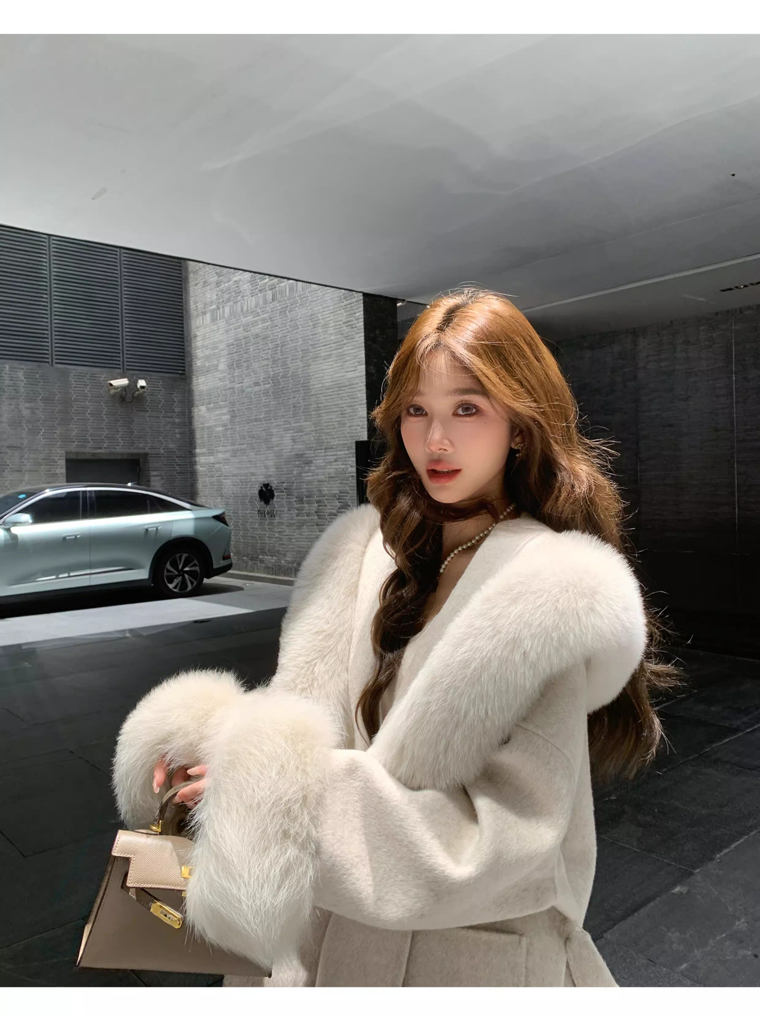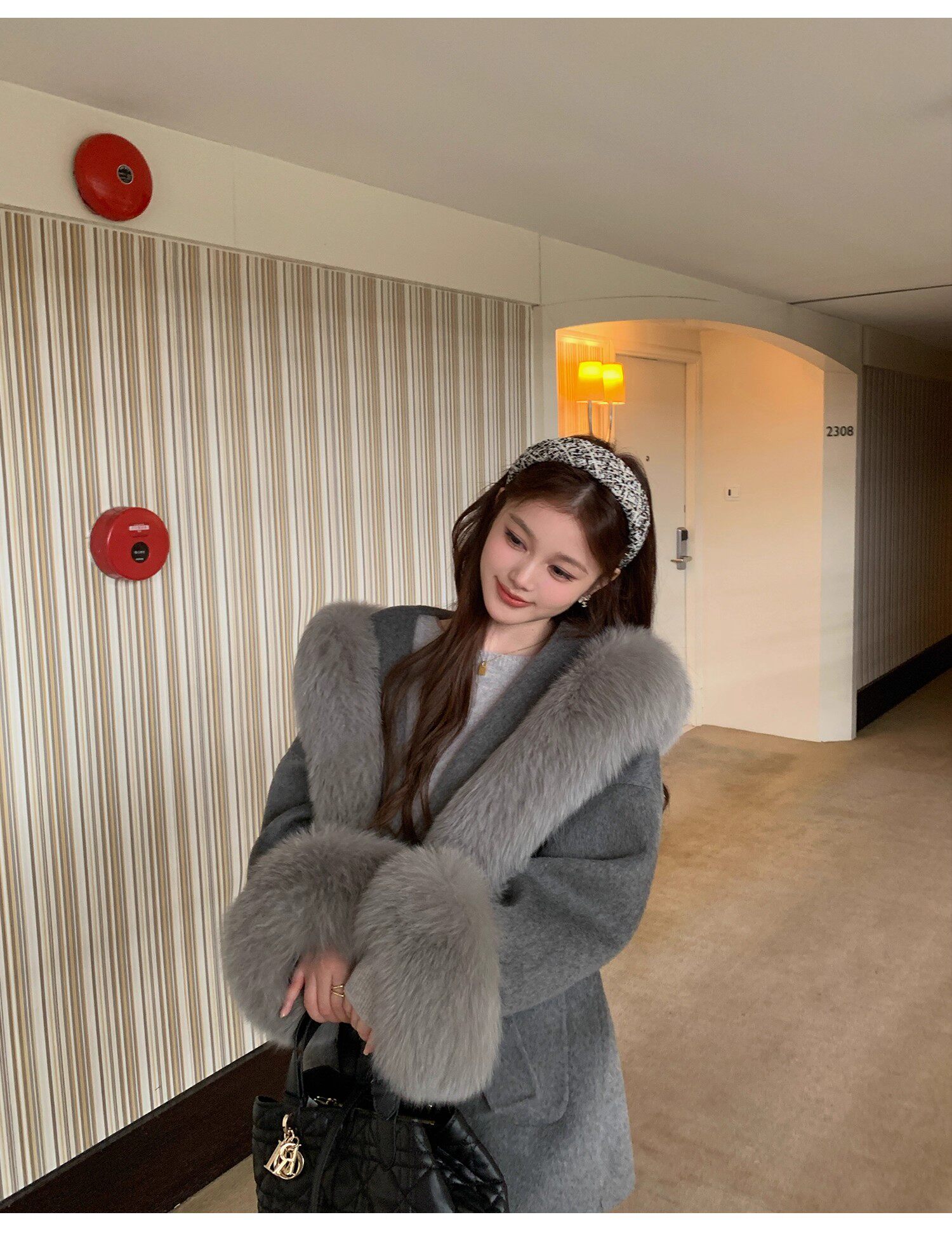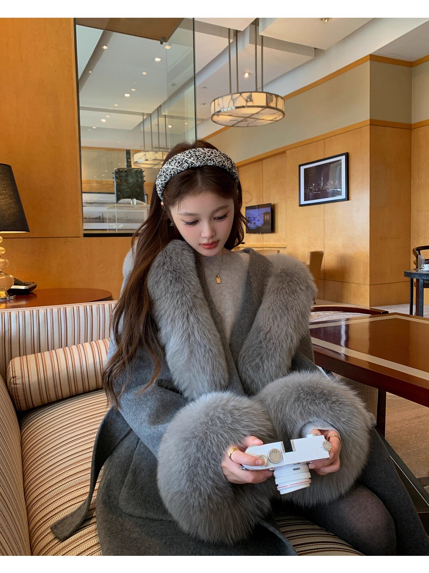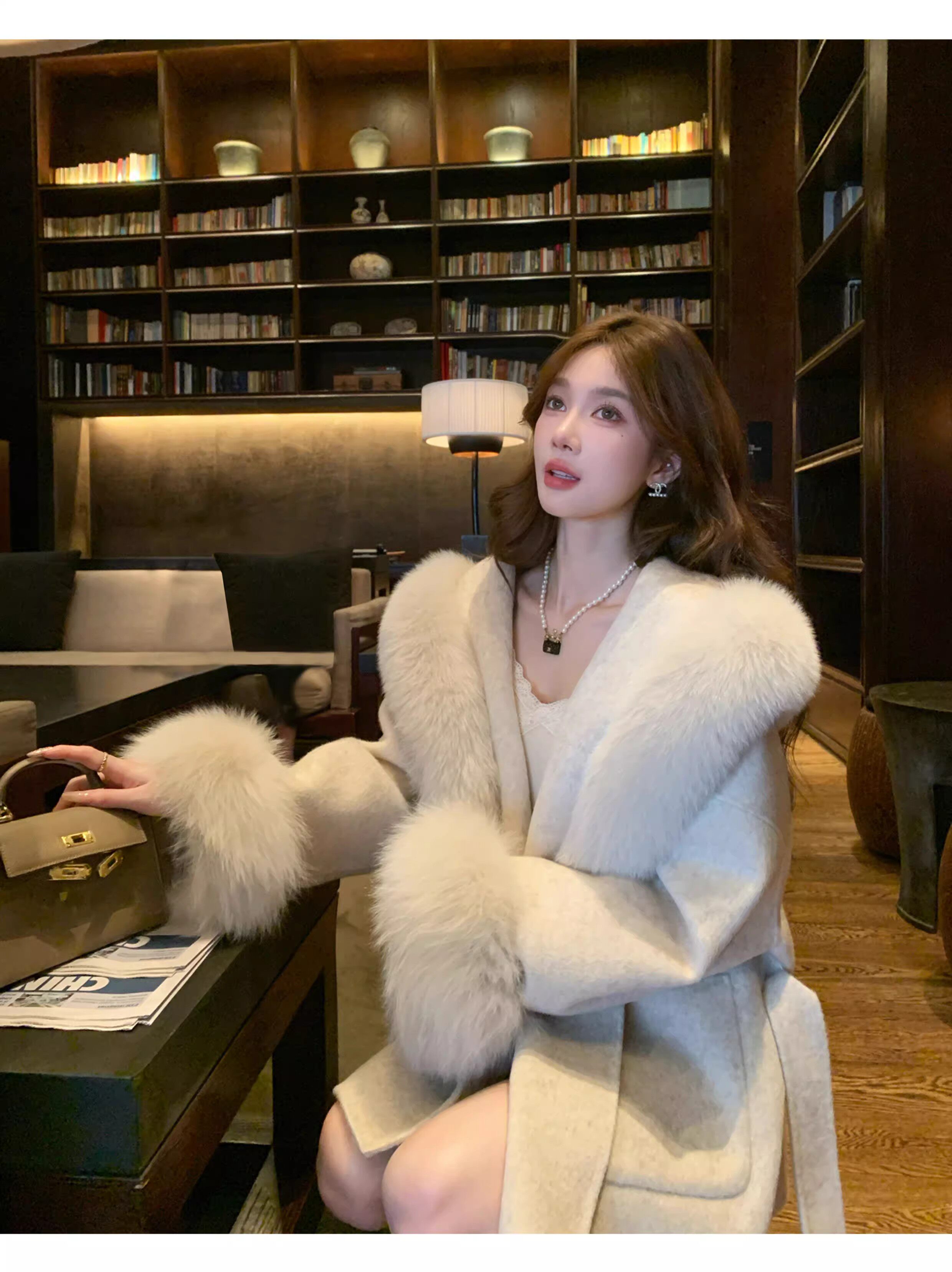 Extra Large Fox Fur Collar Double-Sided Cashmere Coat for Women 2025 Winter New Style Hooded Fur Woolen Coat