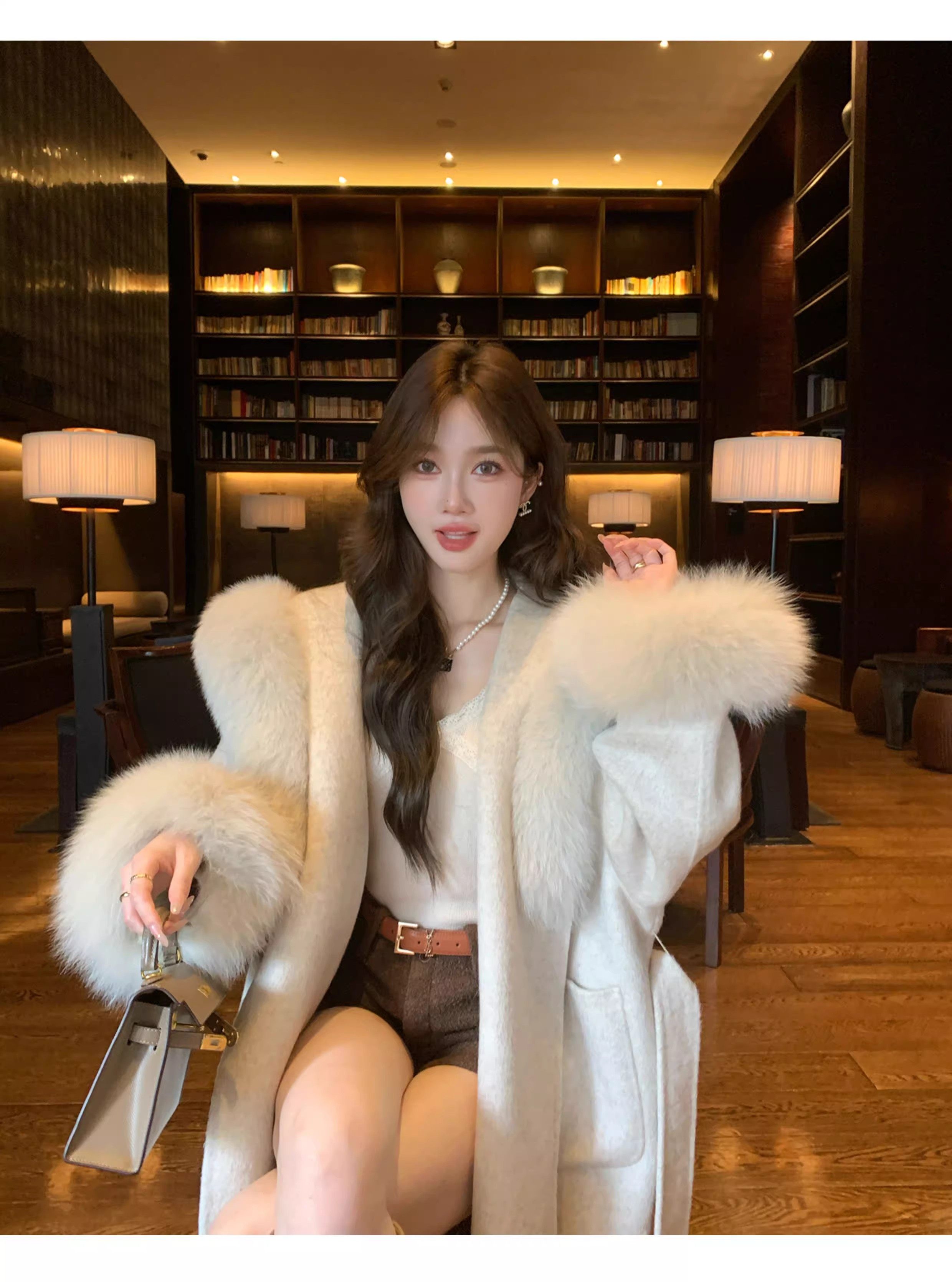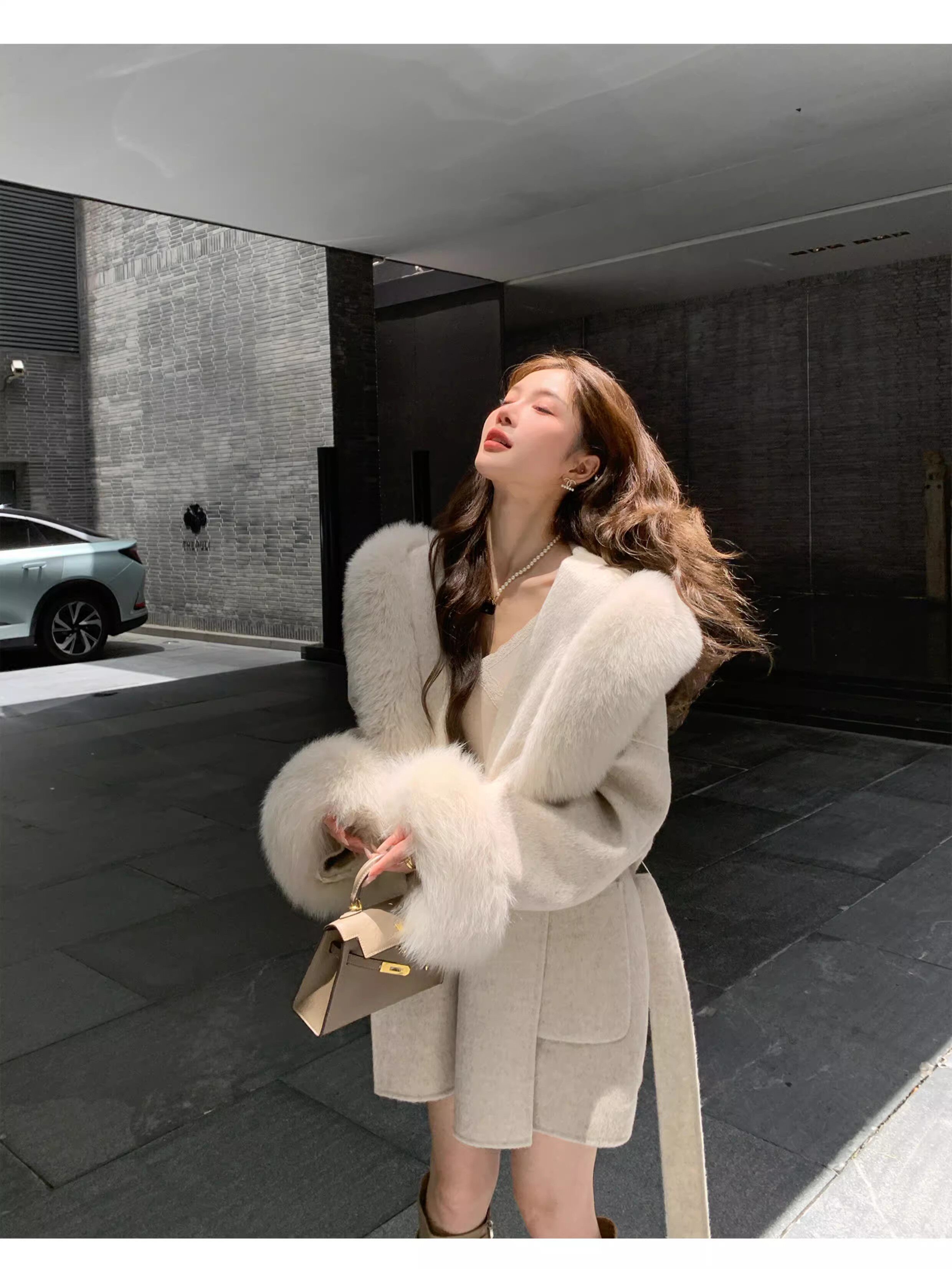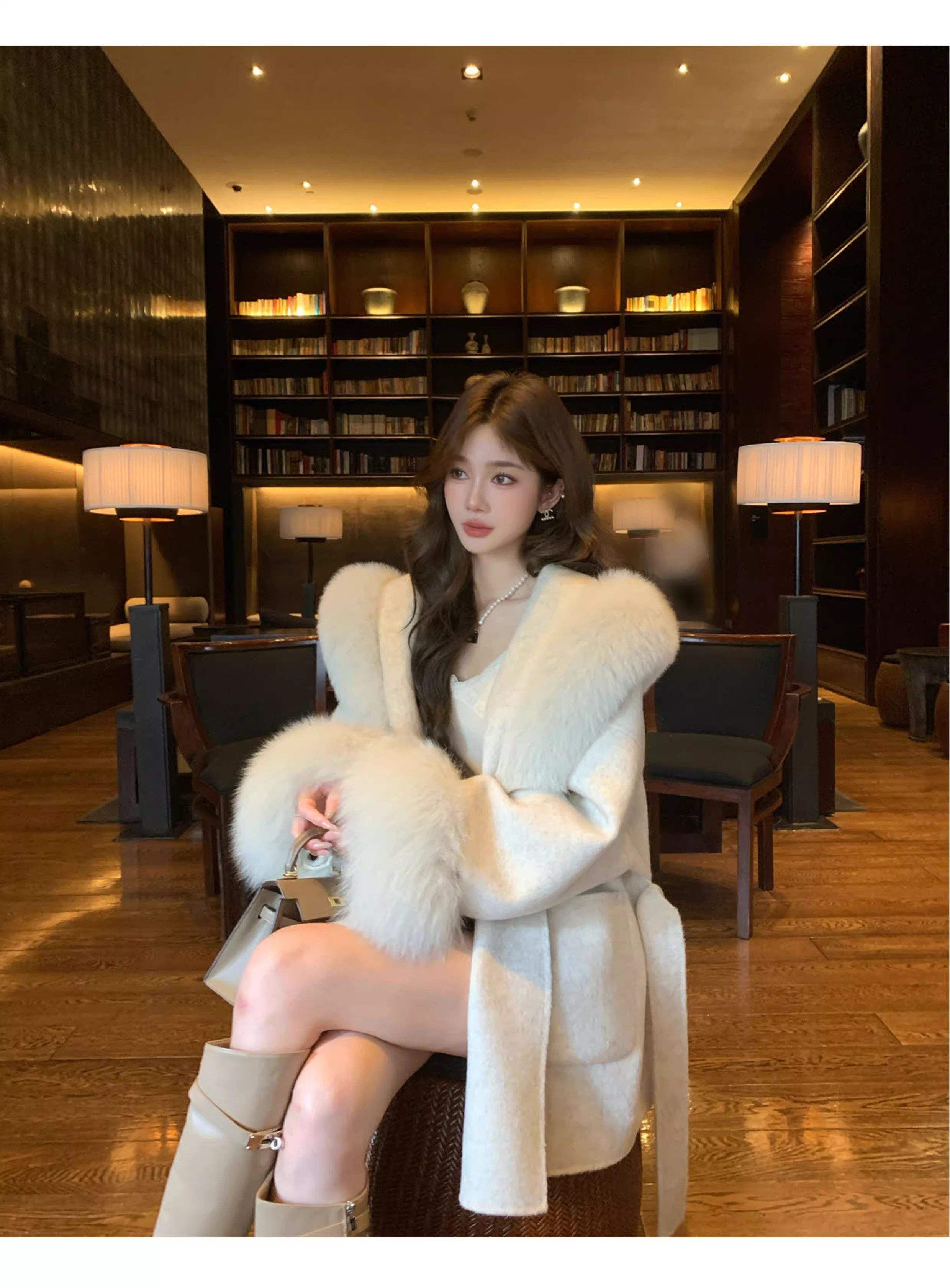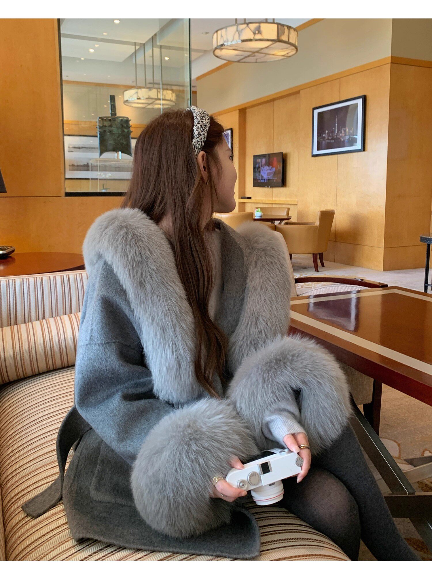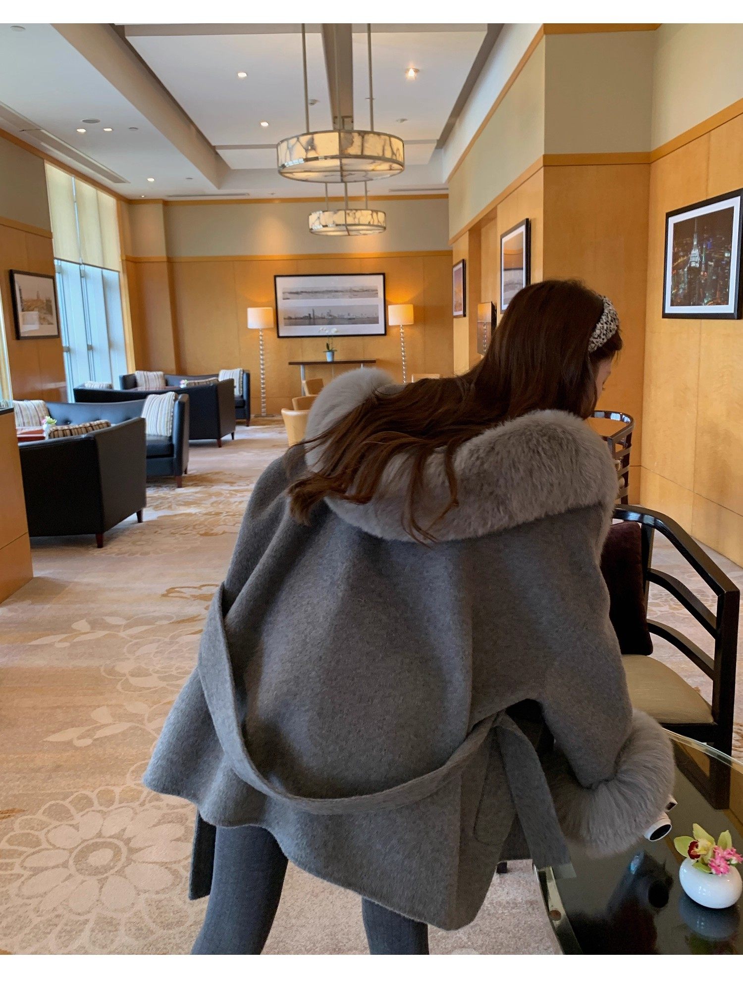 Extra Large Fox Fur Collar Double-Sided Cashmere Coat for Women 2025 Winter New Style Hooded Fur Woolen Coat