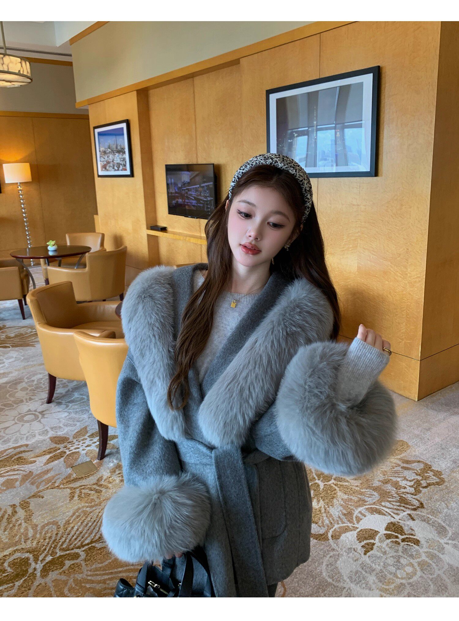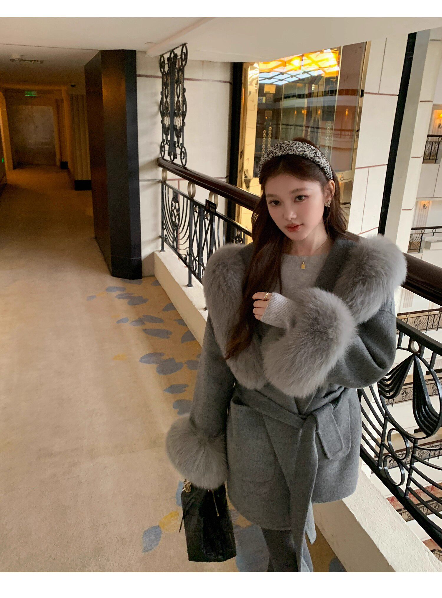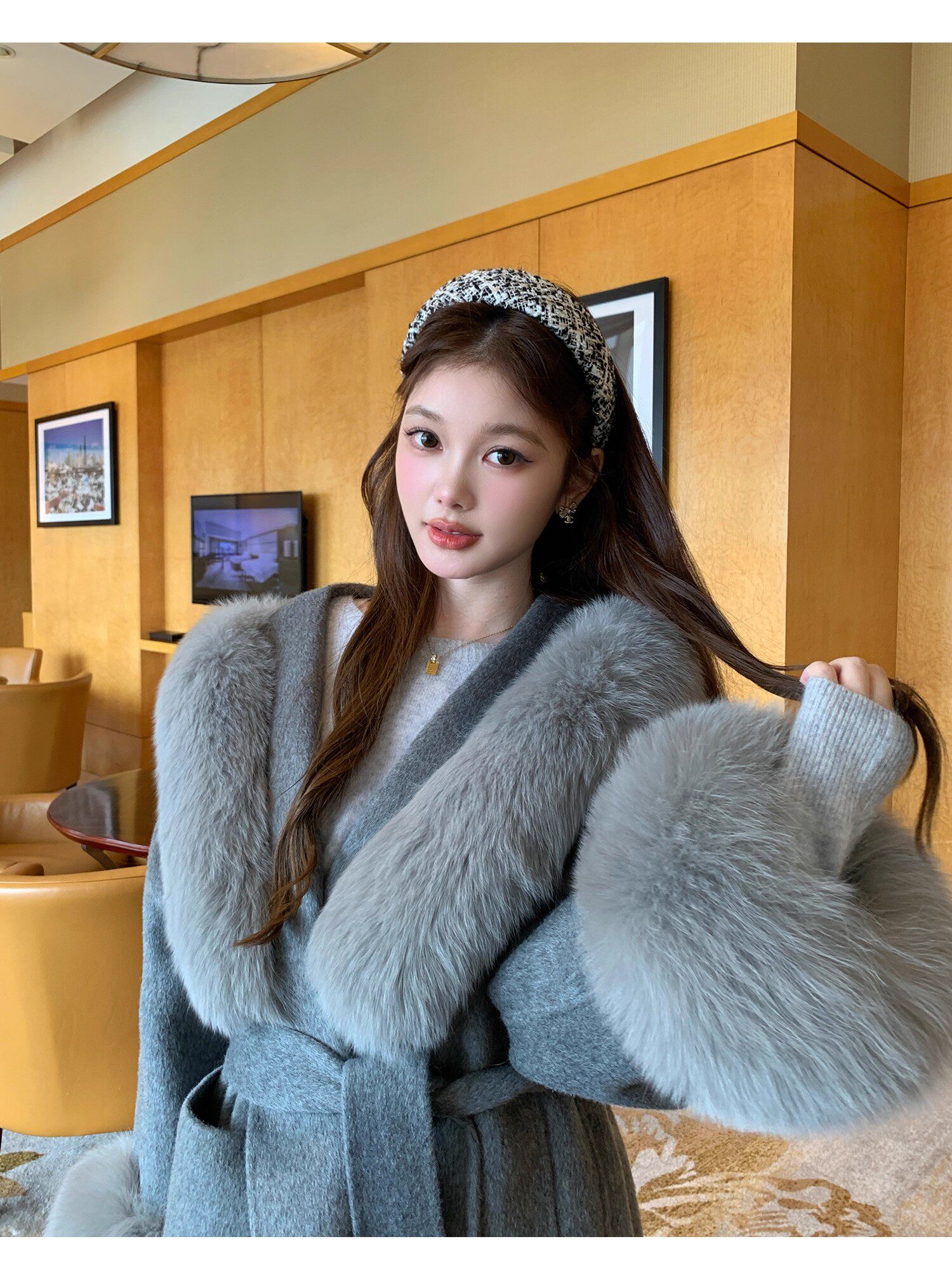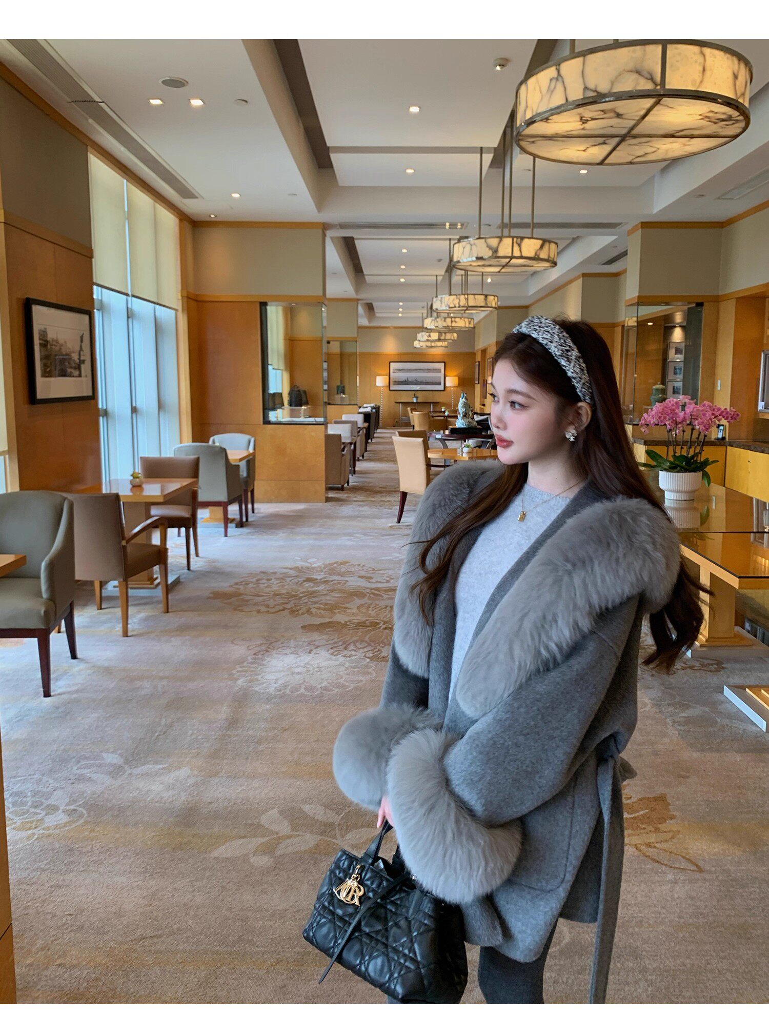 Extra Large Fox Fur Collar Double-Sided Cashmere Coat for Women 2025 Winter New Style Hooded Fur Woolen Coat