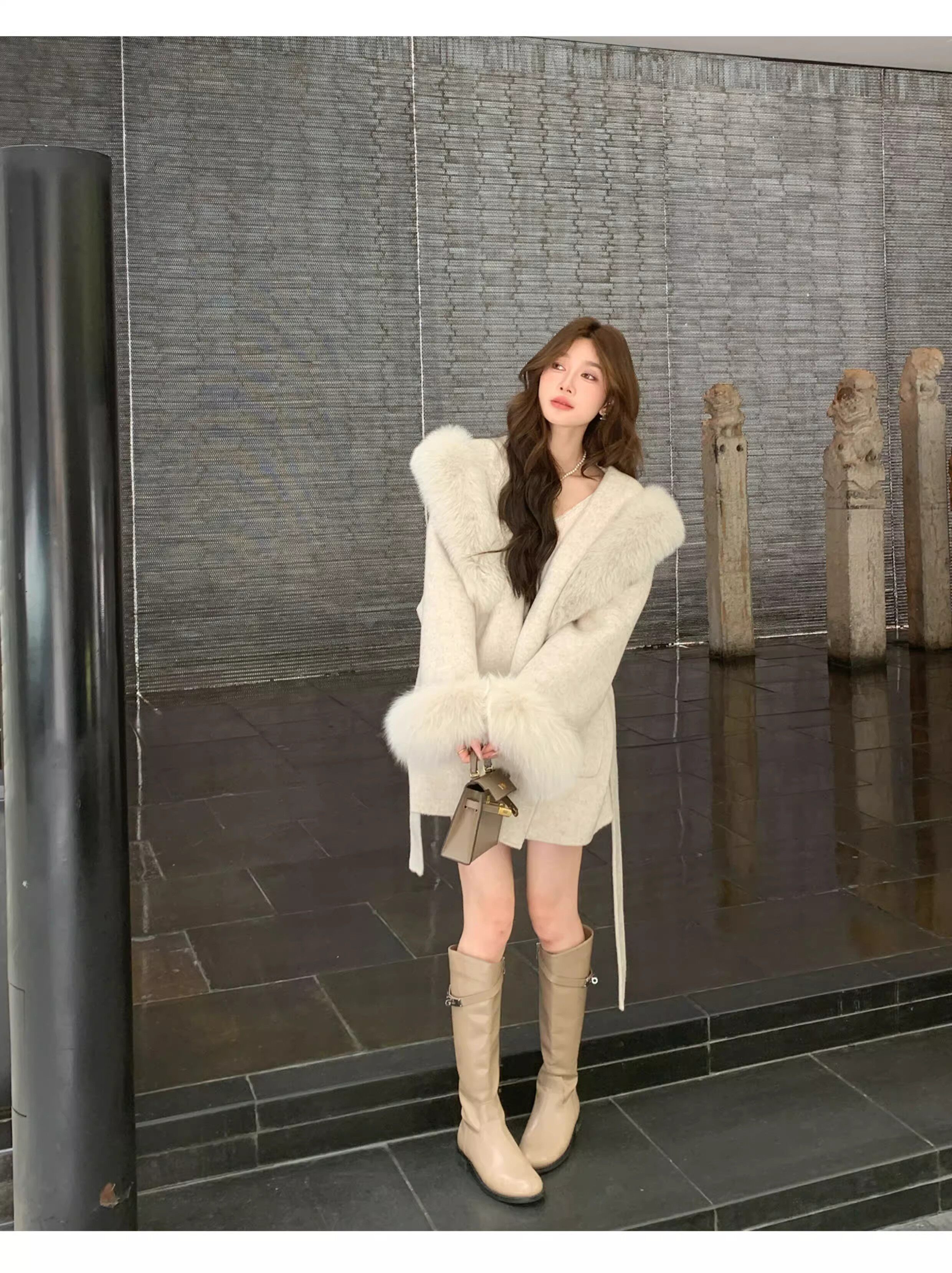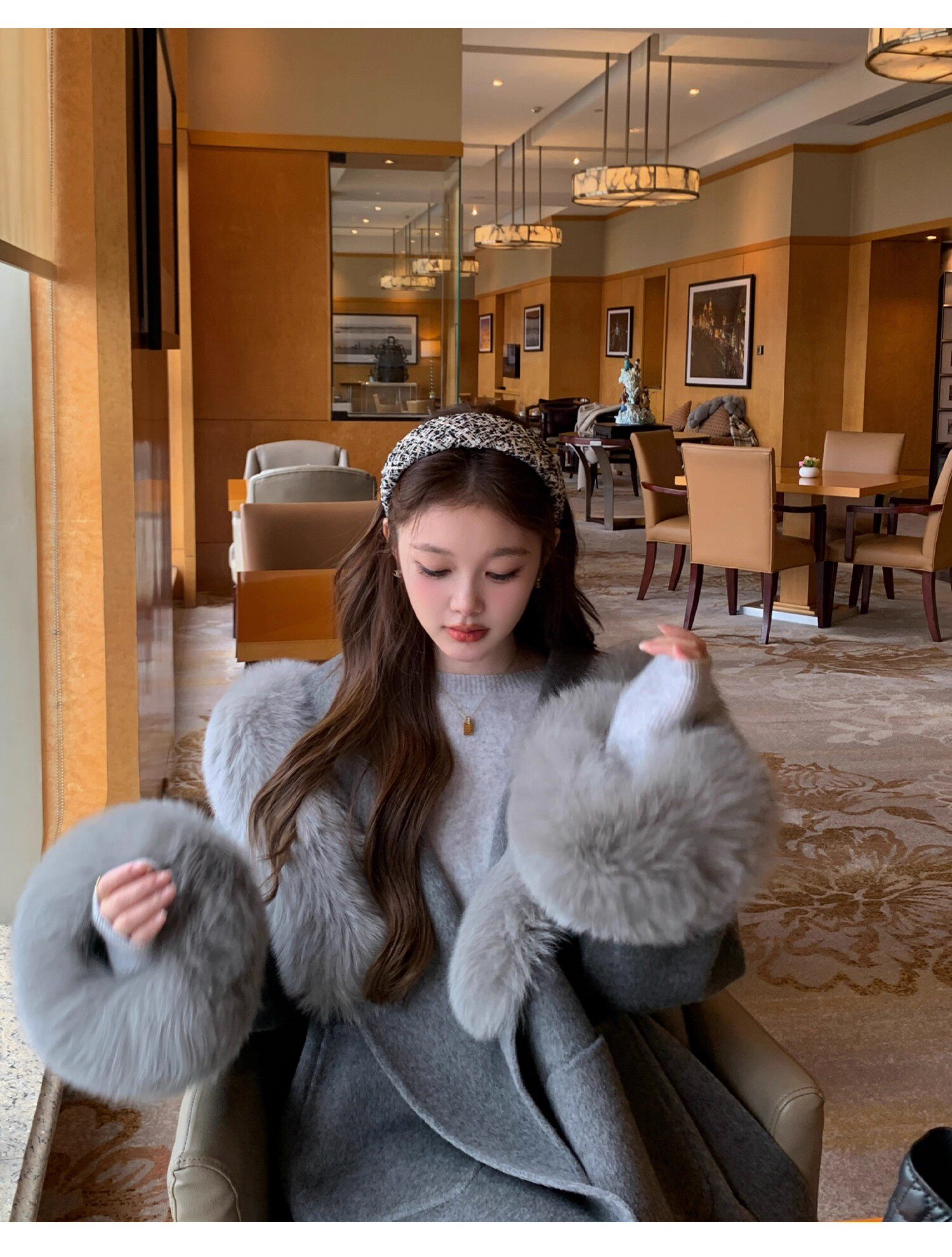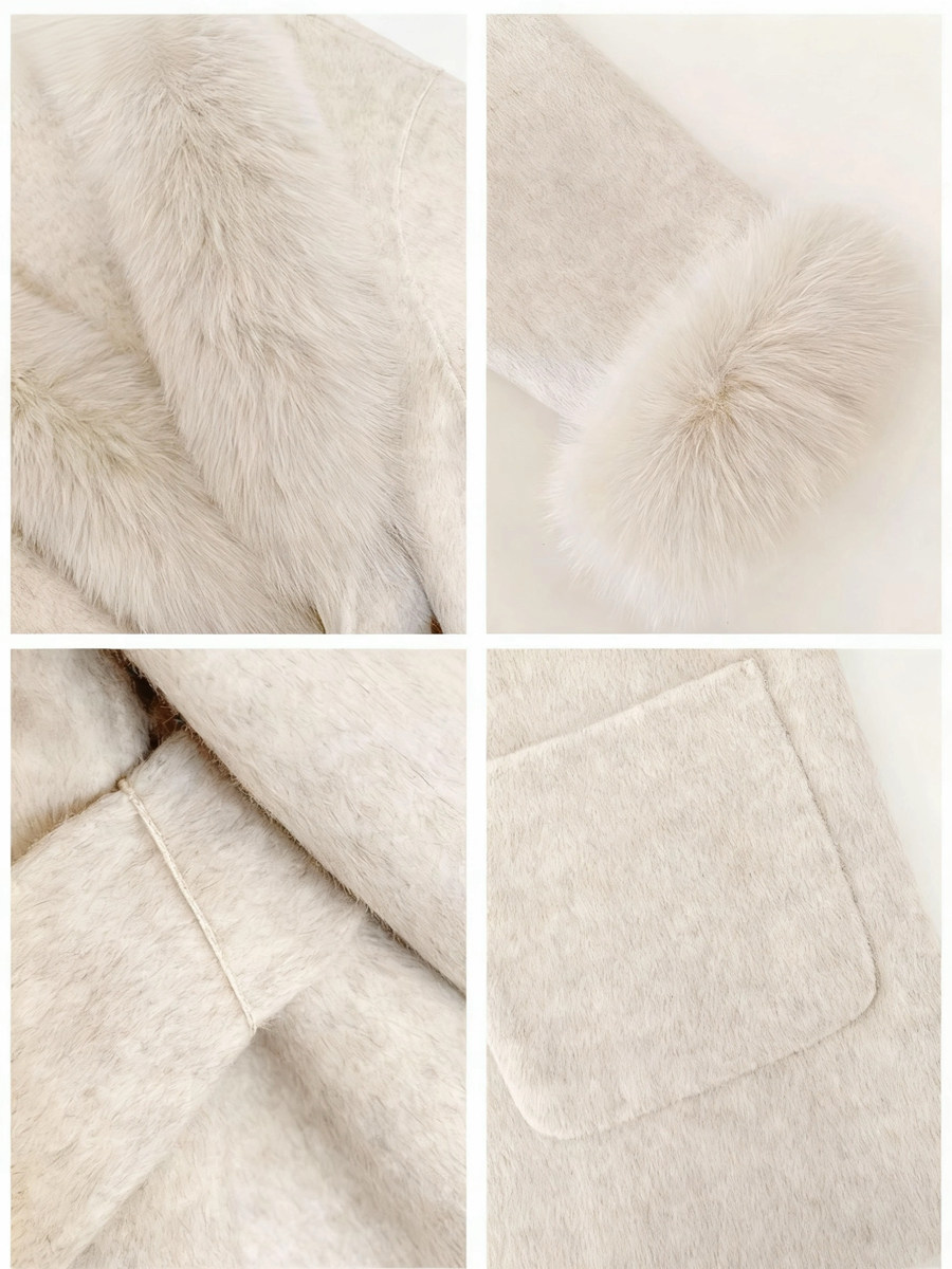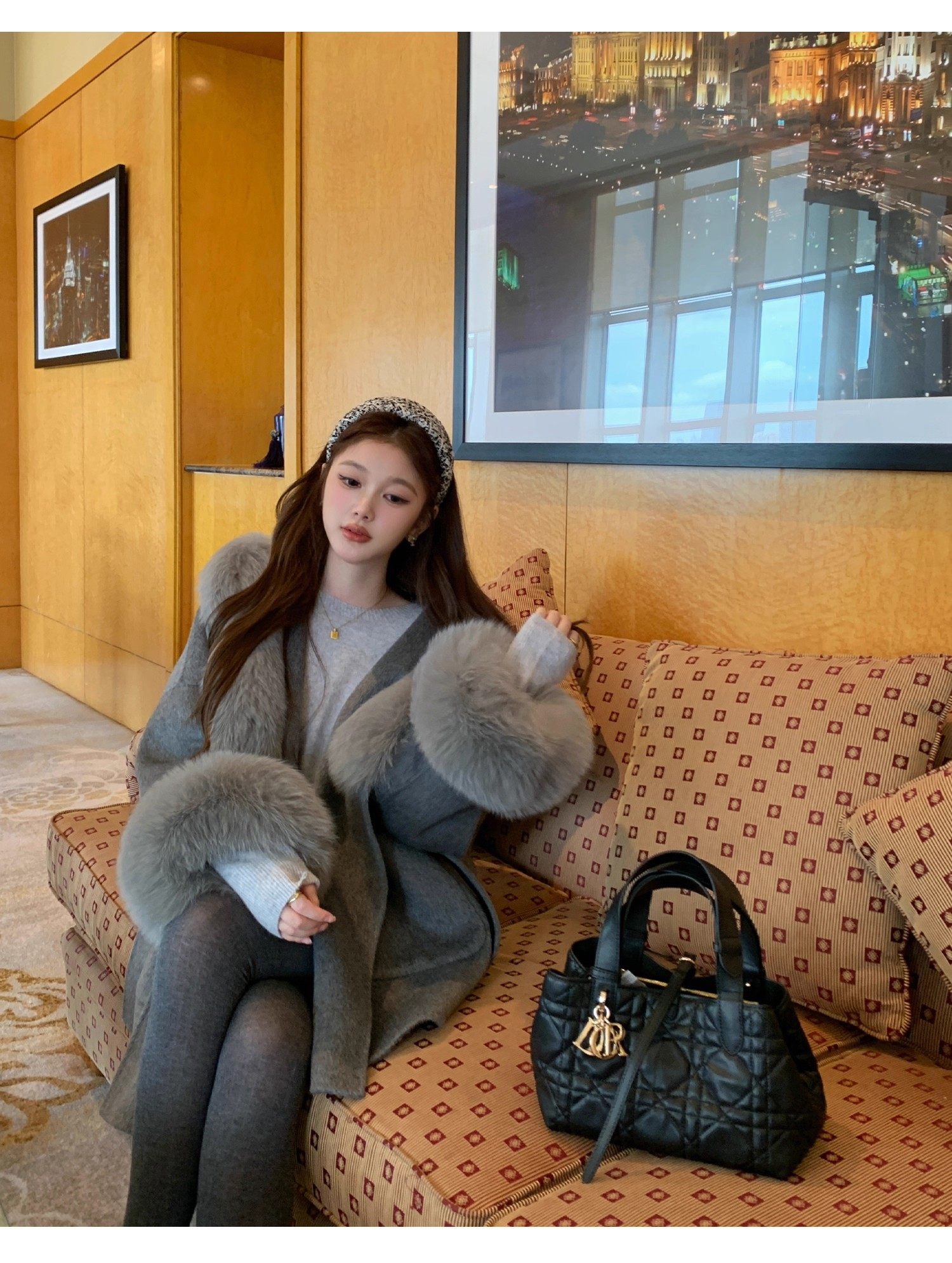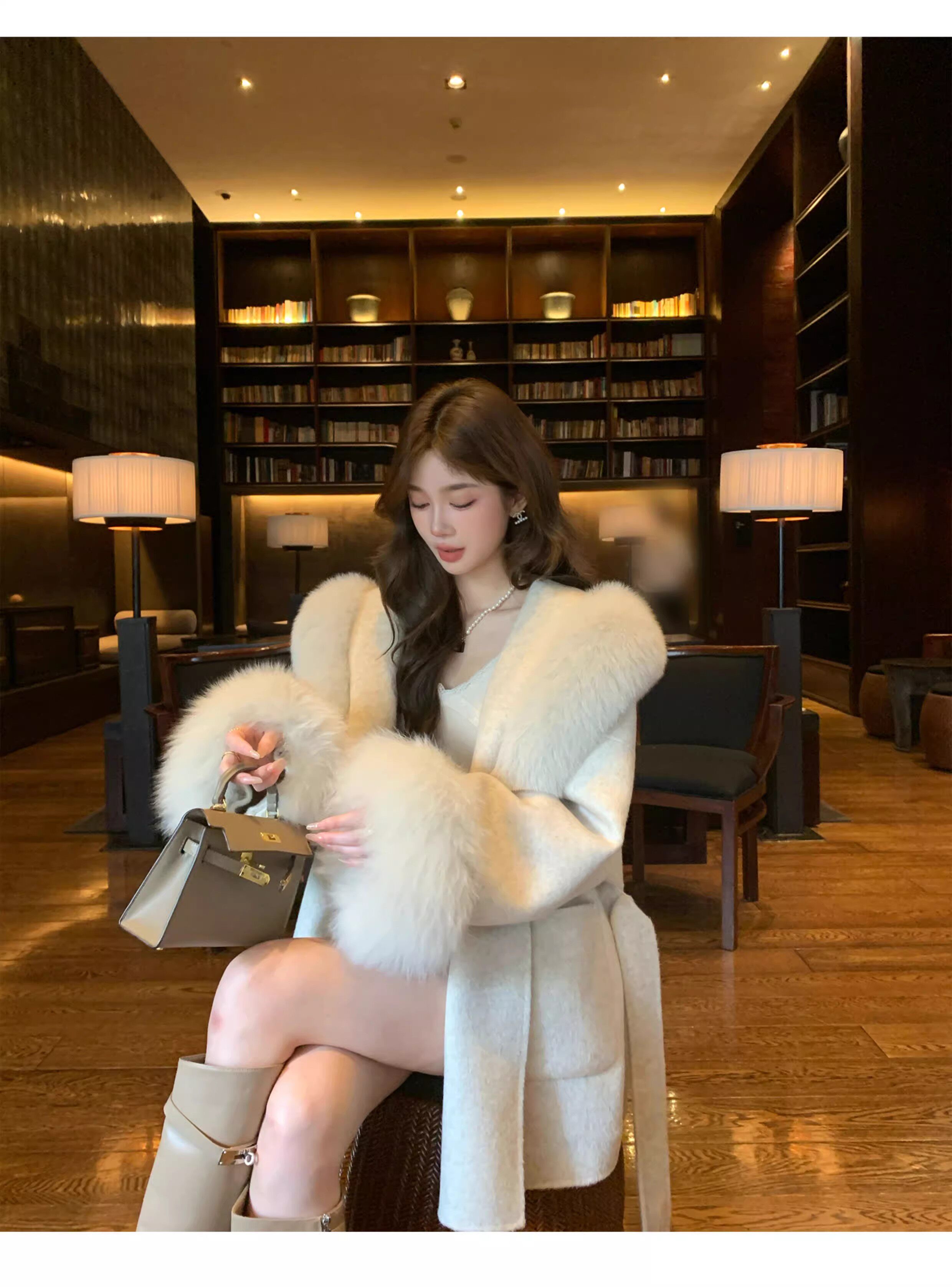 Extra Large Fox Fur Collar Double-Sided Cashmere Coat for Women 2025 Winter New Style Hooded Fur Woolen Coat