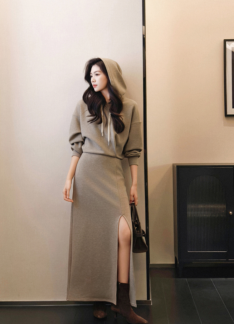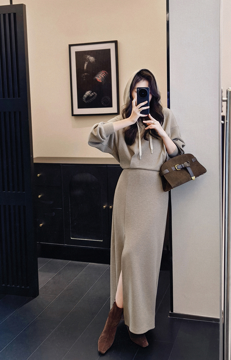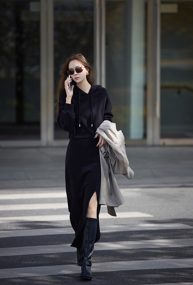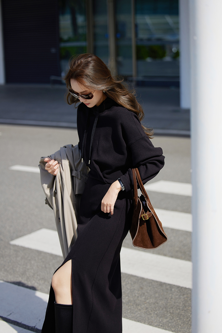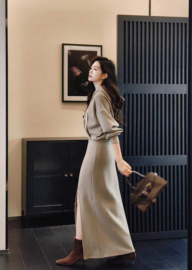 Meiyang Champagne Dress Elegant and Simple~ Double-Sided Velvet Knit Sweater Skirt [Medium]