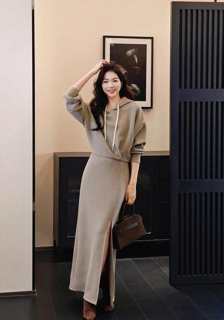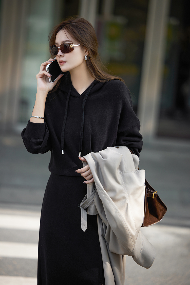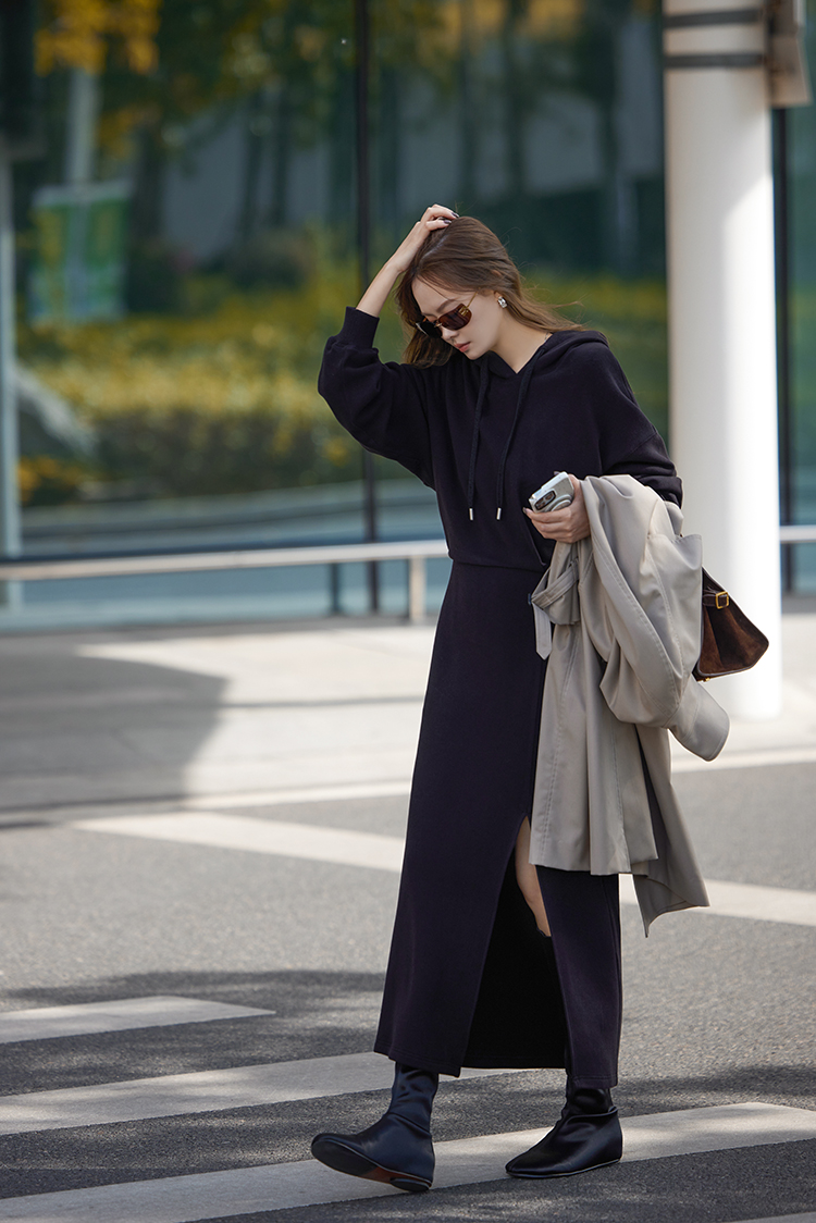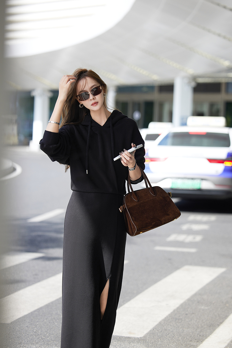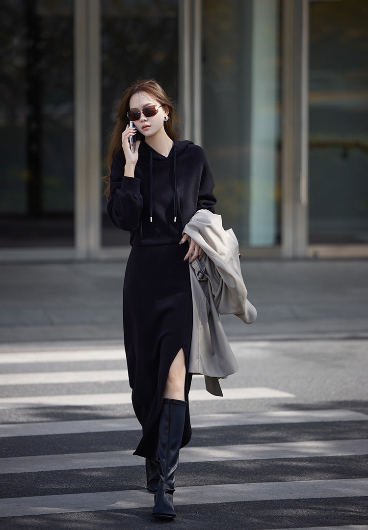 Meiyang Champagne Dress Elegant and Simple~ Double-Sided Velvet Knit Sweater Skirt [Medium]