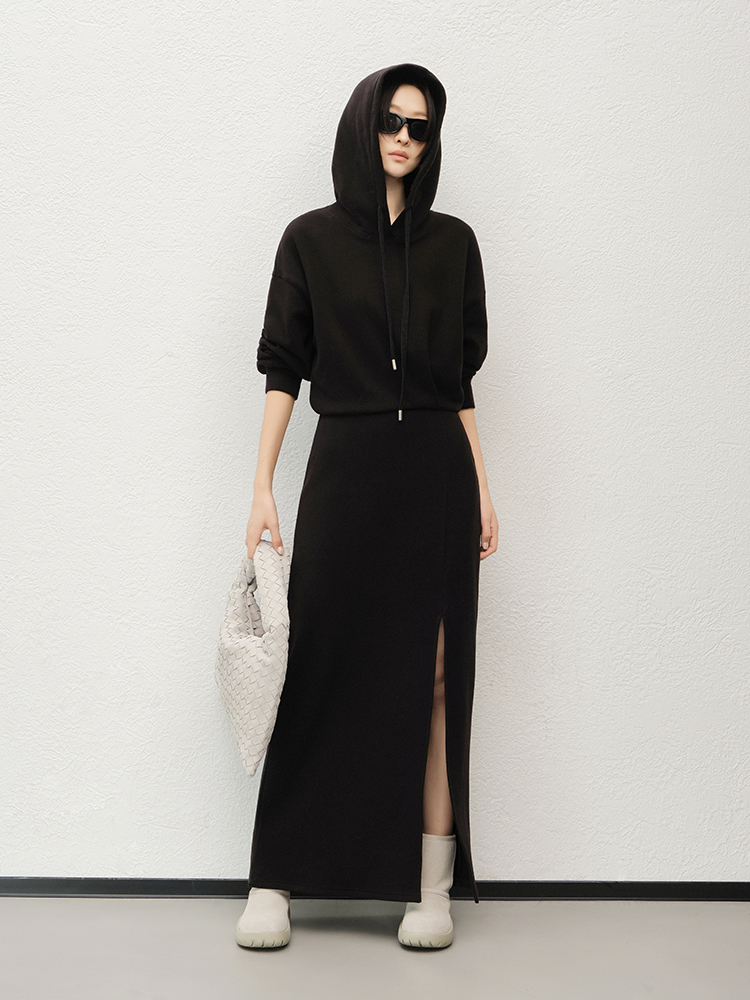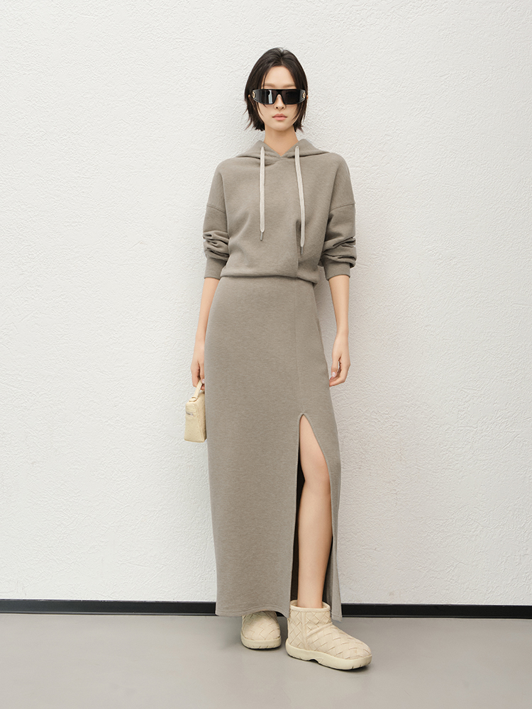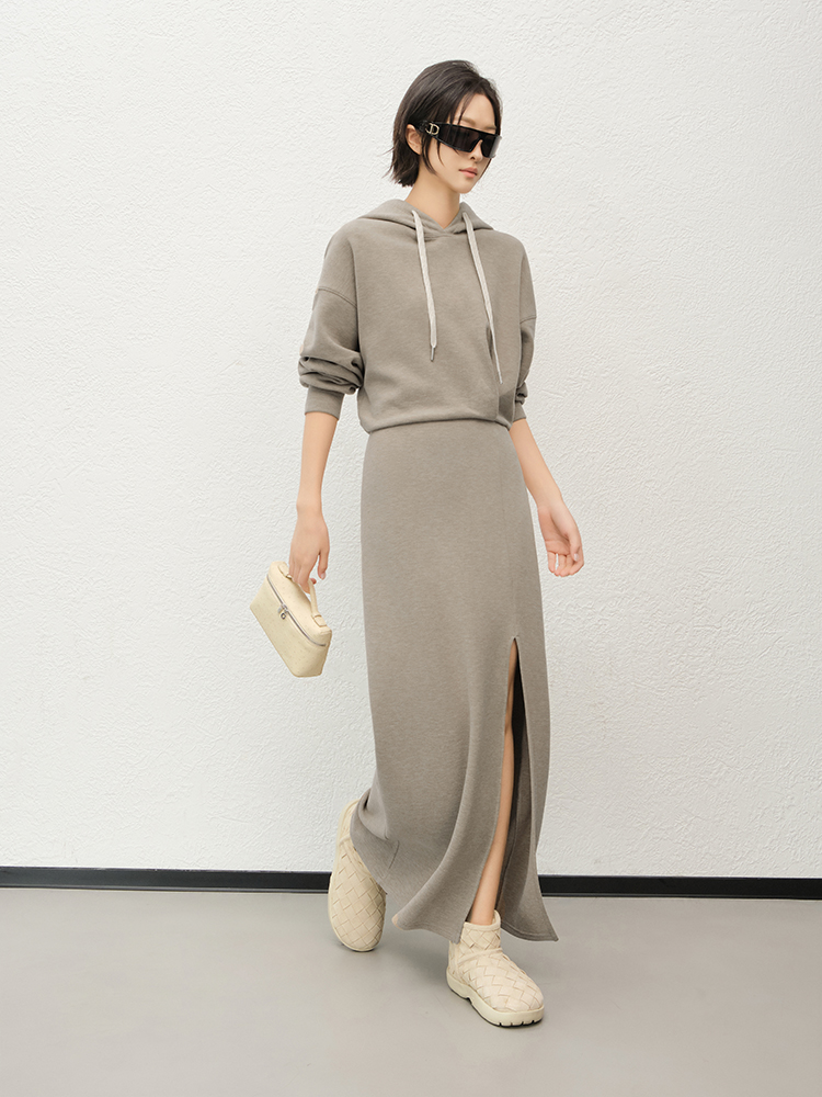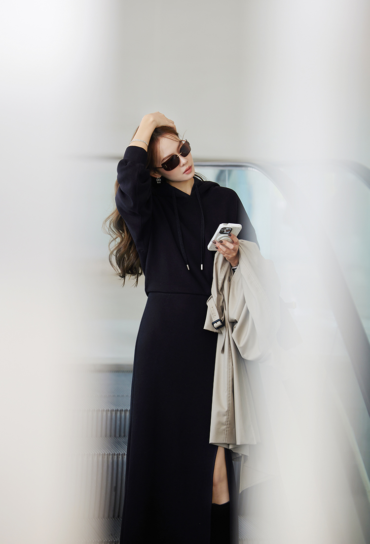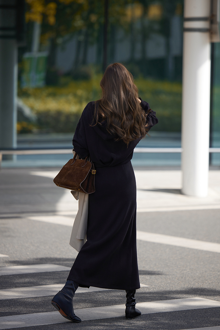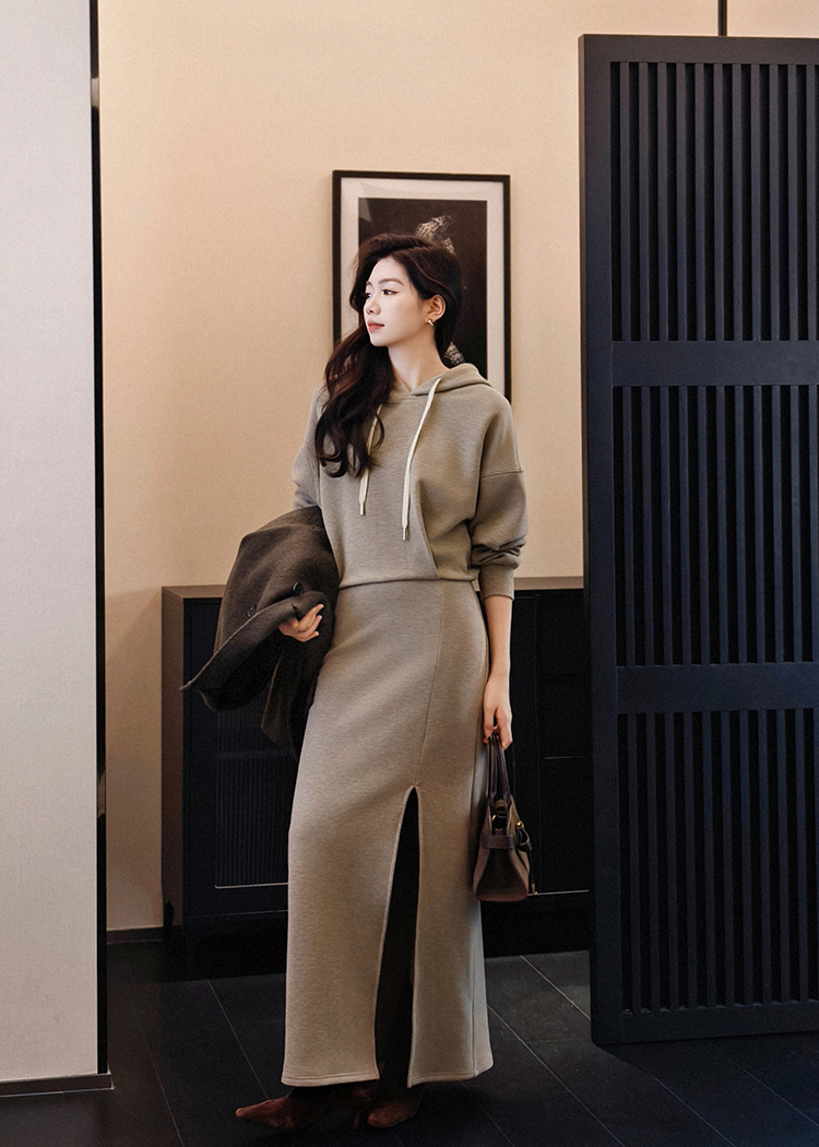 Meiyang Champagne Dress Elegant and Simple~ Double-Sided Velvet Knit Sweater Skirt [Medium]