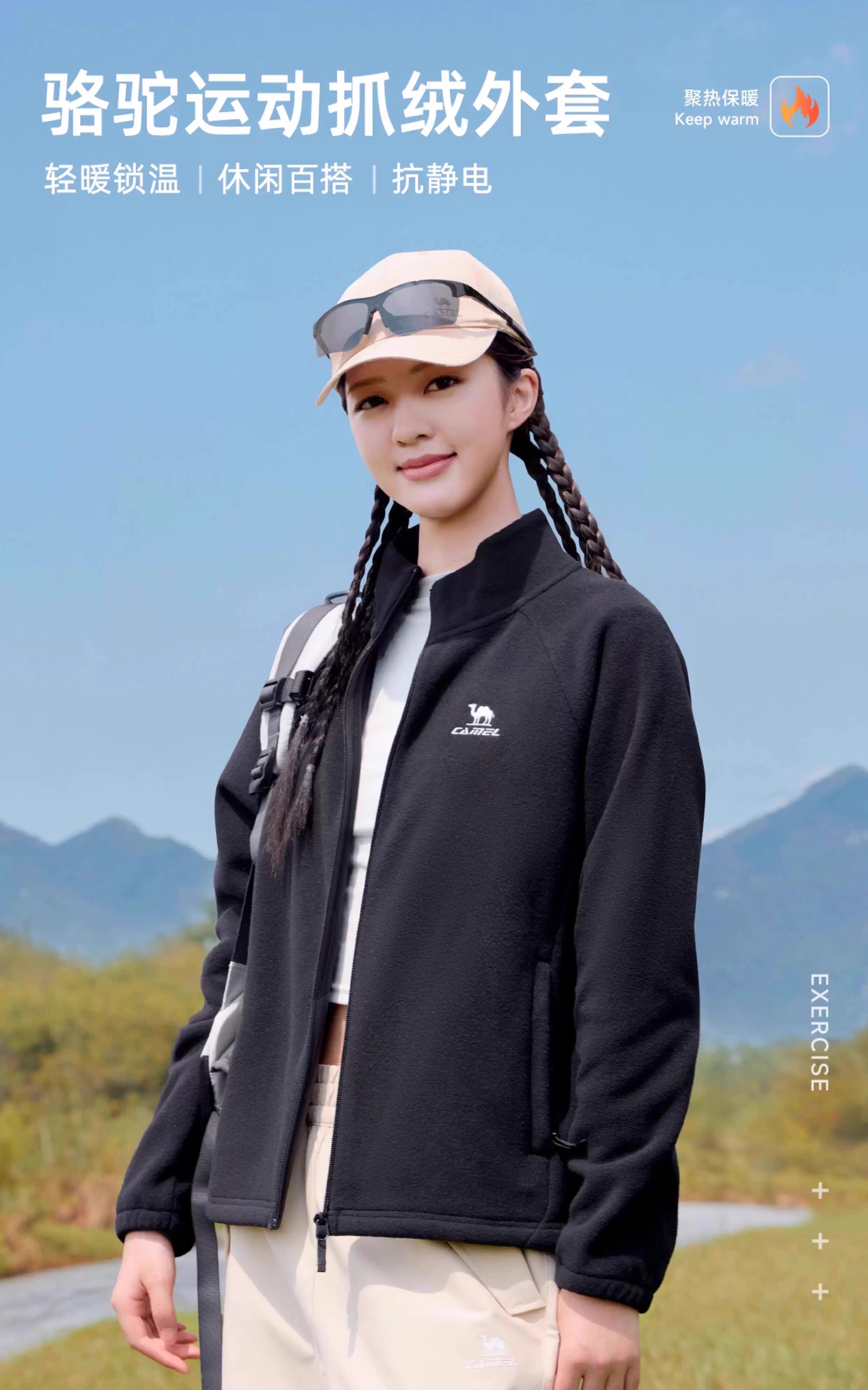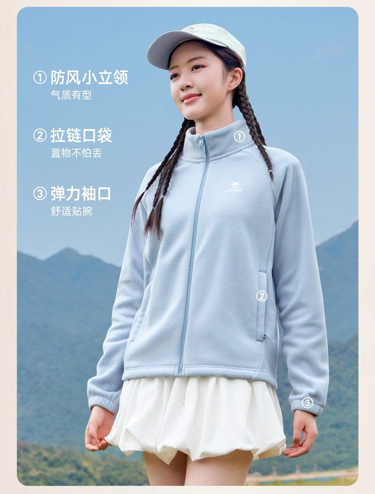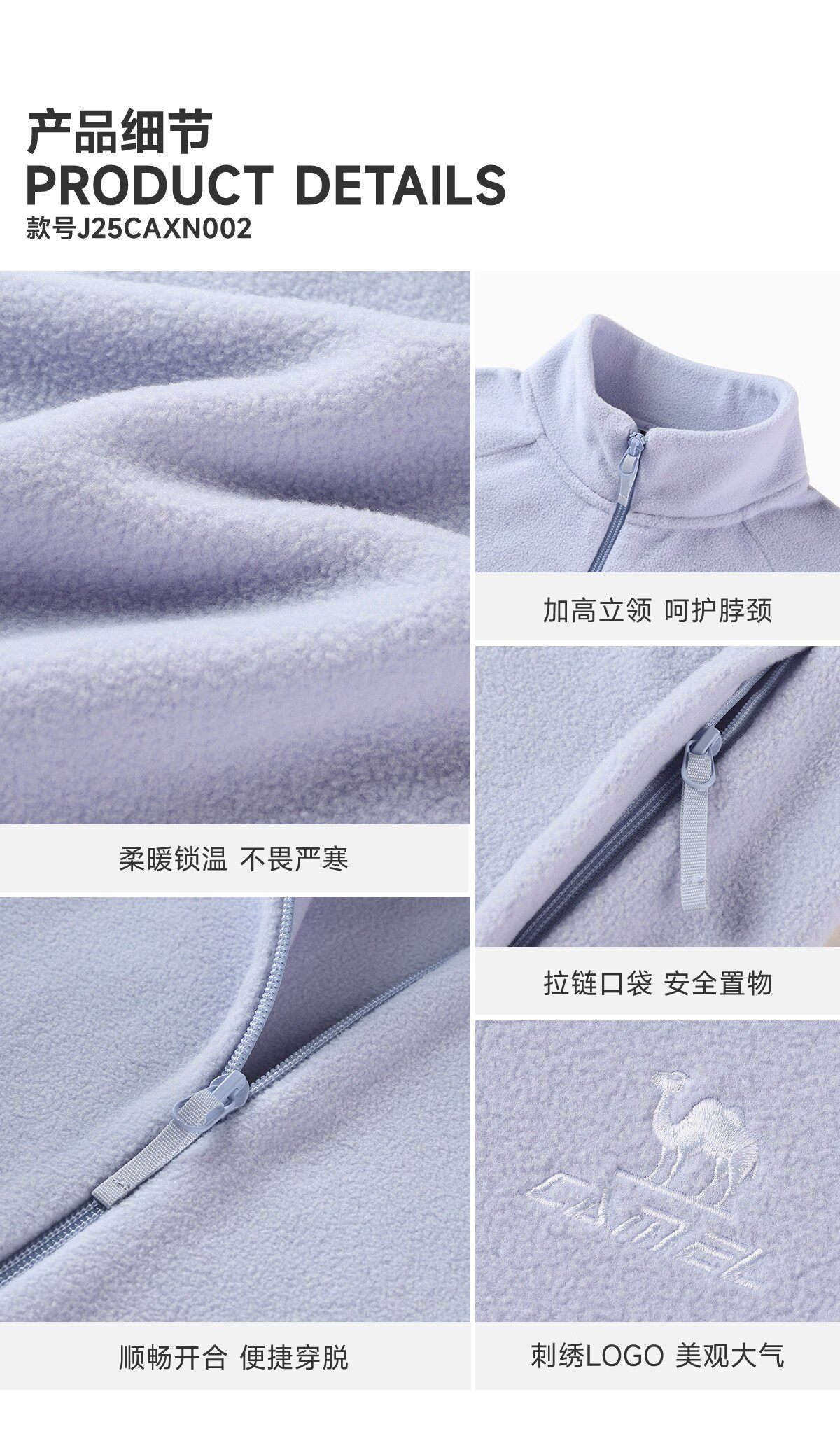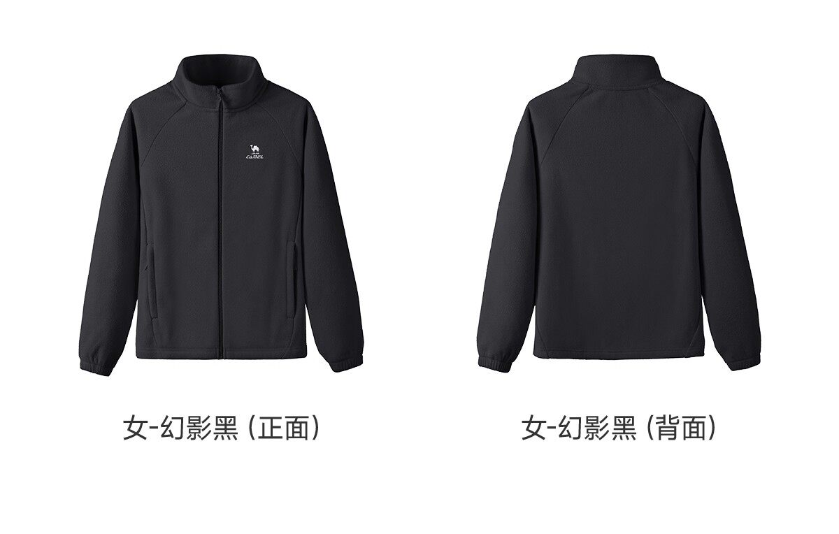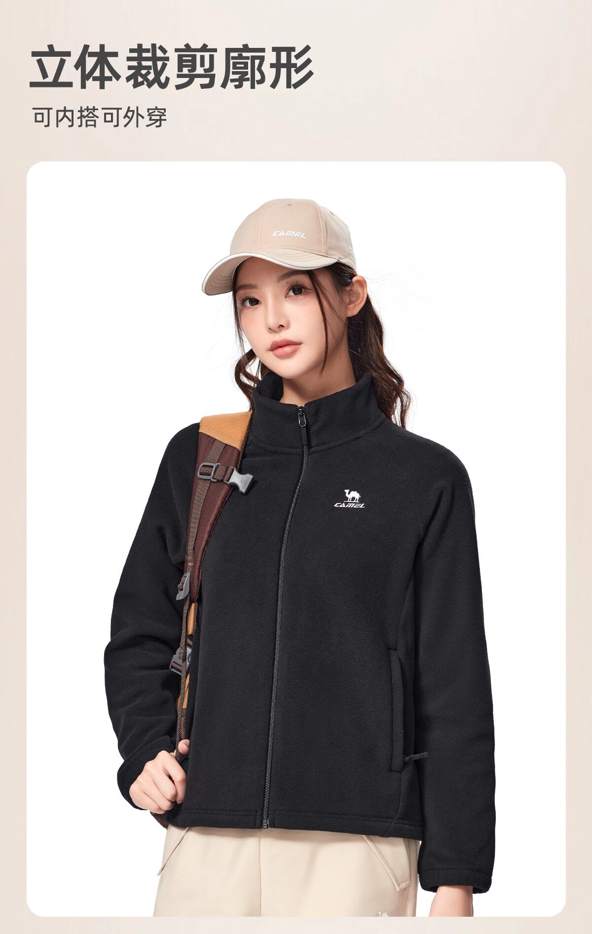 Camel Sports Fleece Stand-Up Collar Jacket for Women, Autumn and Winter Thin Fleece Warm Inner Layer Cardigan Black Jacket