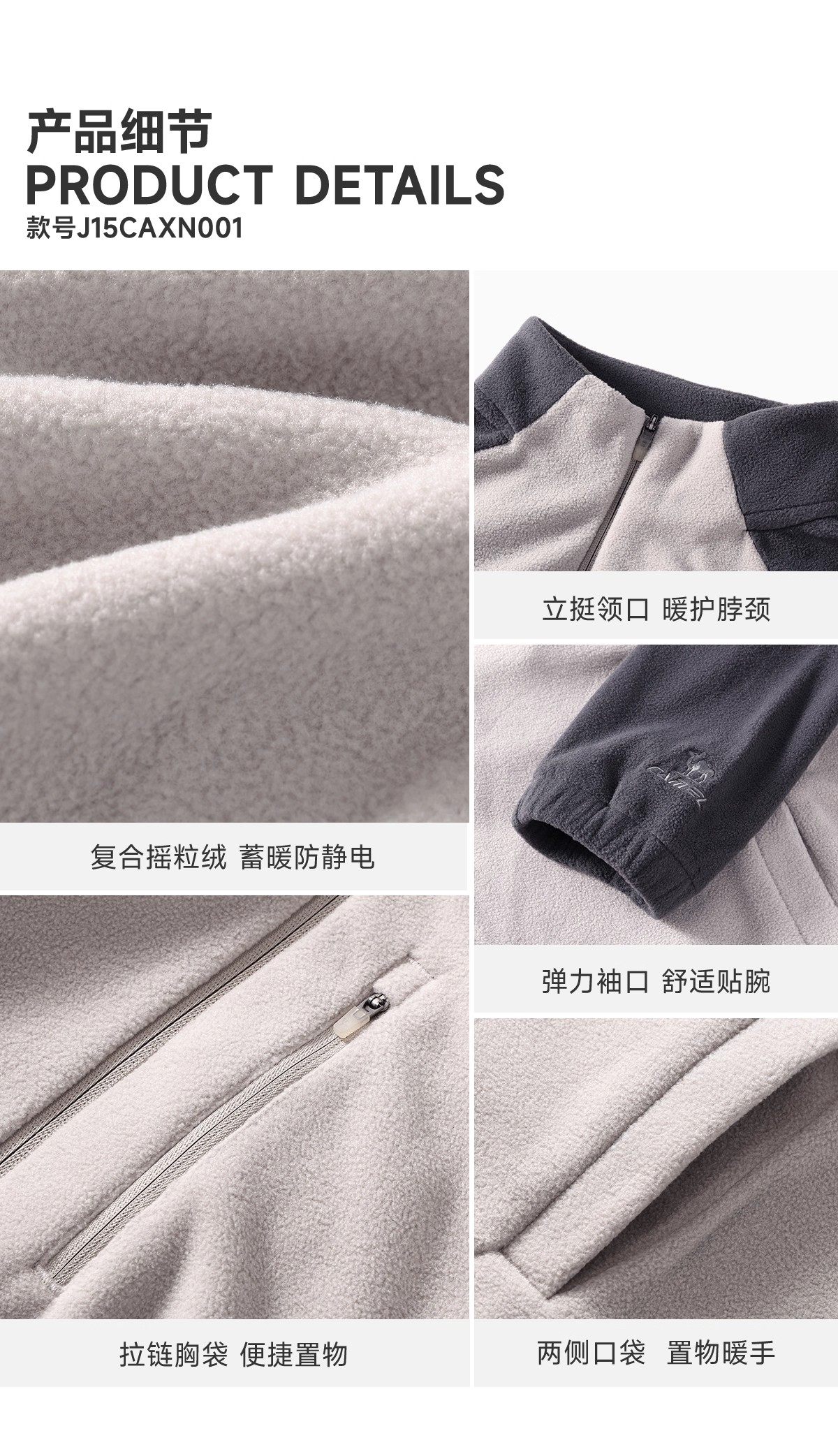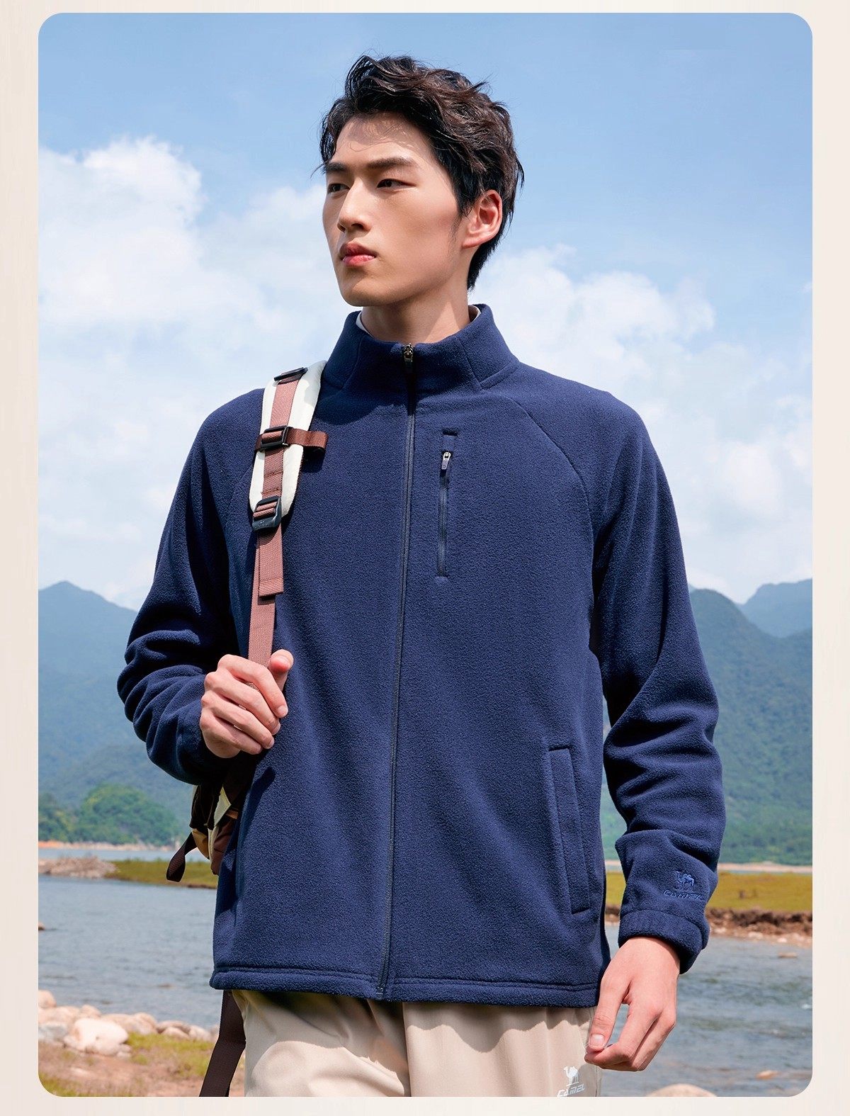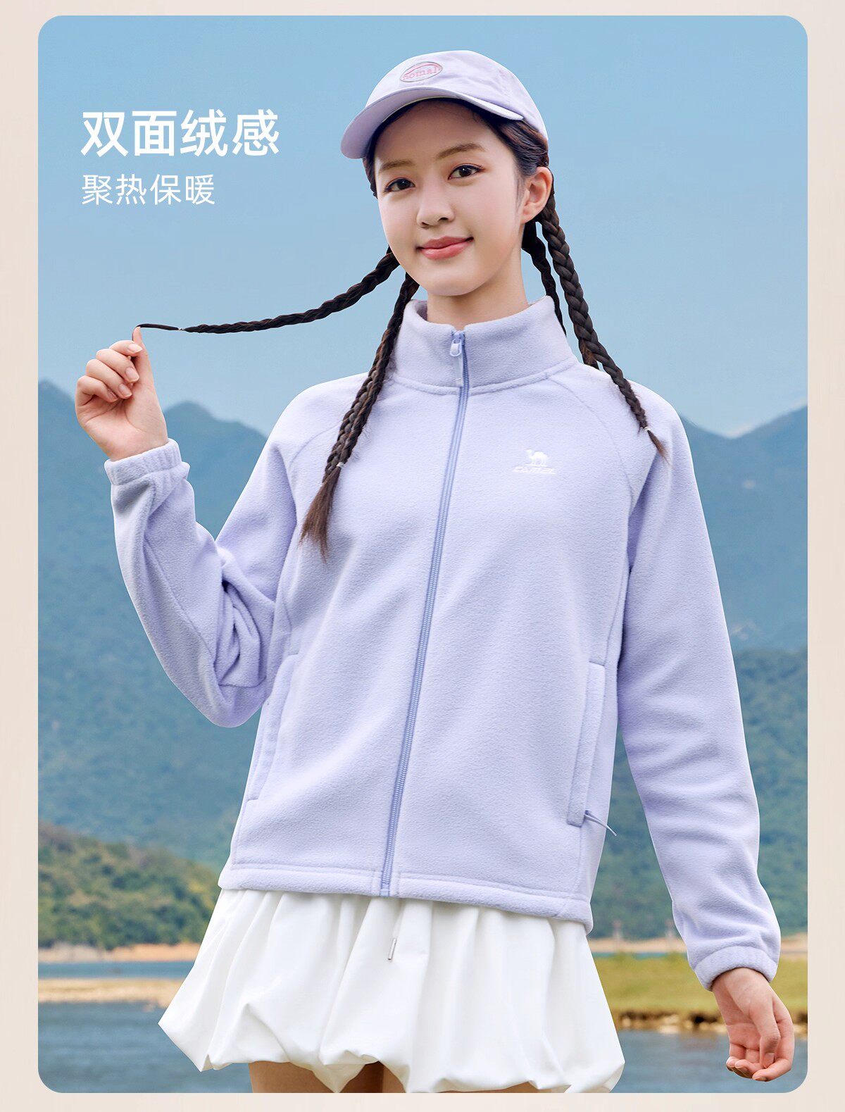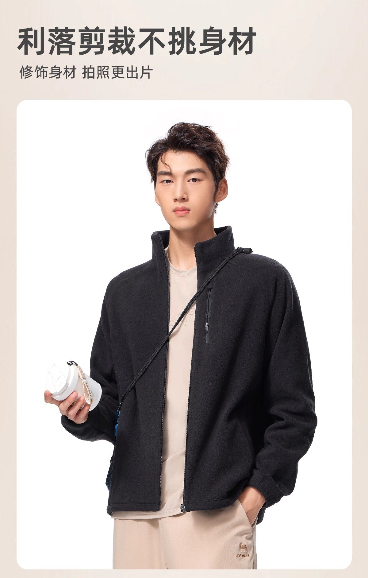 Camel Sports Fleece Stand-Up Collar Jacket for Women, Autumn and Winter Thin Fleece Warm Inner Layer Cardigan Black Jacket