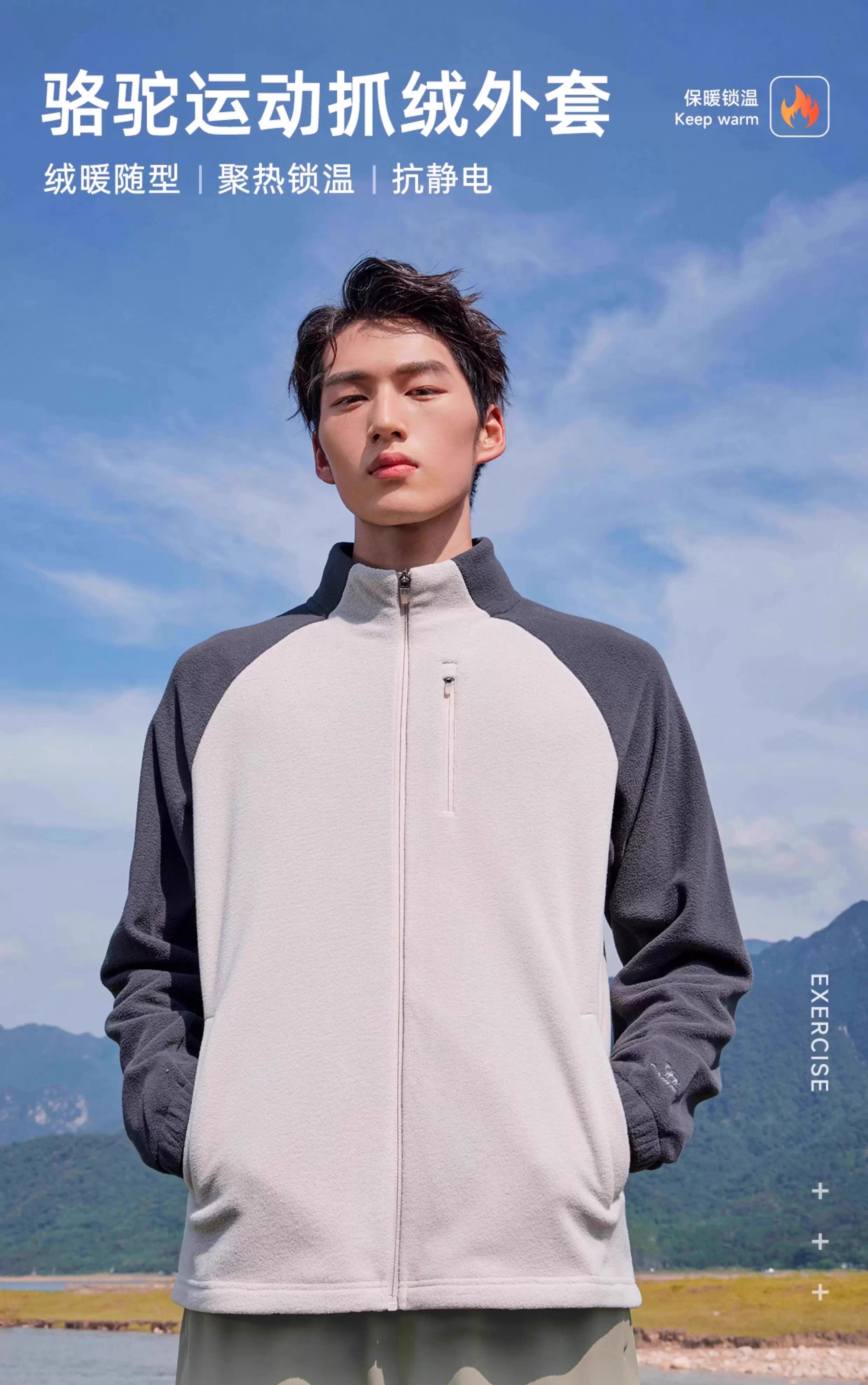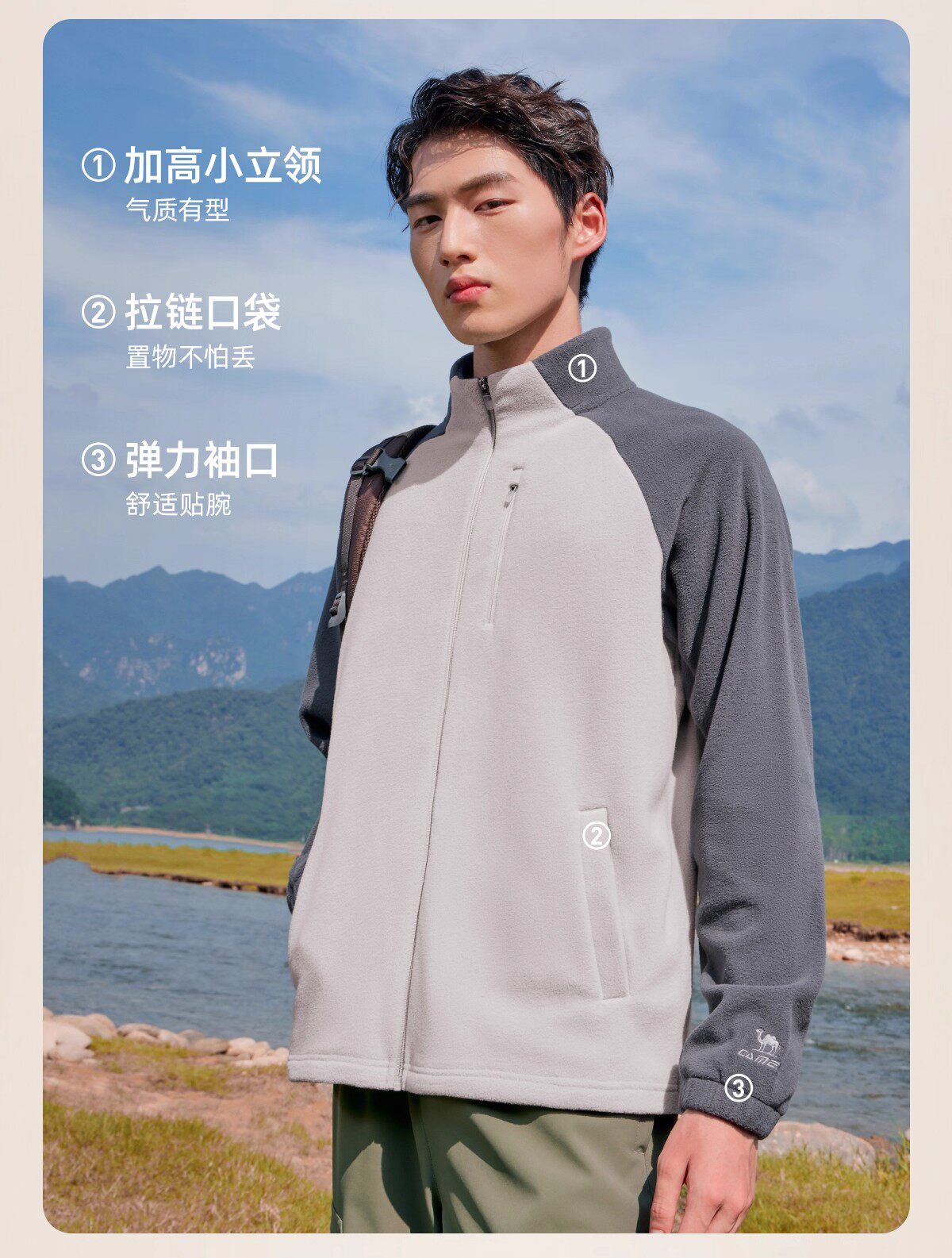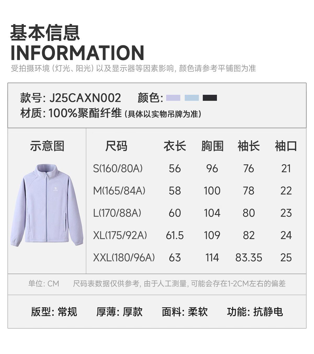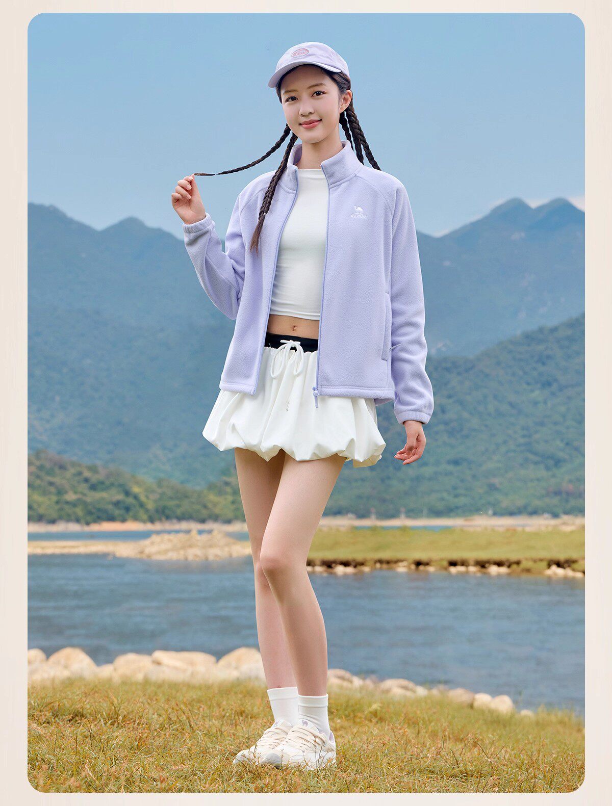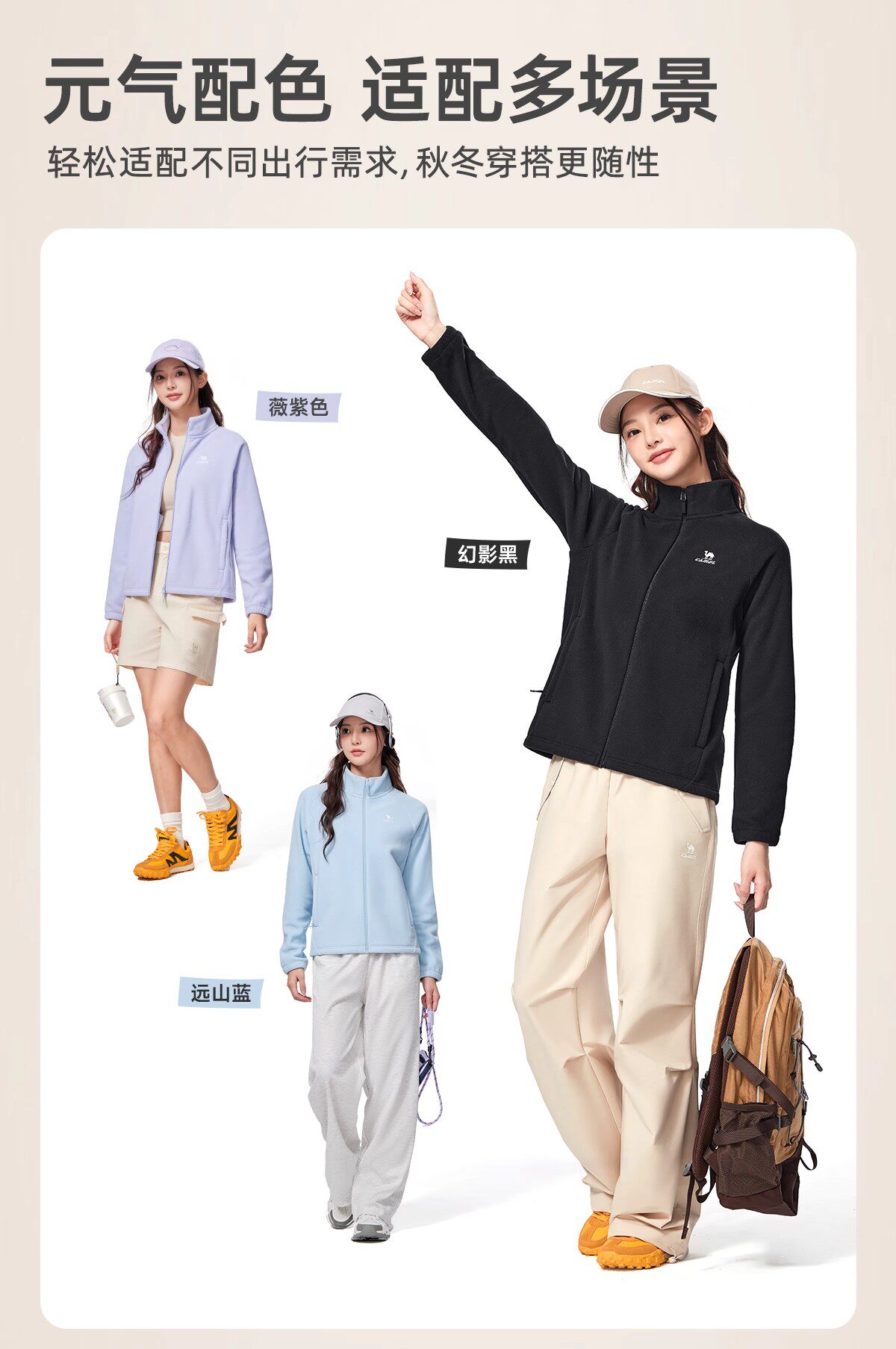Camel Sports Fleece Stand-Up Collar Jacket for Women, Autumn and Winter Thin Fleece Warm Inner Layer Cardigan Black Jacket
