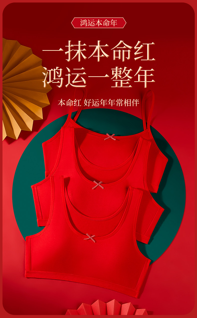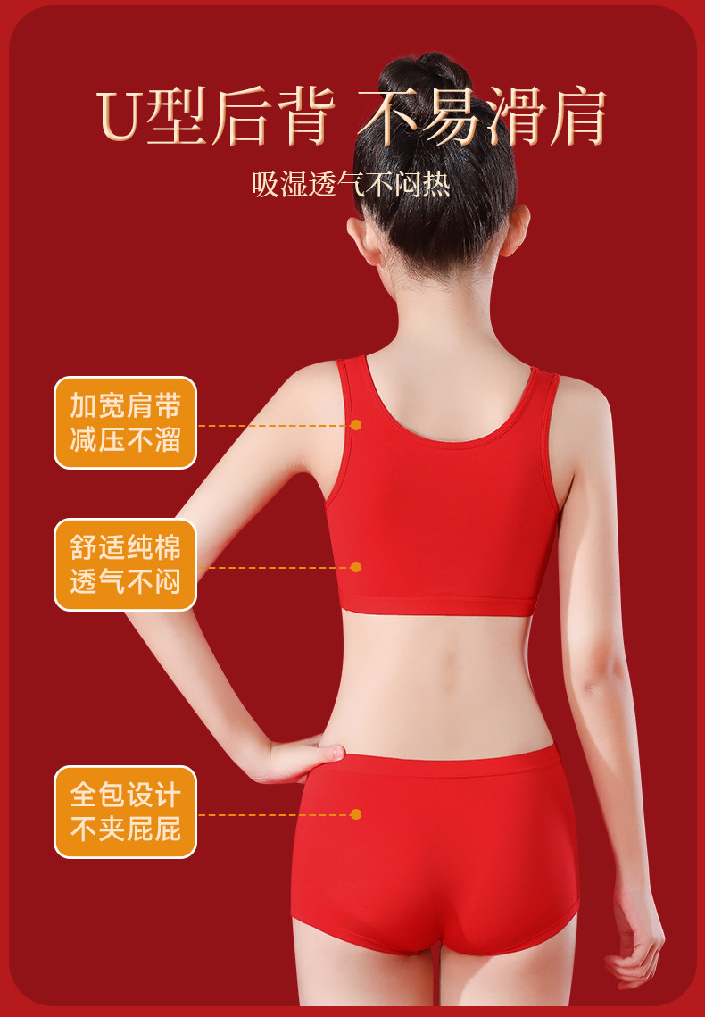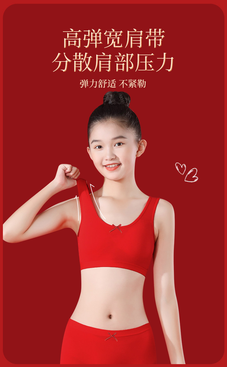 Girls' Zodiac Year Set 12-Year-Old Development Stage Vest 2026 Year of the Horse Red Underwear Children's Bra for Girls