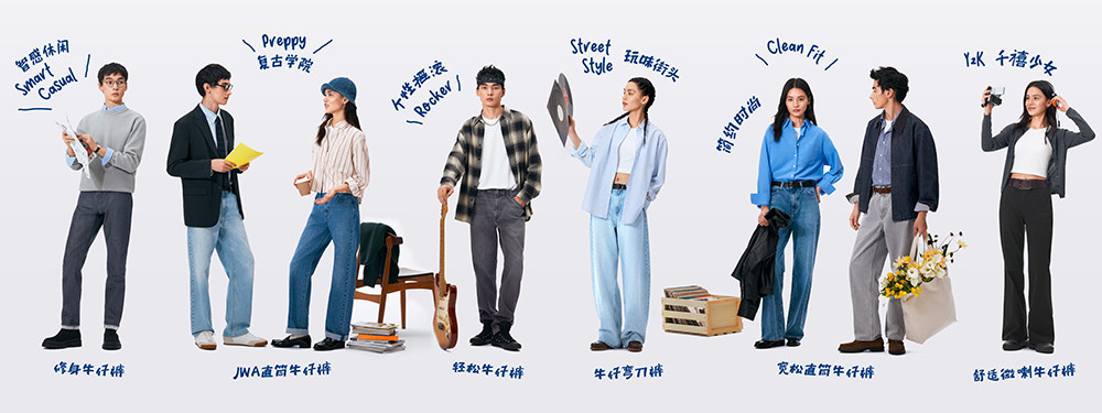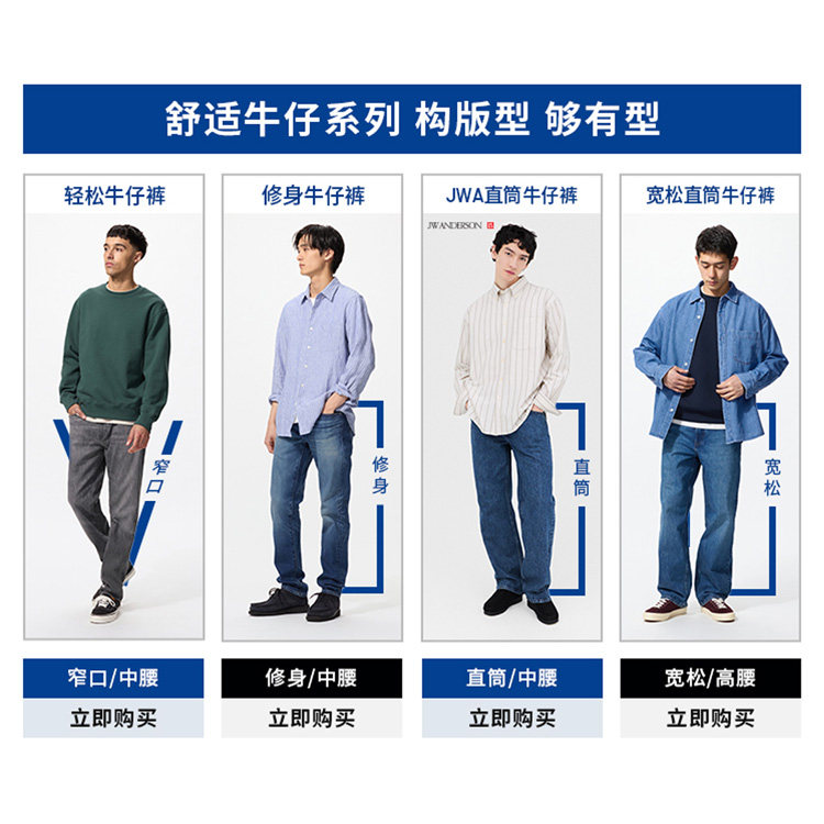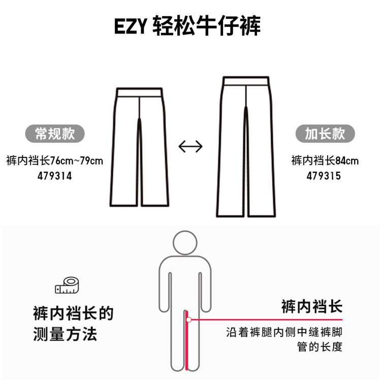 Uniqlo Men's and Women's Ezy Denim Jeans Washed Product Stretch Pants 479314