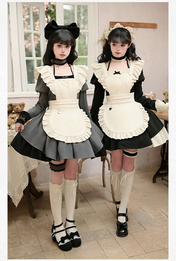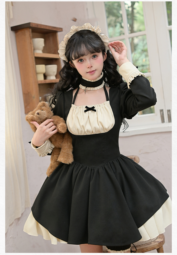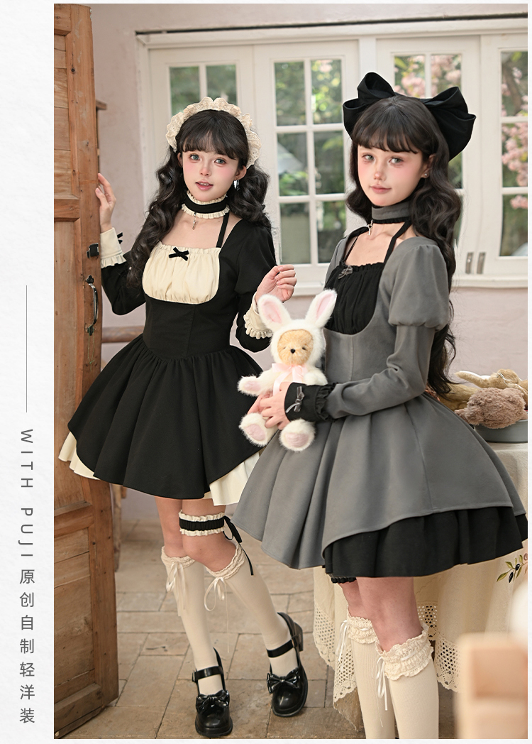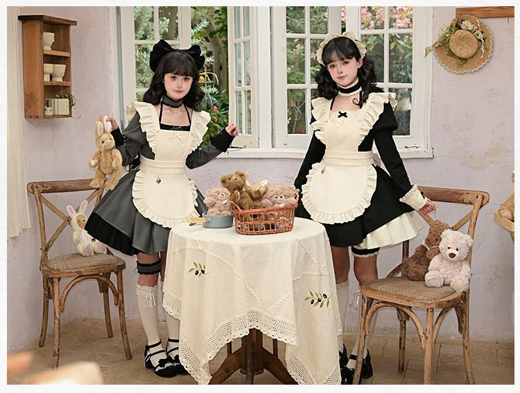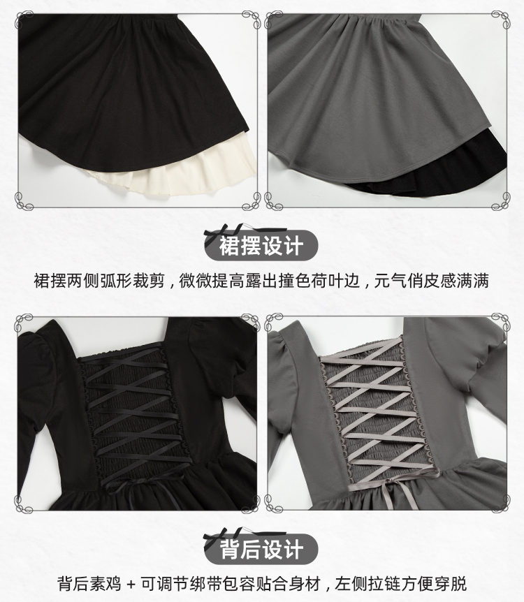 【Suki】Withpuji Original Design Improved Square-Neck Ruffled Maid Outfit Twinset Autumn and Winter Lolita