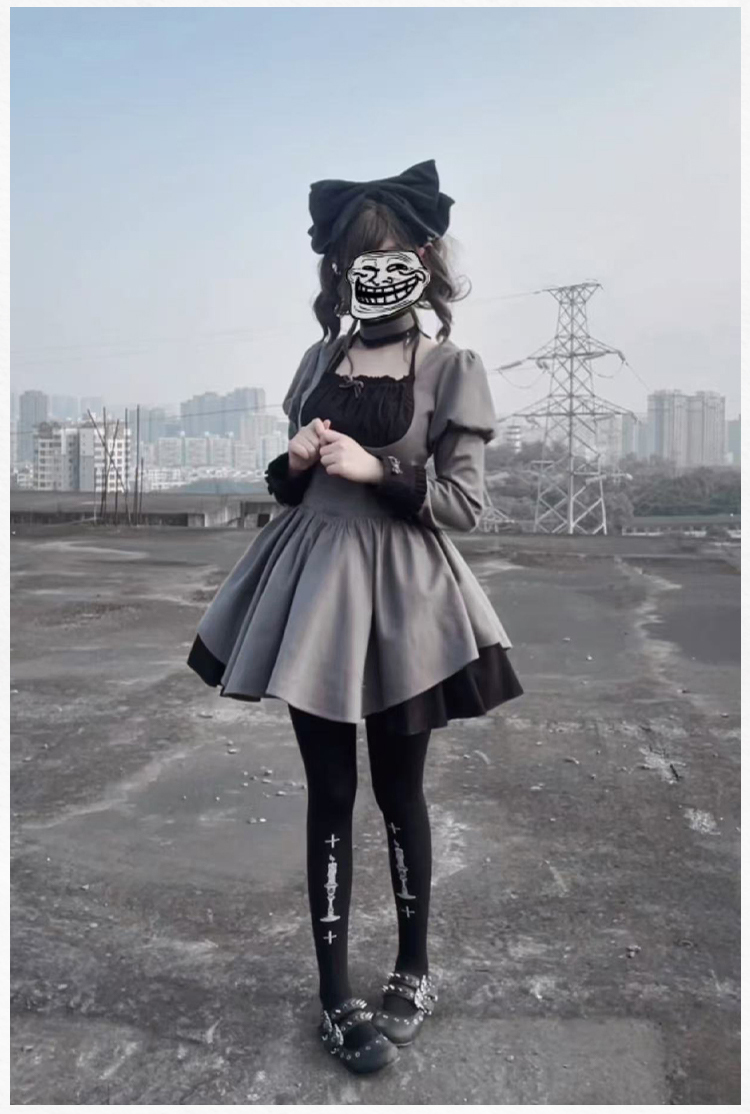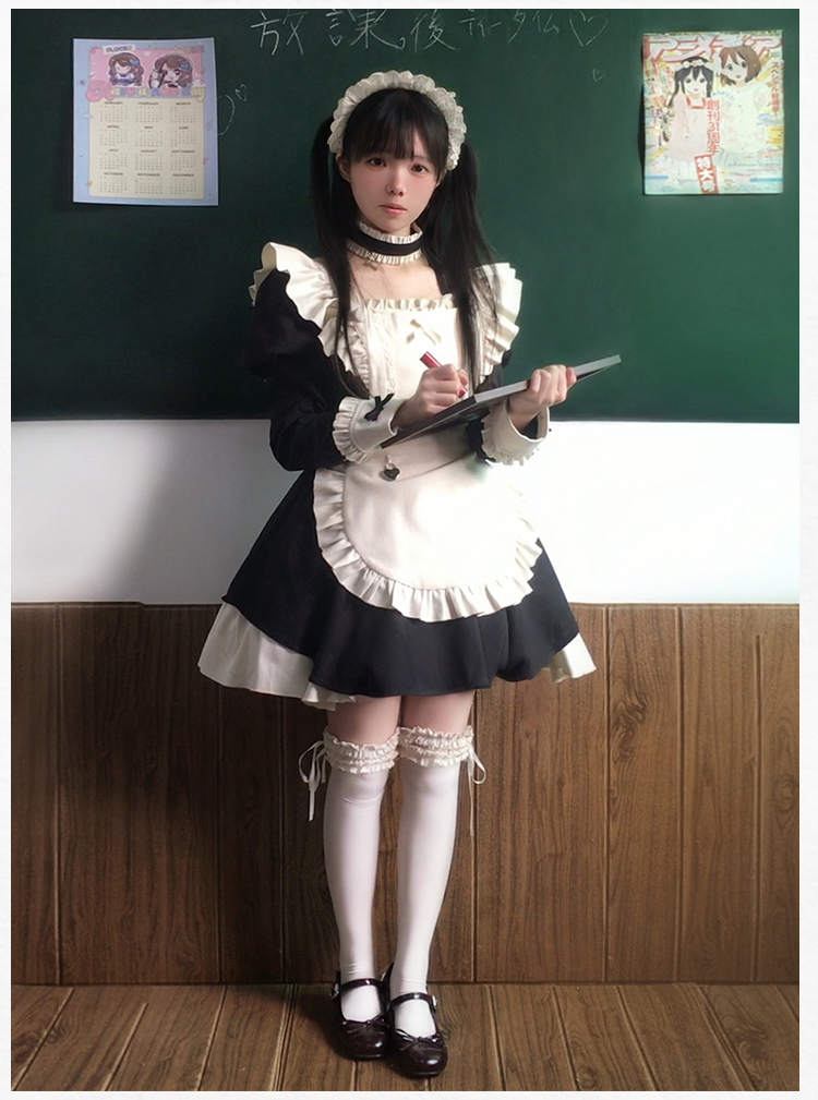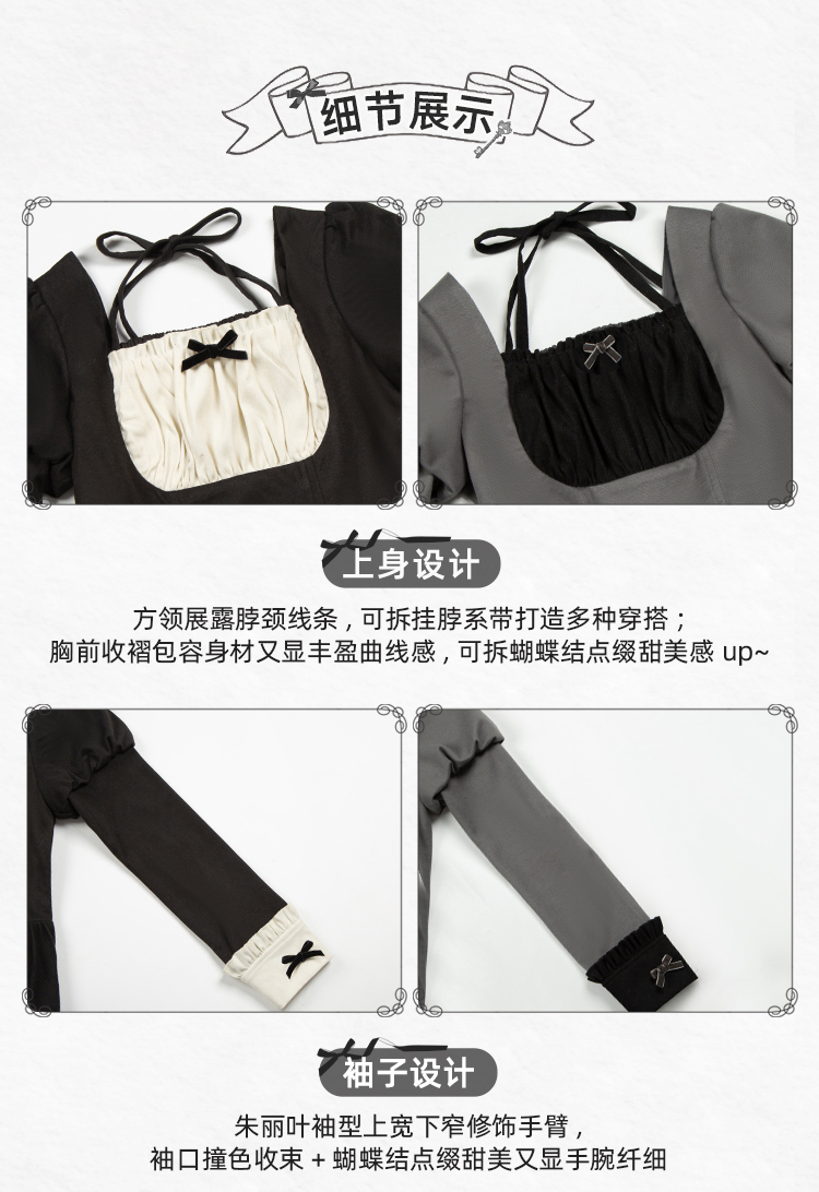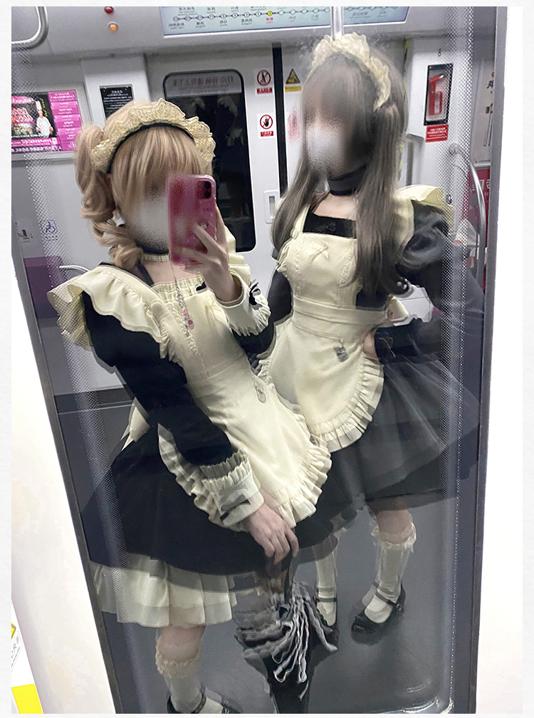 【Suki】Withpuji Original Design Improved Square-Neck Ruffled Maid Outfit Twinset Autumn and Winter Lolita