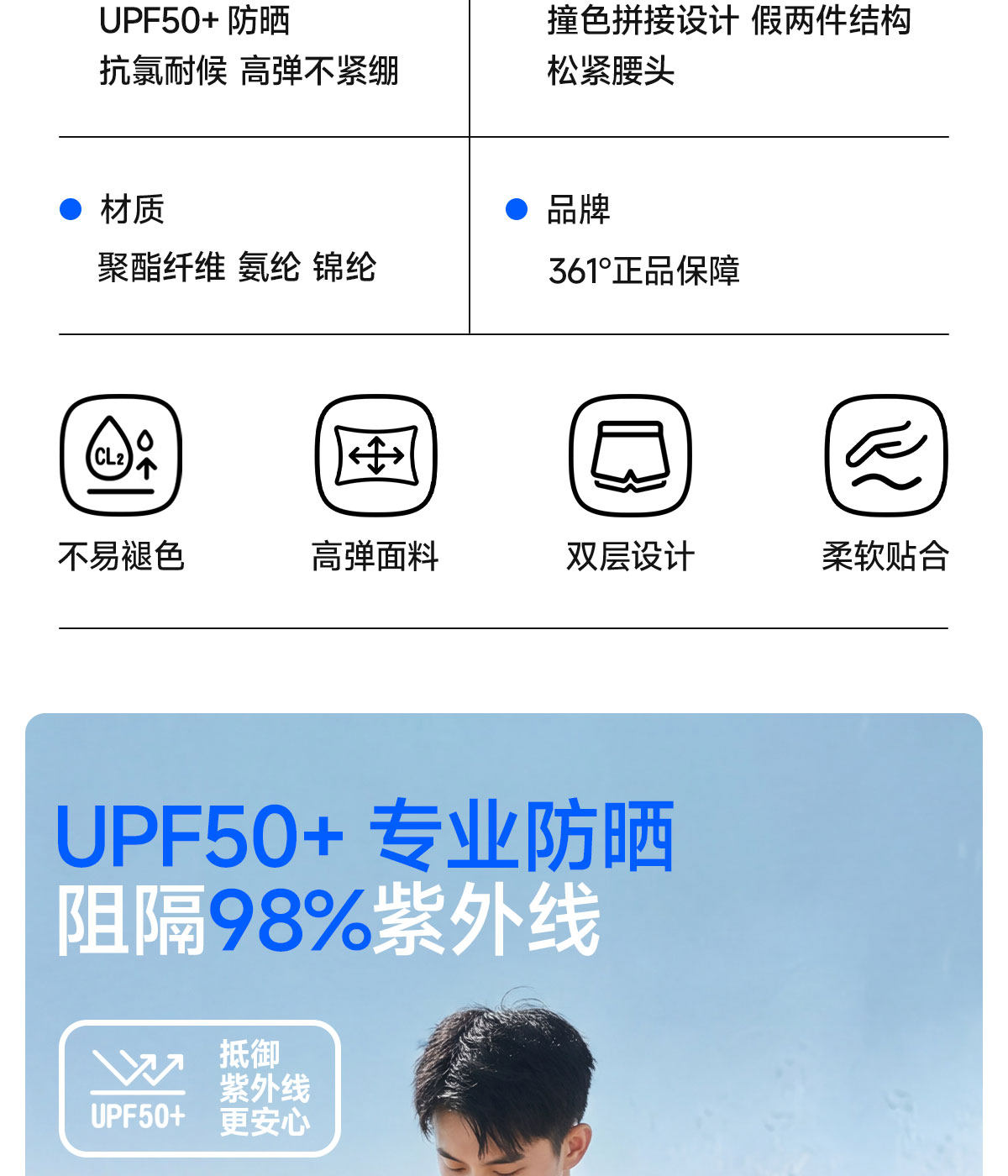361 Youth Swimsuit Men's Swim Trunks Set 2025 New Model Adult Boys Junior High School Students Hot Spring Bathing Suit