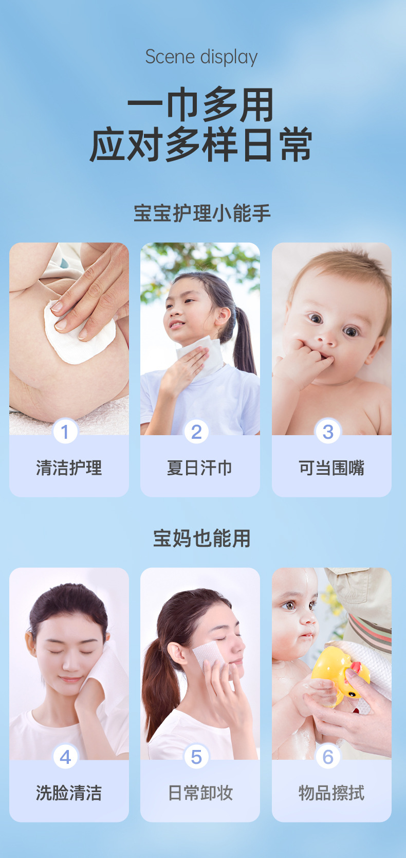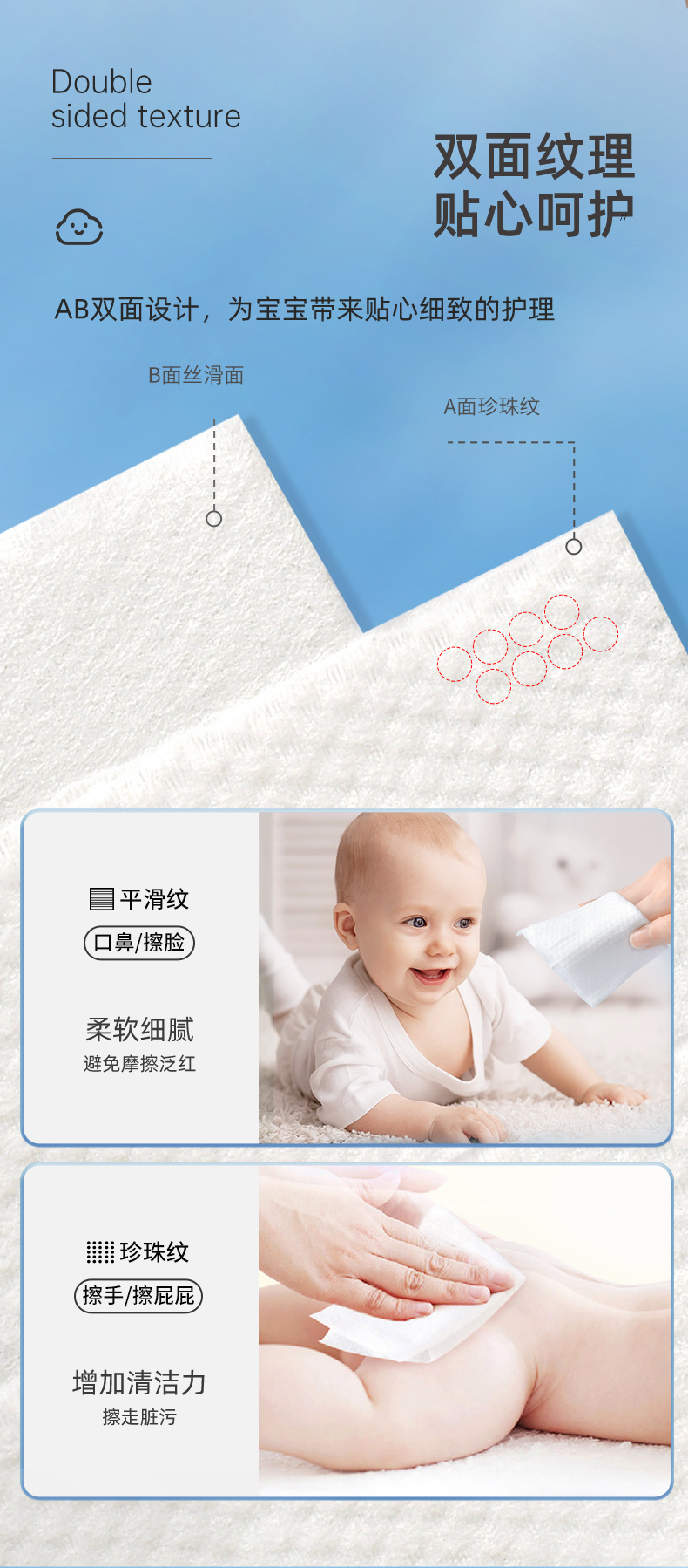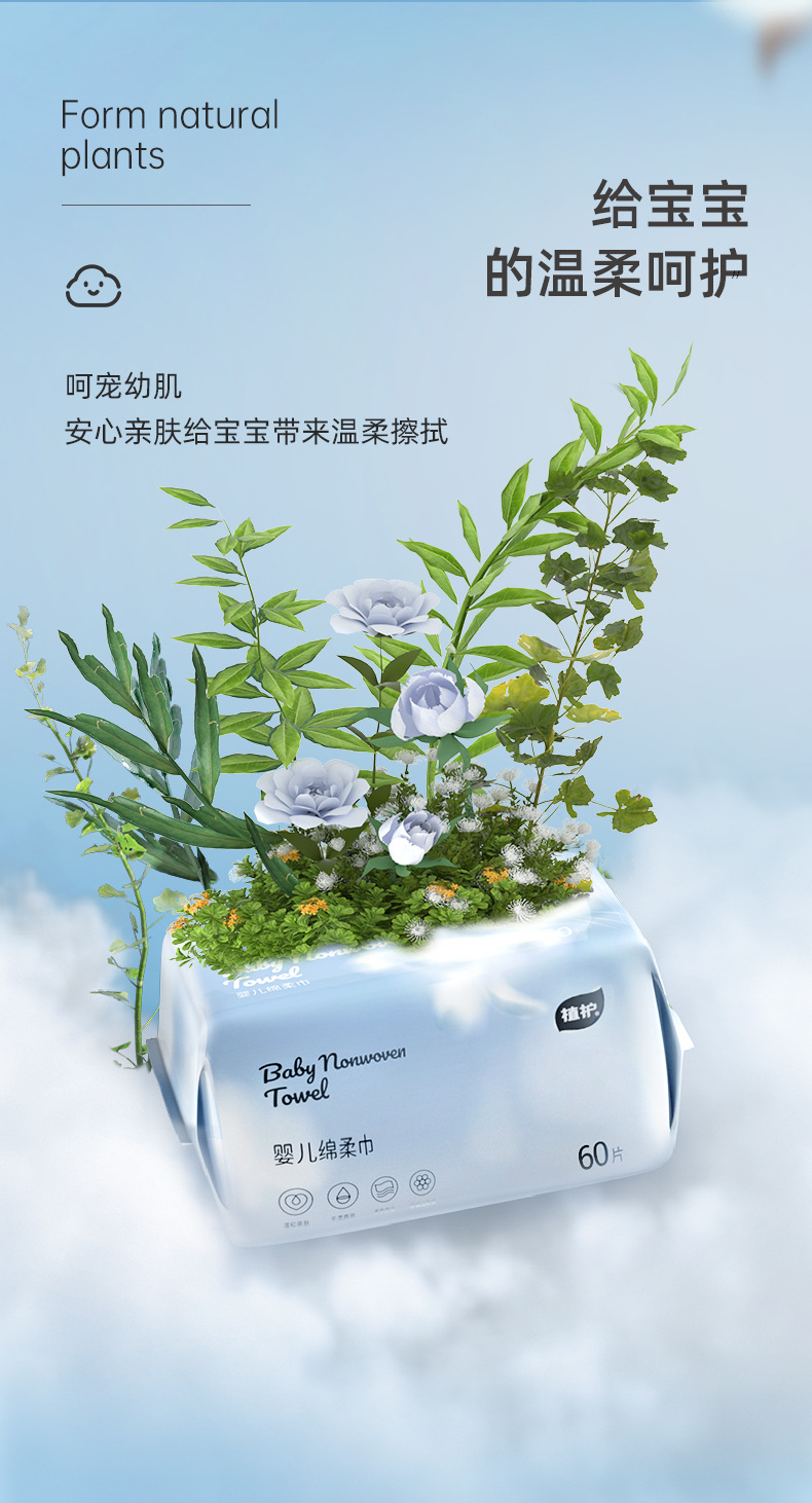 Plant-Based Soft Wipes for Babies, Dual-Use for Dry and Wet, Disposable Cleansing Wipes, Thickened Large Face Wipes