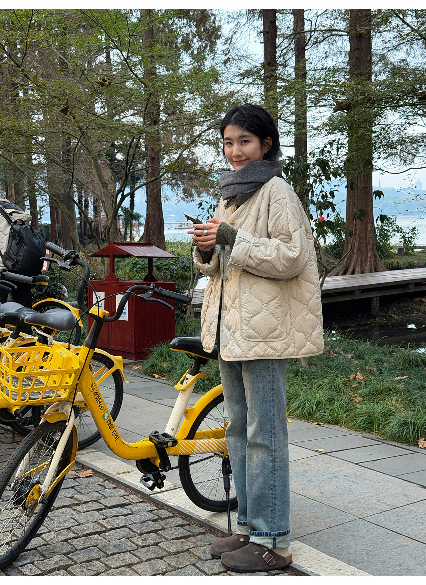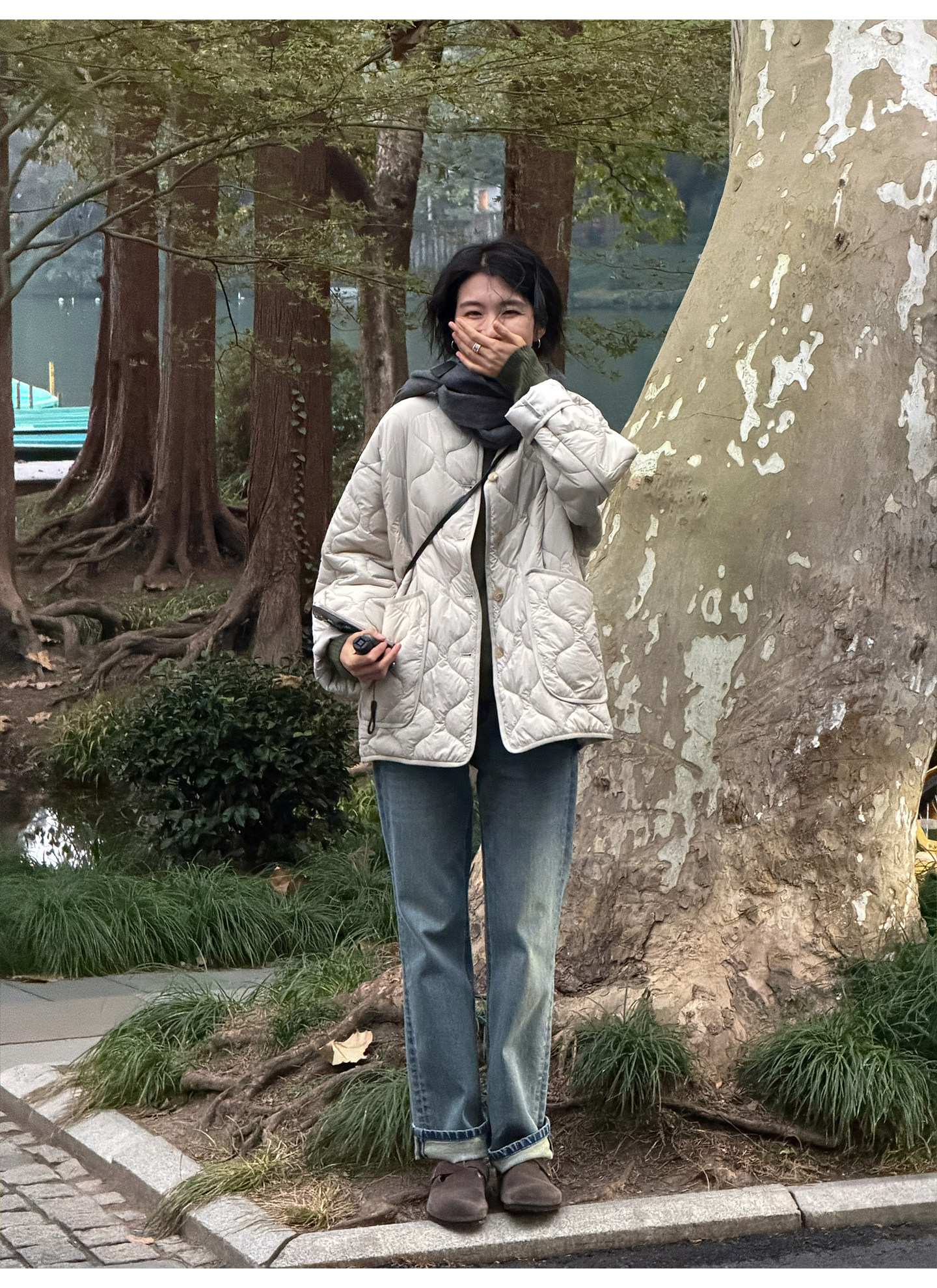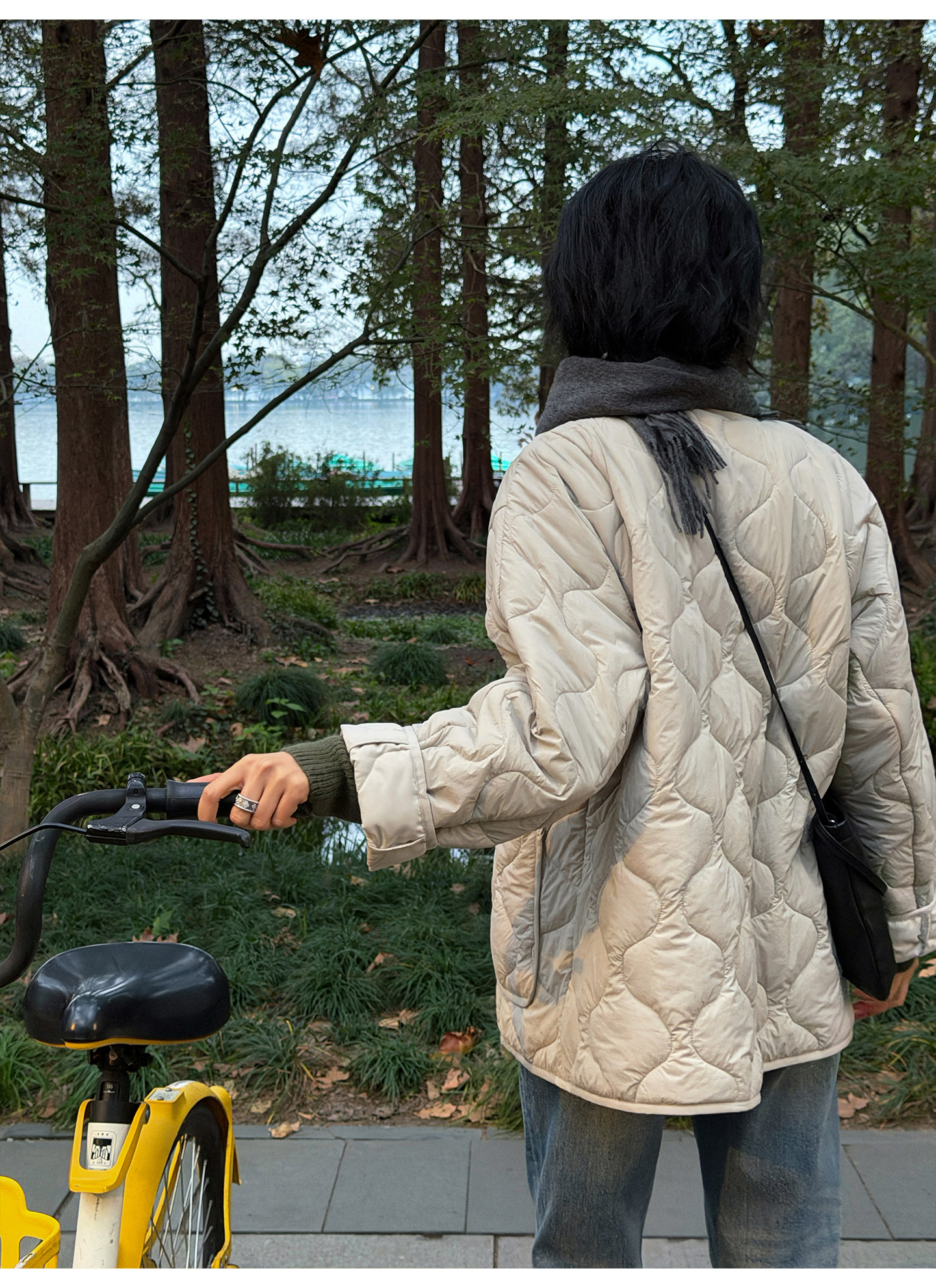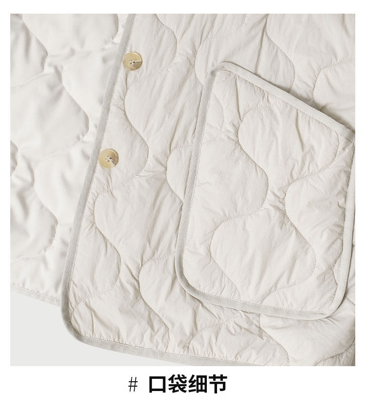 Langqing Apricot-Colored Quilted Padded Cotton Jacket 2026 New Early Spring Lightweight Warm Cotton Coat Round Neck Loose Jacket