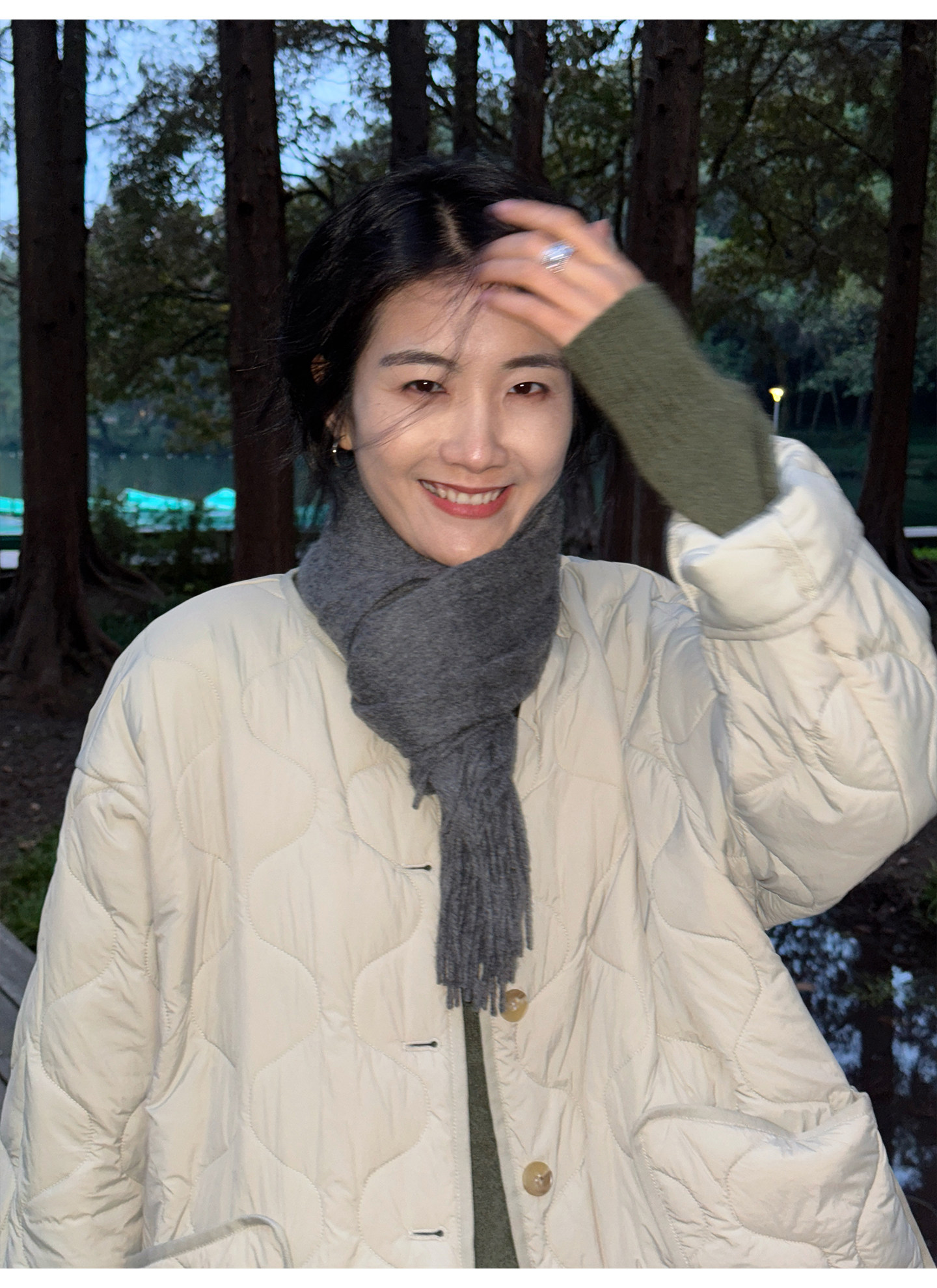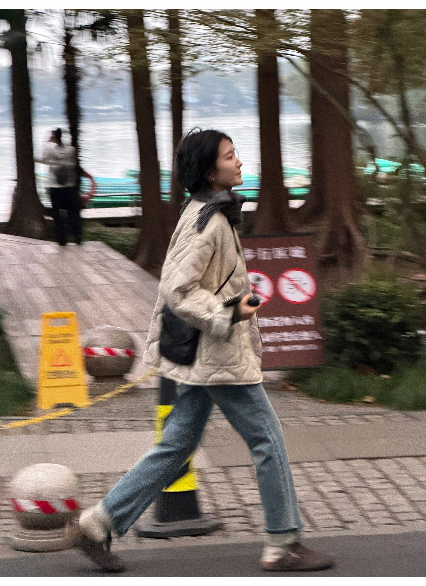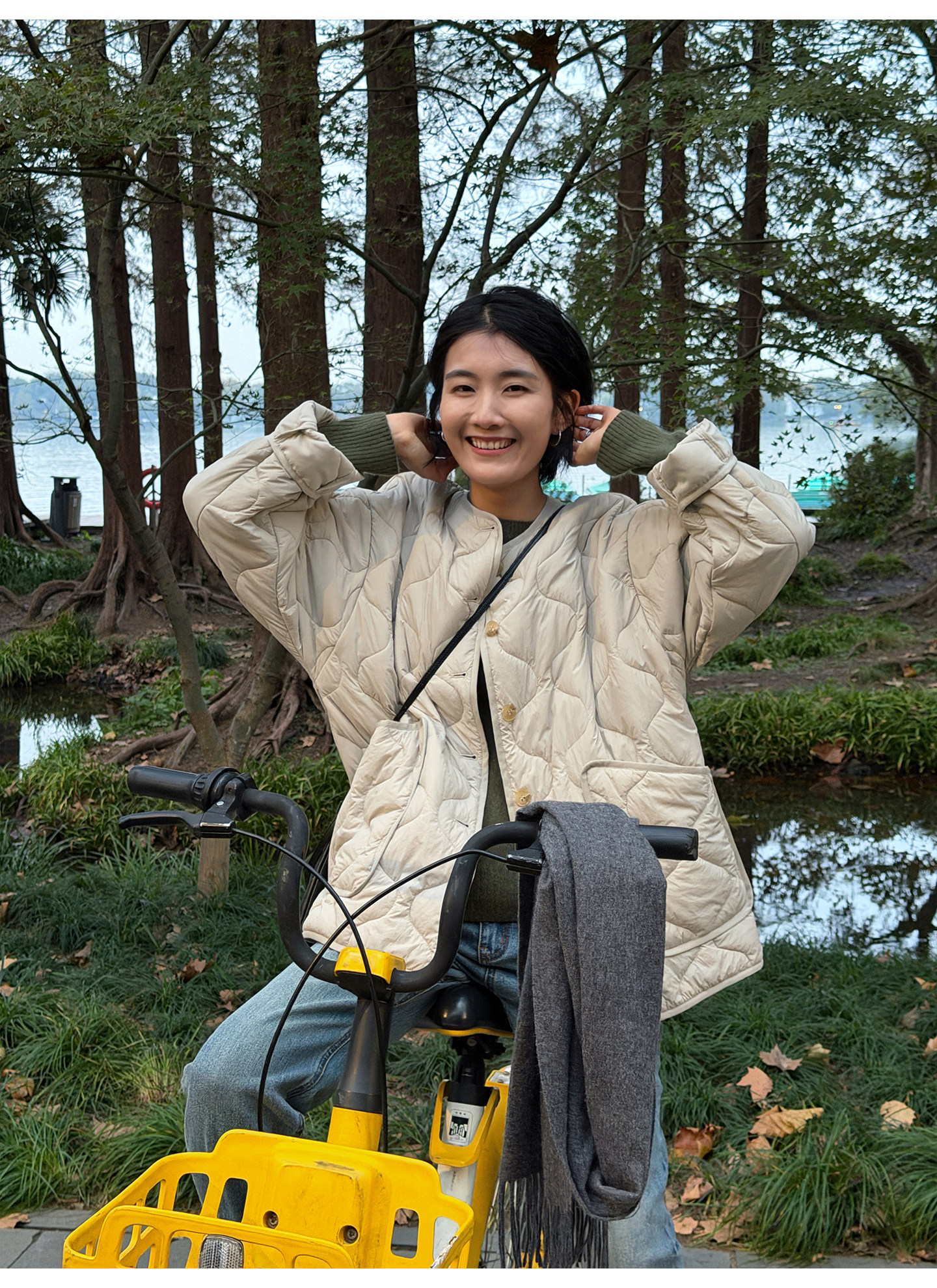 Langqing Apricot-Colored Quilted Padded Cotton Jacket 2026 New Early Spring Lightweight Warm Cotton Coat Round Neck Loose Jacket