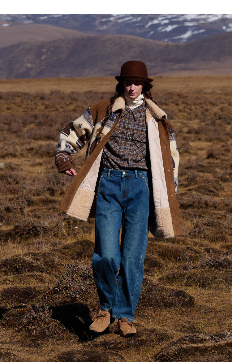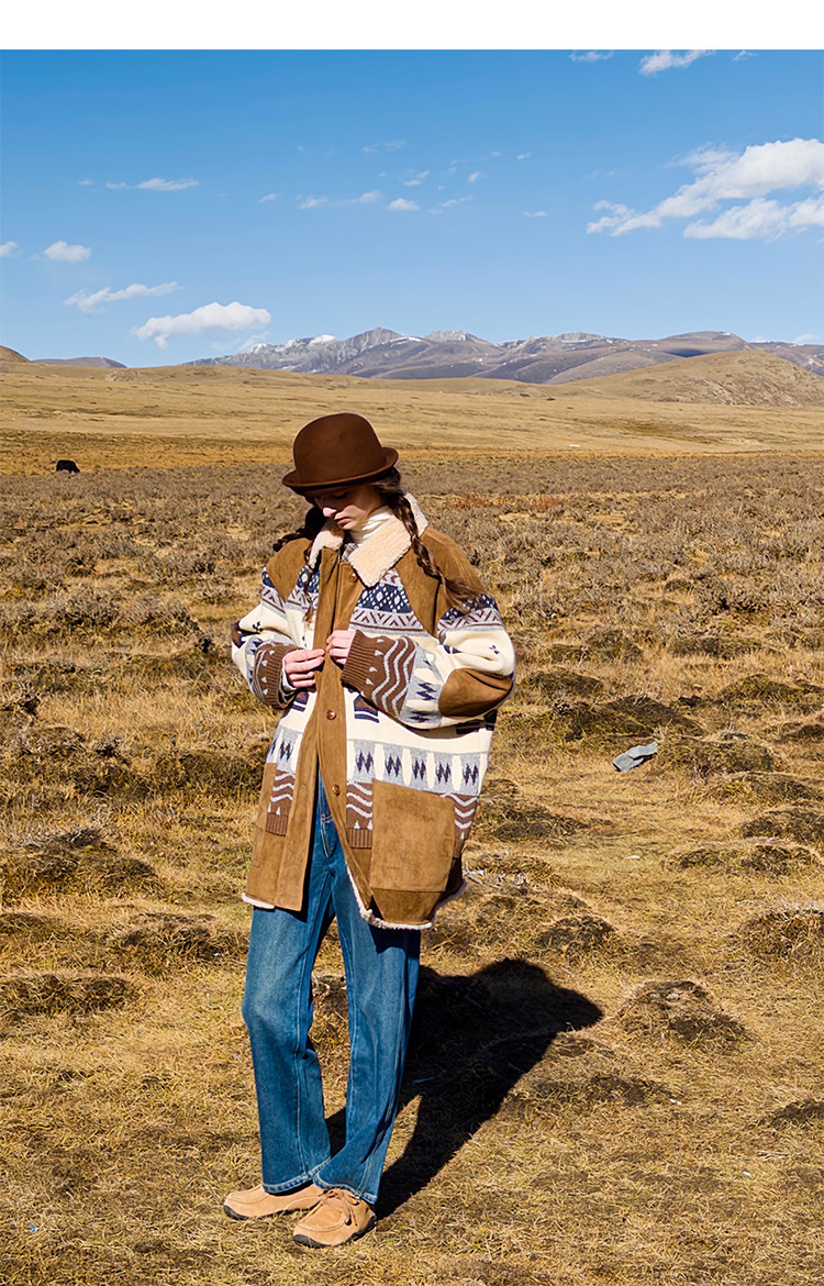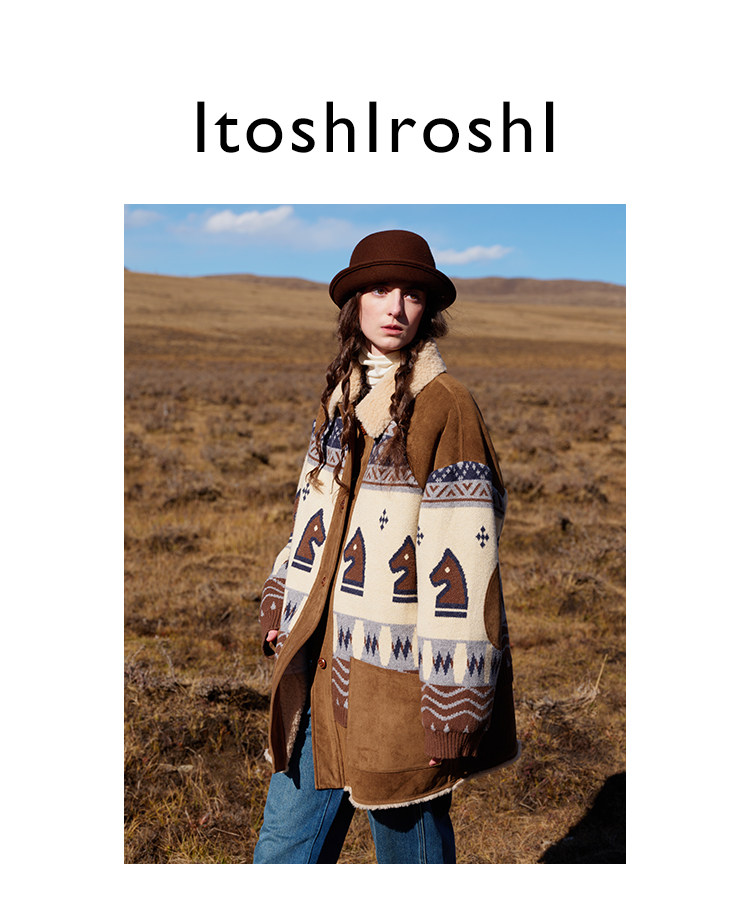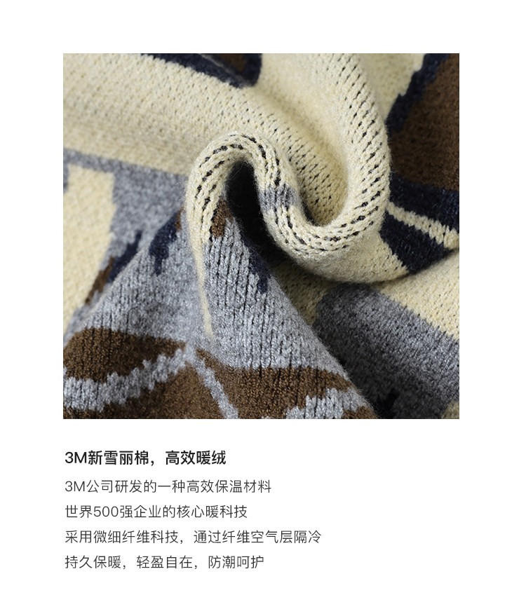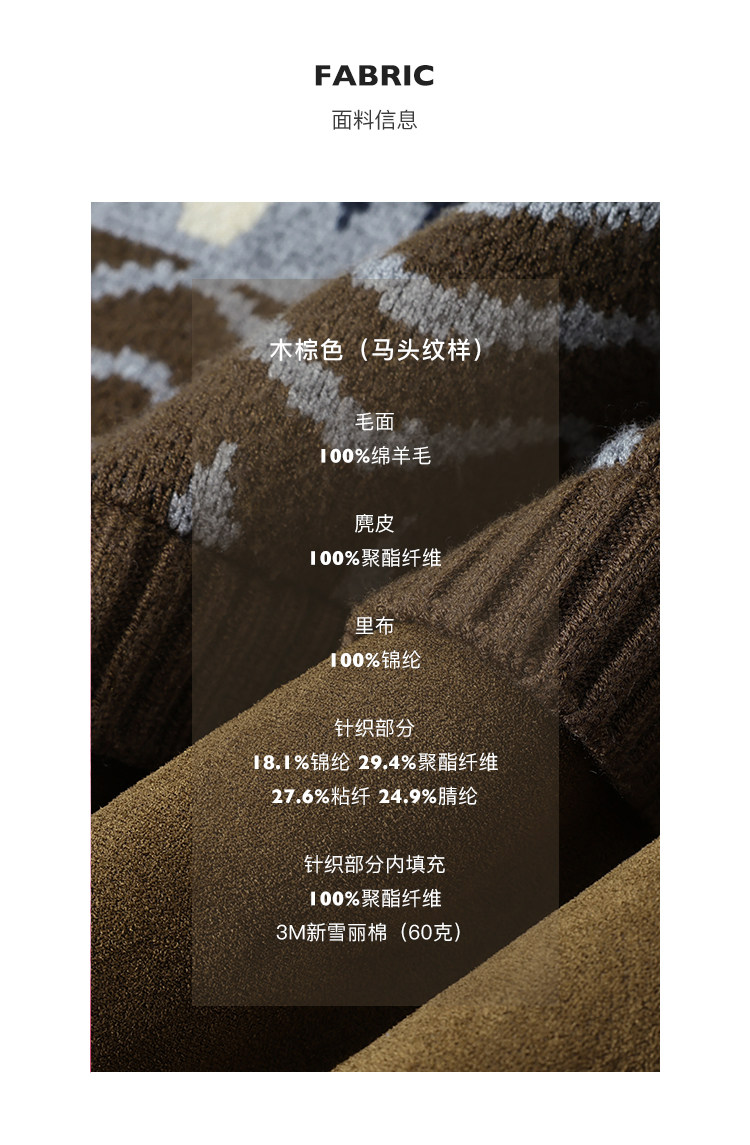 Itoshiroshi Lapel Wool and Fur Integrated Patchwork Horse Head Pattern Knitted 3m Thinsulate Padded Jacket