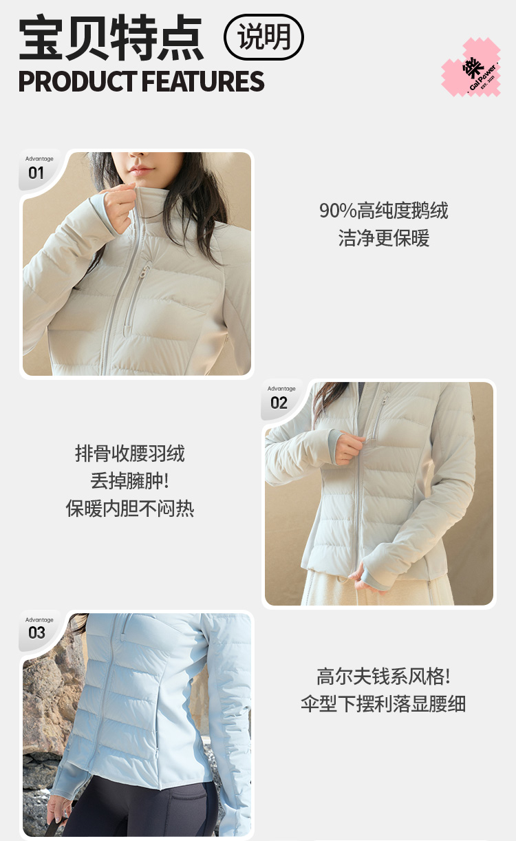 Slim-Fit Goose! Golf down Jacket with Inner Lining, Winter Goose down Jacket for Women, Stand Collar, Outdoor Warm Sports Fitness Coat.
