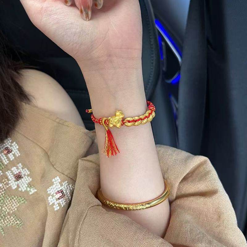Gold Pony Five Emperors Coin Zodiac Bracelet for Women New Model 999 Pure Gold Wealth-Bringing Gift for the Year of the Horse