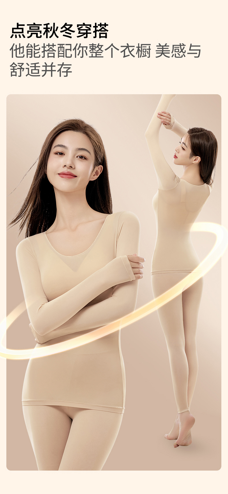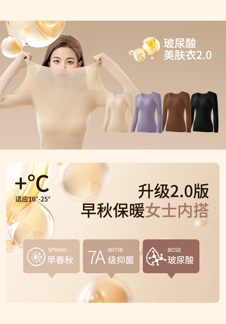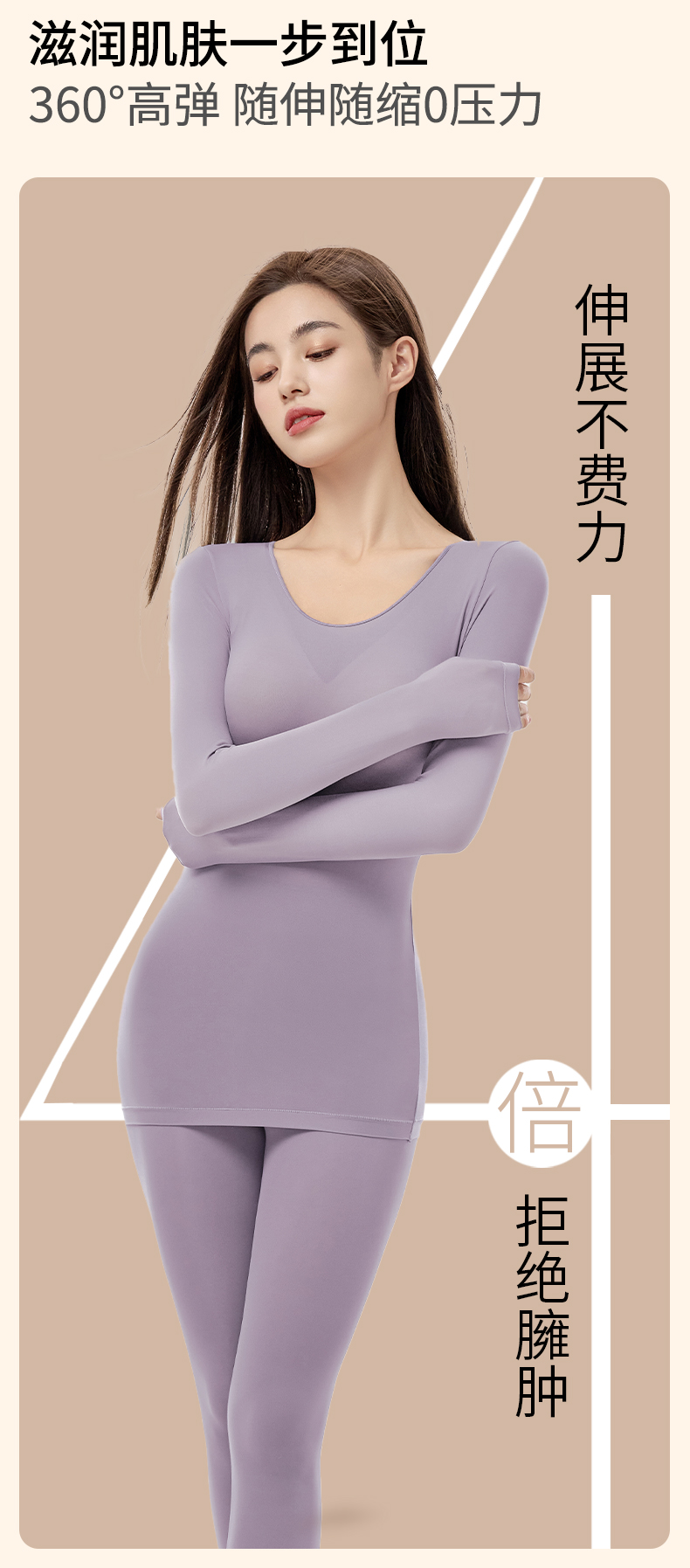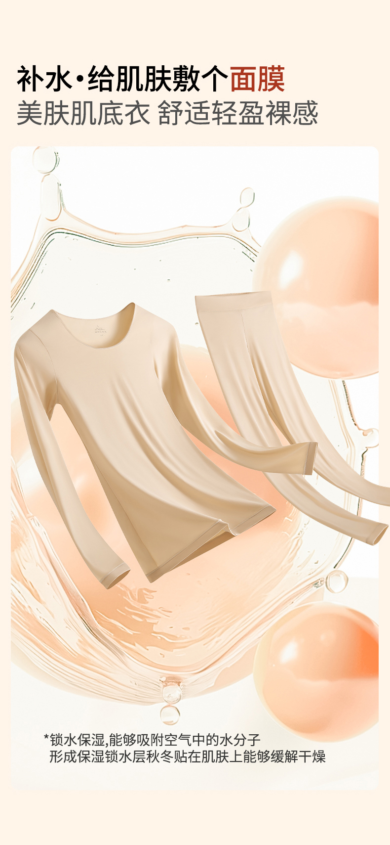 Hyaluronic Acid Skin-Beautifying Thermal Underwear Set for Women, 2025 New Style Base Layer Autumn Clothes and Pants, Thin Pajamas