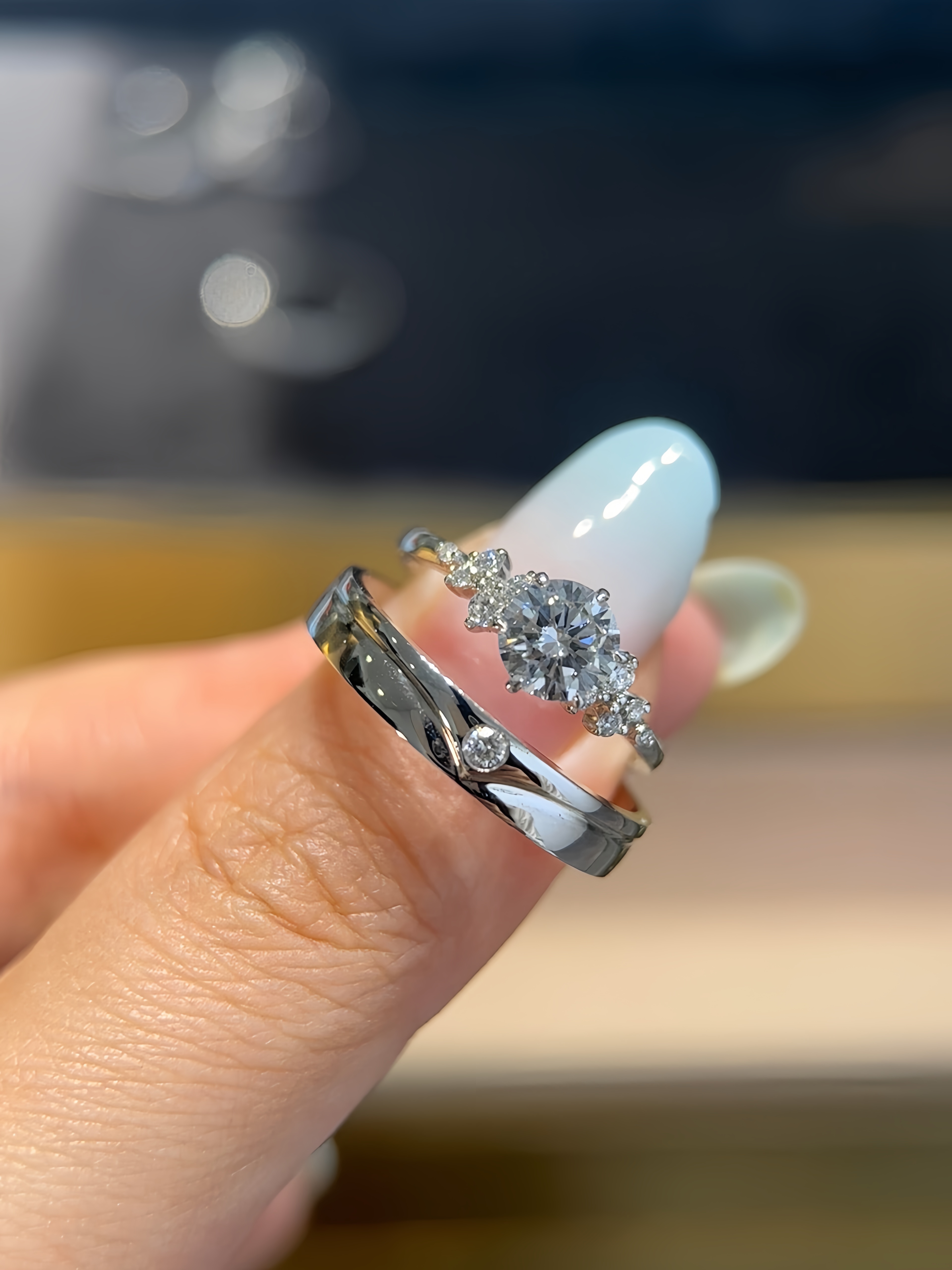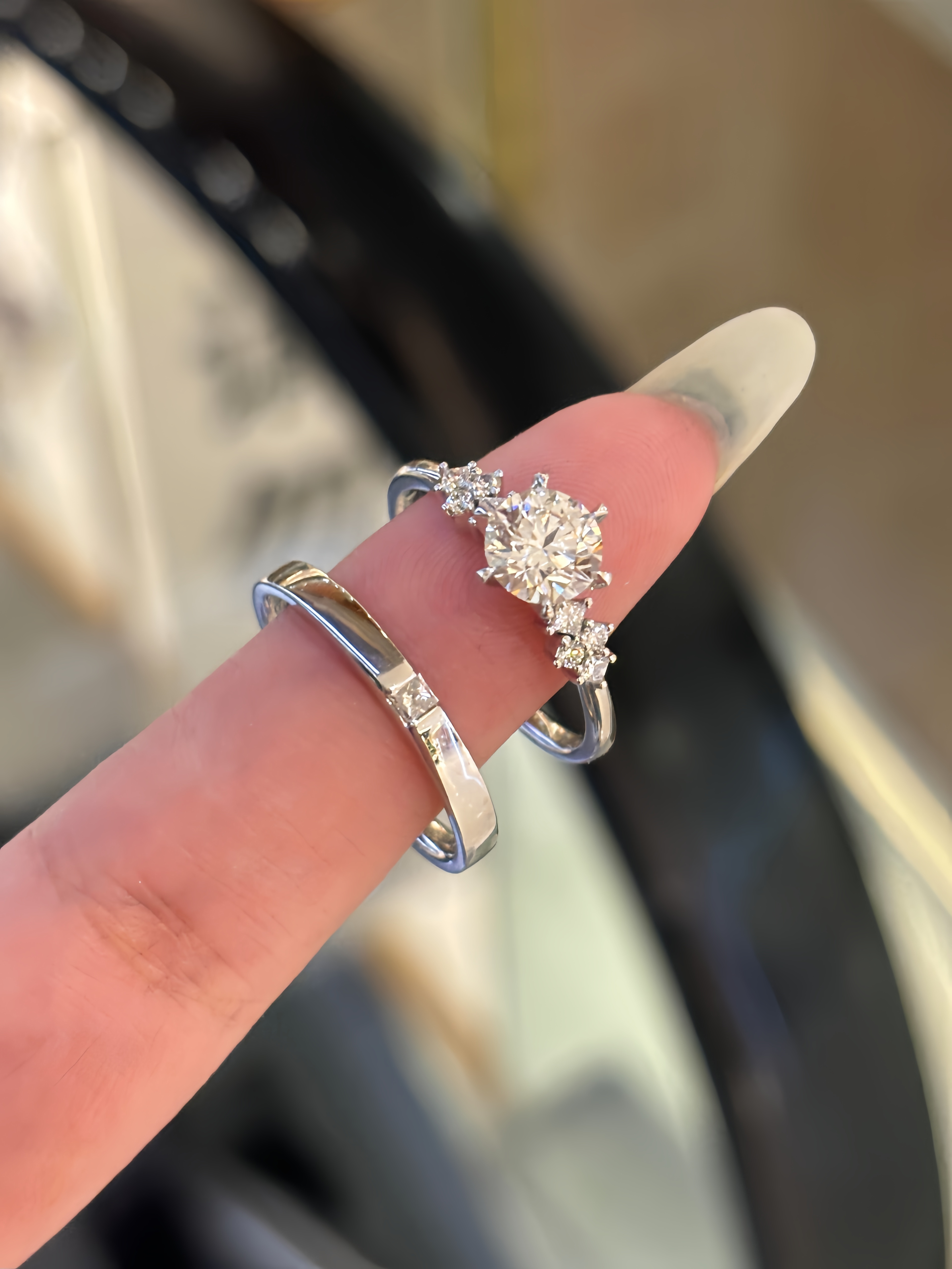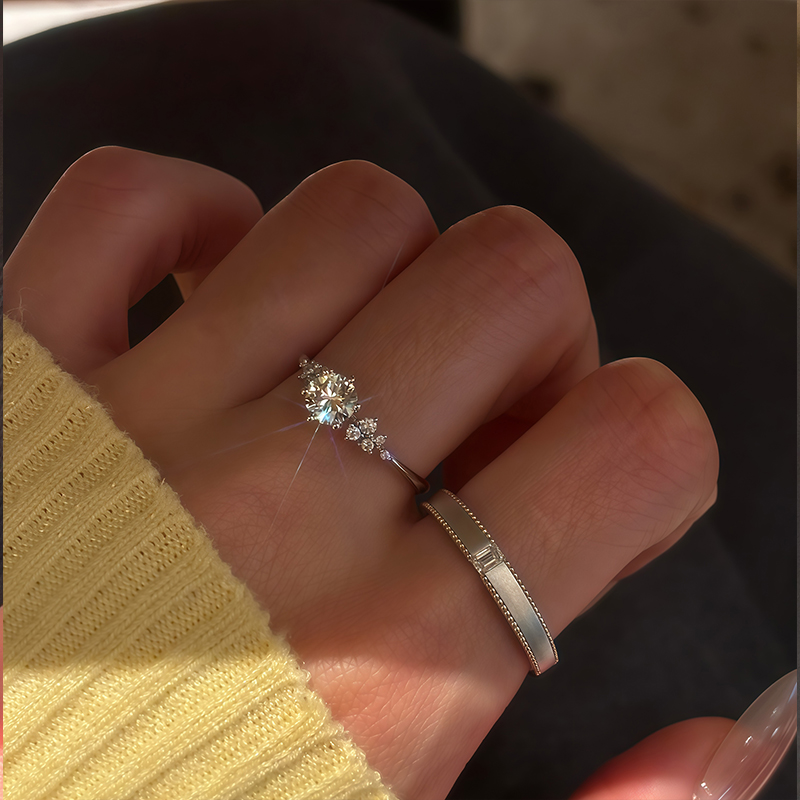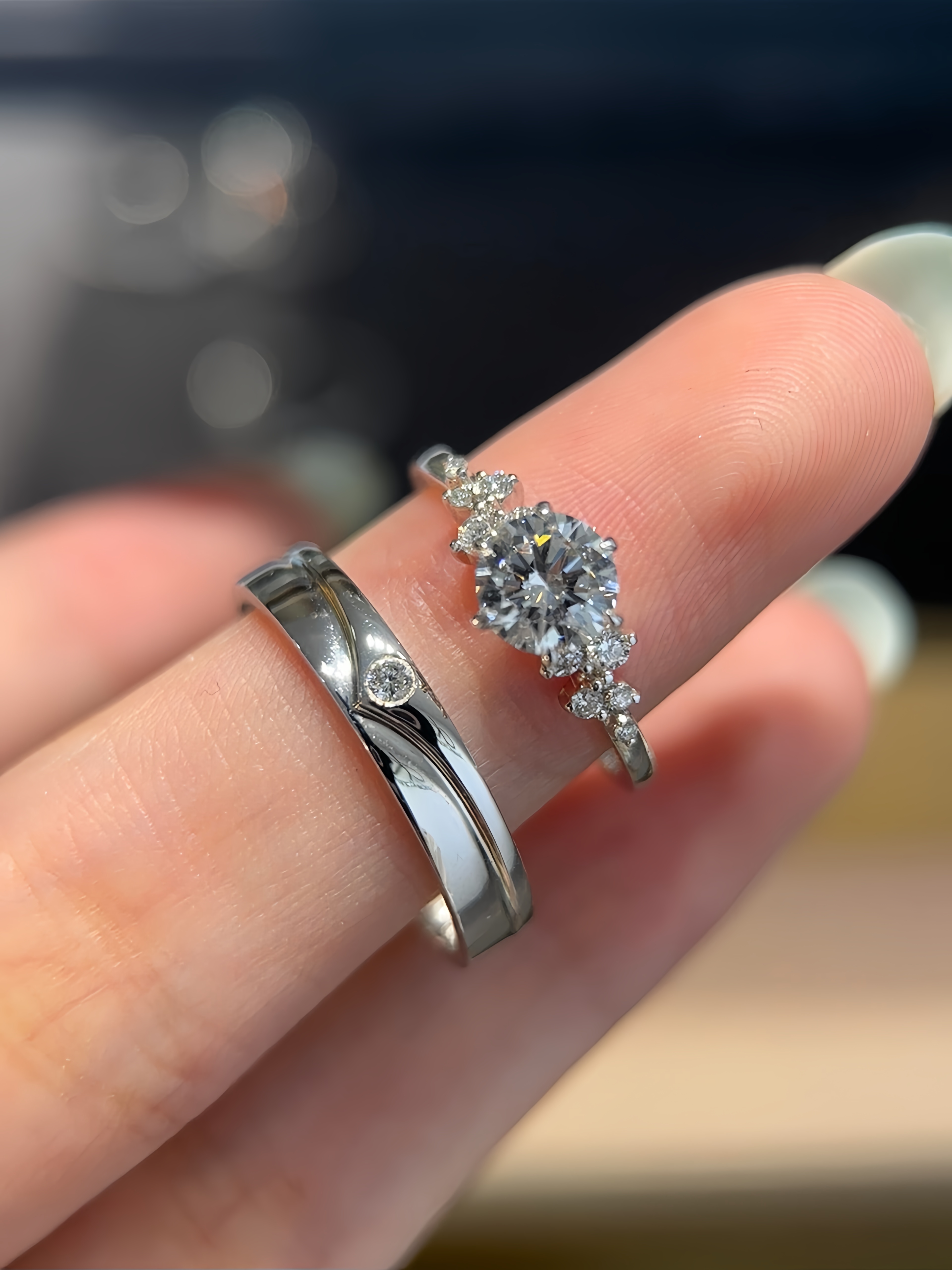 Sterling Silver Moissanite Diamond Ring for Women, Berlin Love Letter Couple Rings for Men and Women, Simulated Diamond Wedding Ring Gift