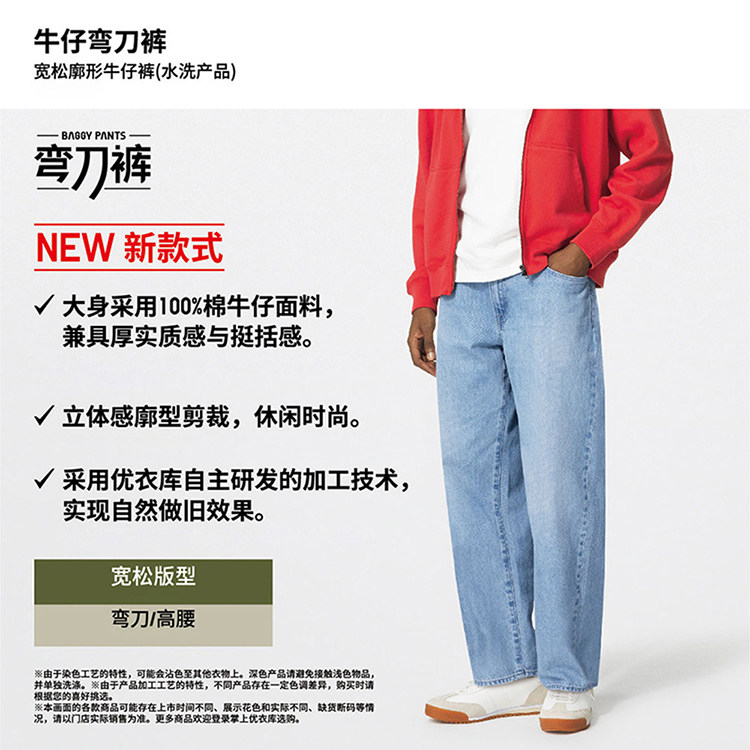Uniqlo Men's Loose Fit Jeans/Washed Denim Scythe Pants 482868