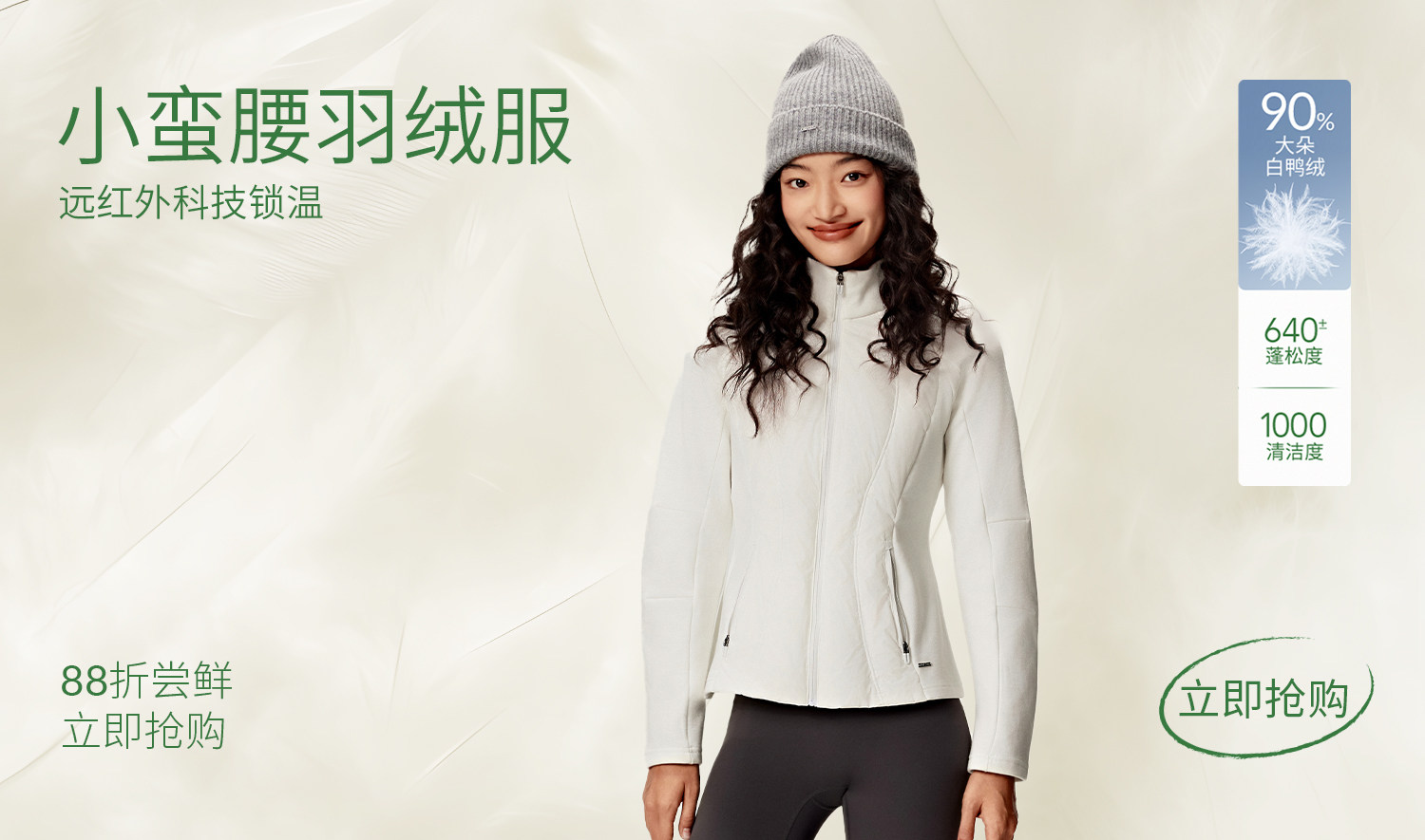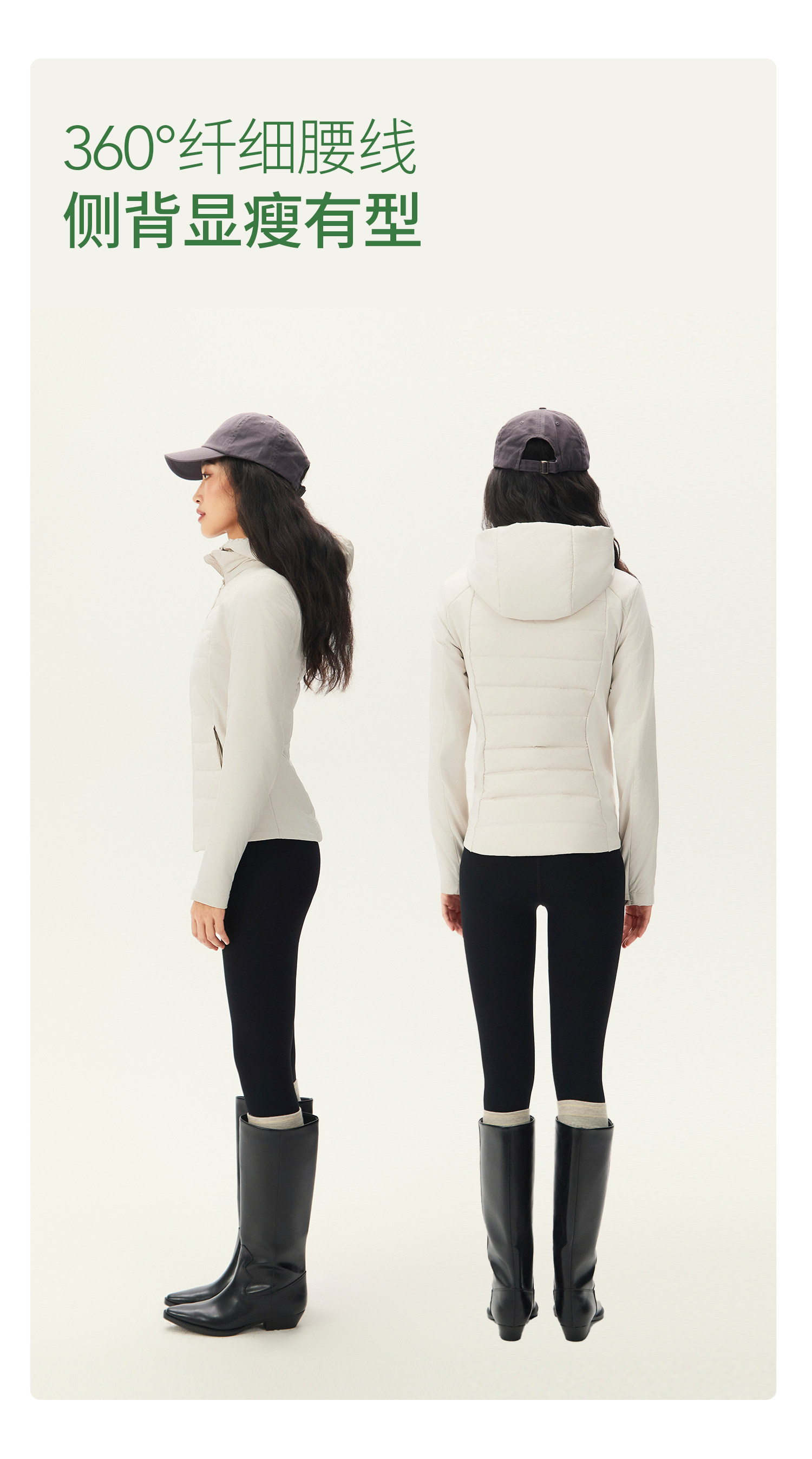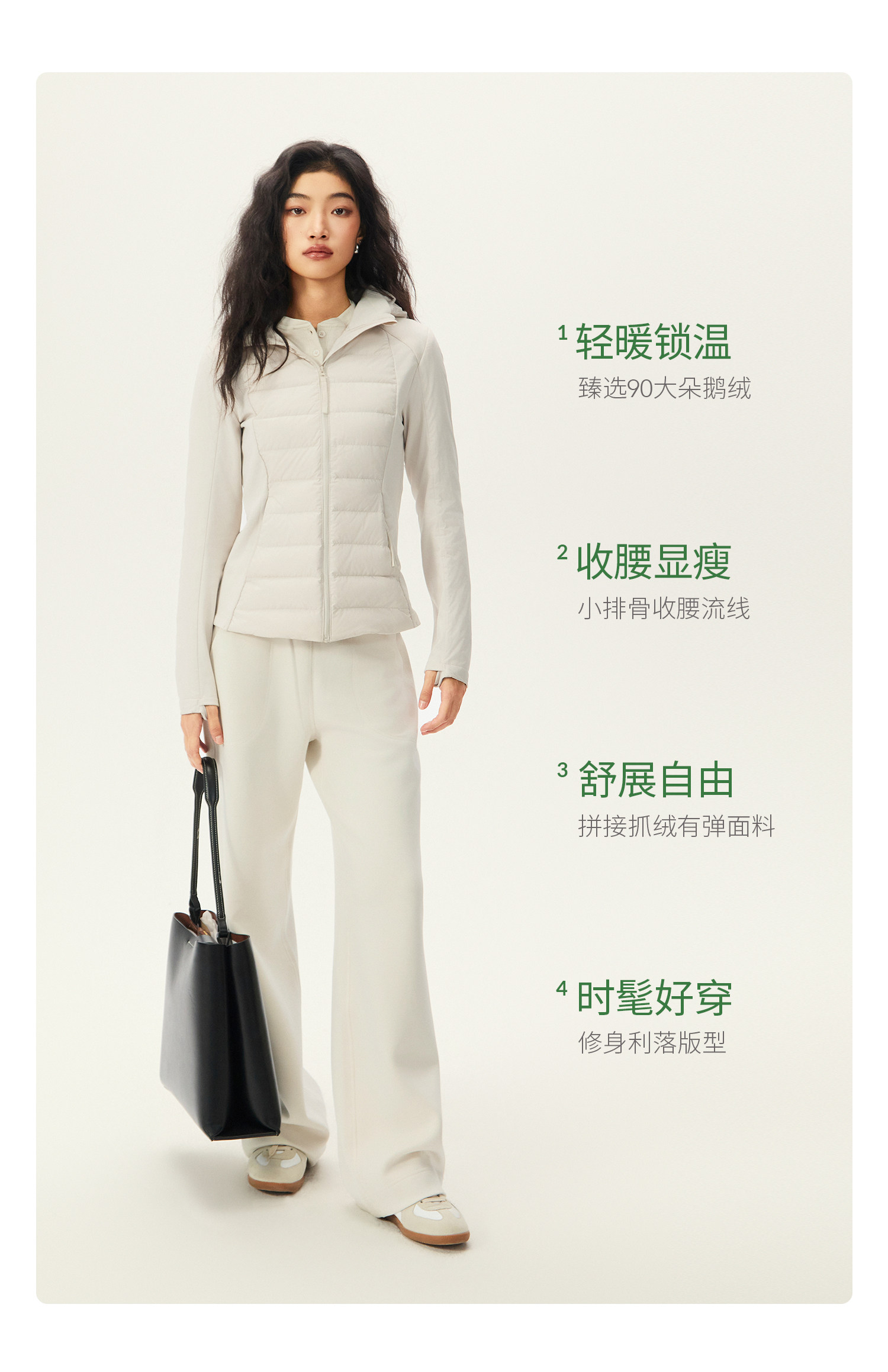 Yottoy 90 White Goose down Slim-Fit Women's down Jacket, Water-Resistant, Lightweight, Warm, Hooded, Winter
