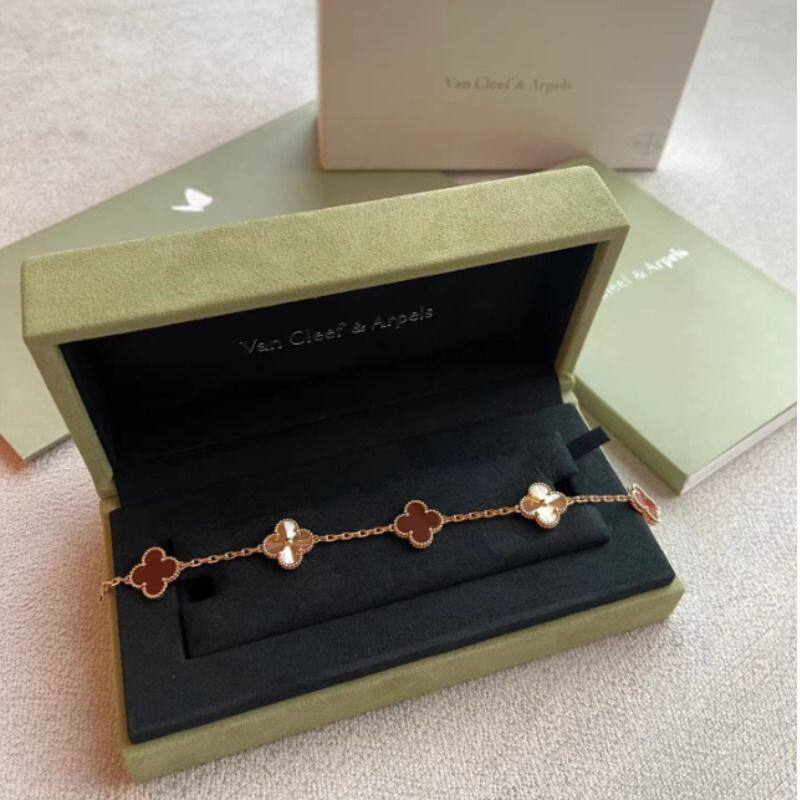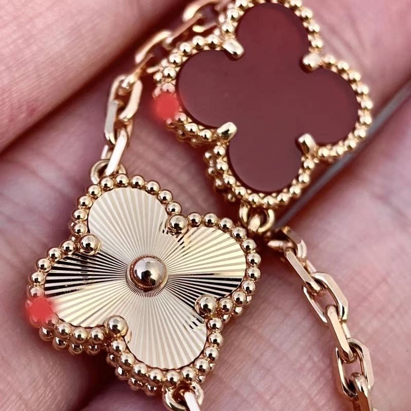 Top-Grade 18K Laser-Engraved Five-Leaf Clover Bracelet for Women, Light Luxury Jewelry, Stackable Hand Accessory, Gold, Mother-Of-Pearl, Tiger's Eye Stone