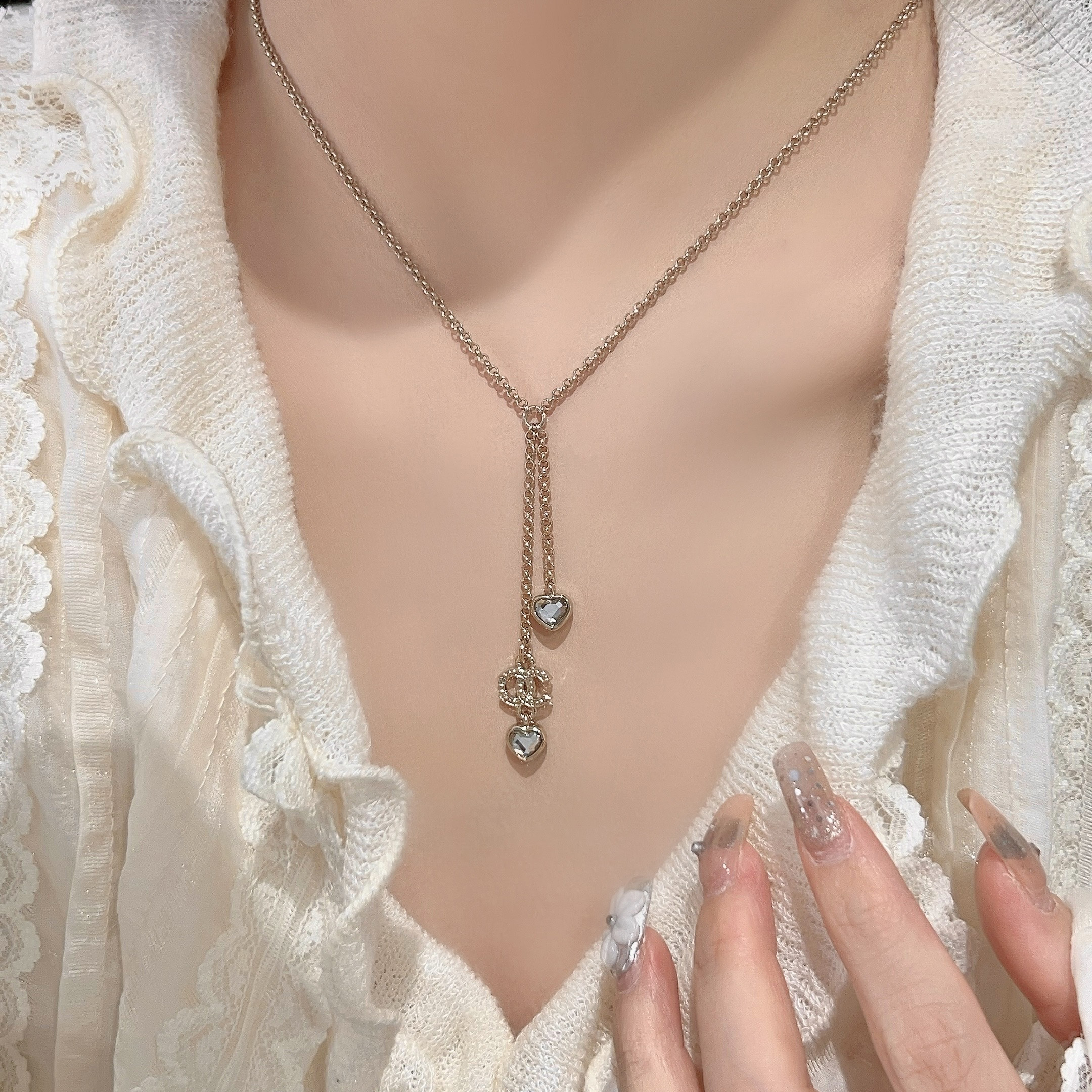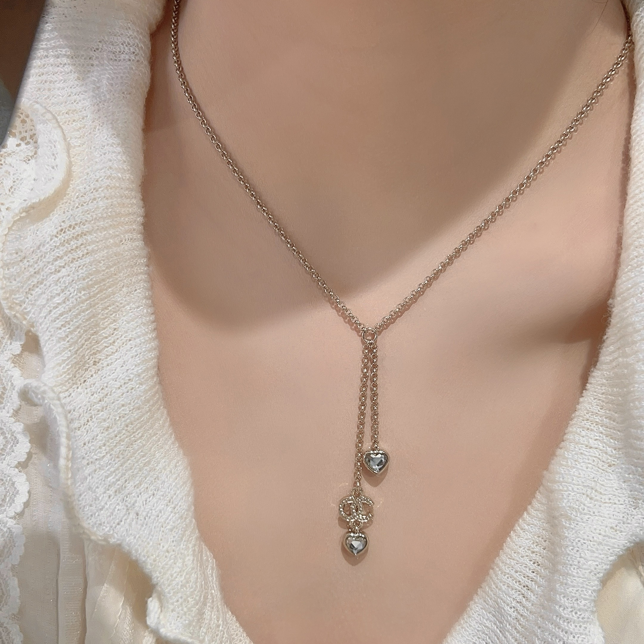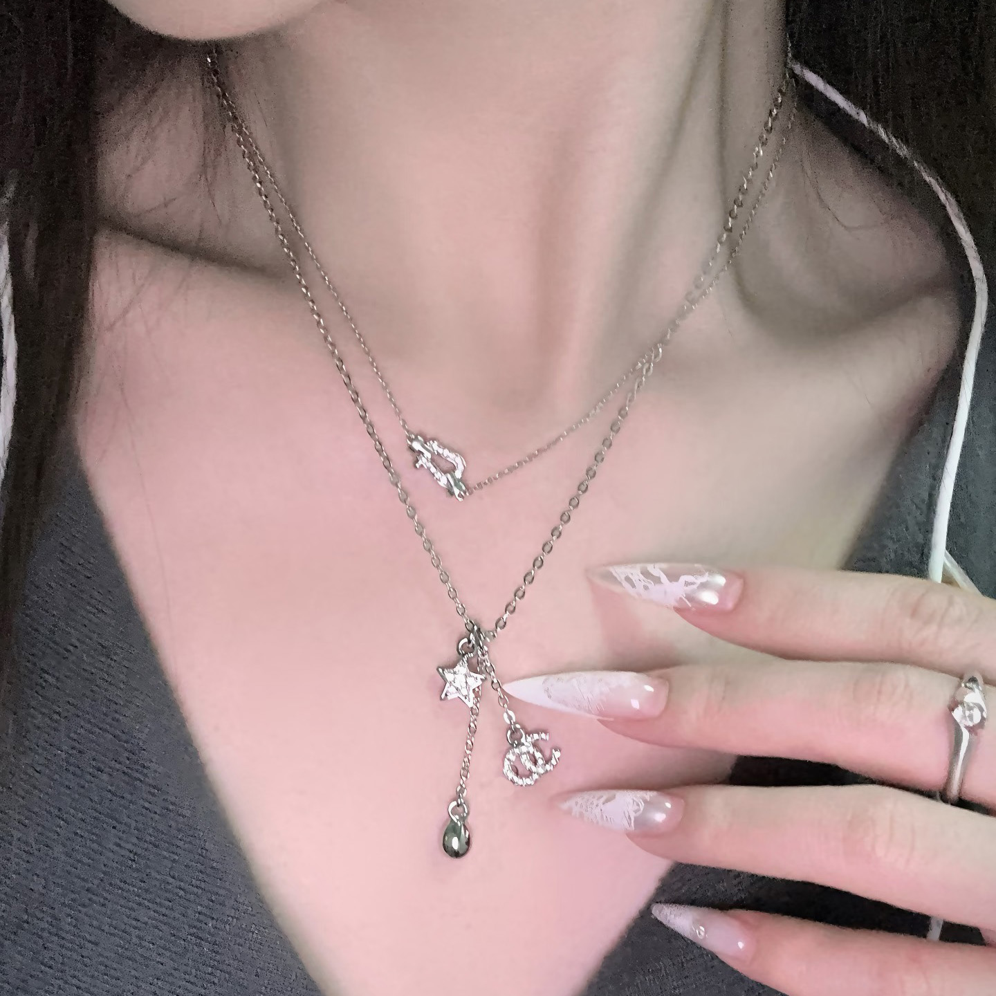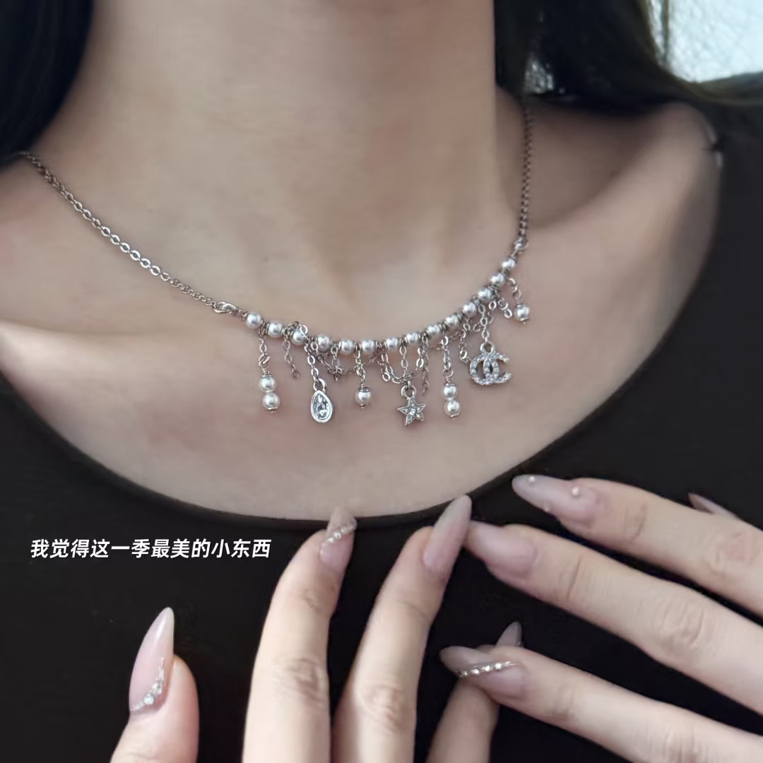High-End 26C New Three-In-One Silver Star Necklace, Vintage Five-Pointed Star Tassel Water Drop Diamond Pearl Choker