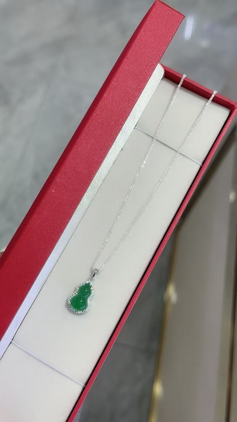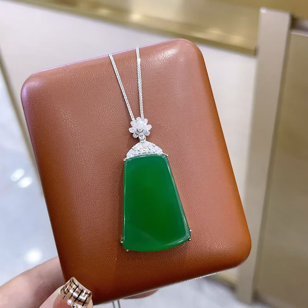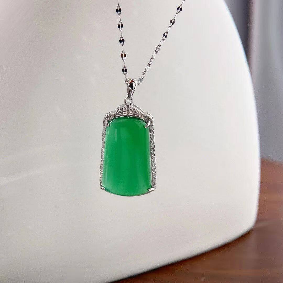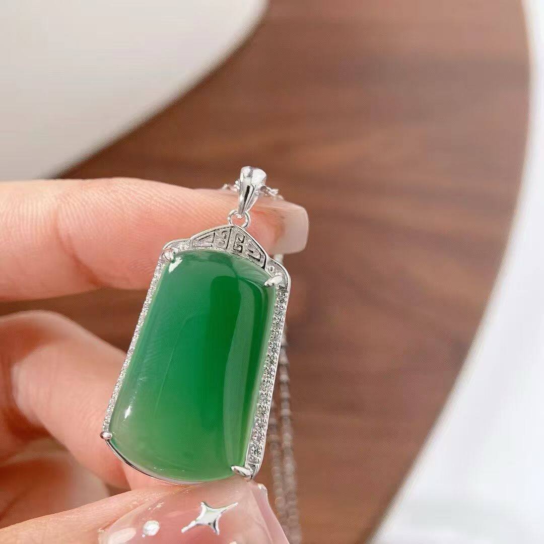 S925 Sterling Silver Inlaid with Natural Green Chalcedony Peace Amulet Ice Type Sun Green Pendant Women's Necklace Birthday Gift