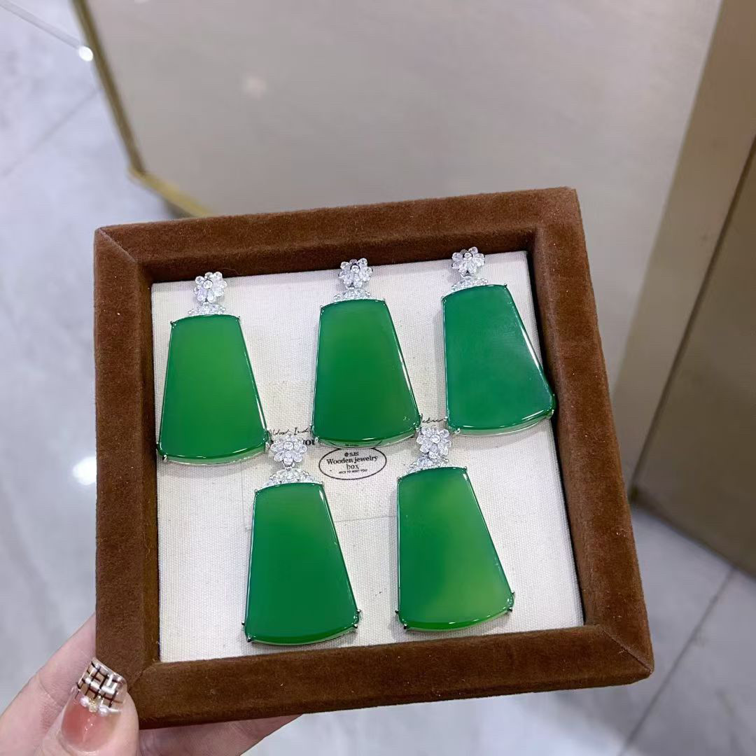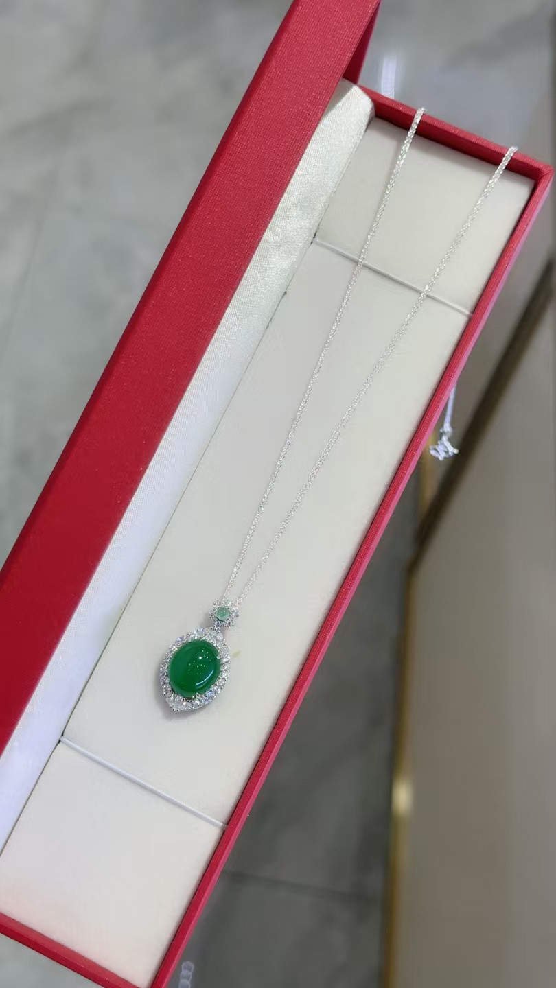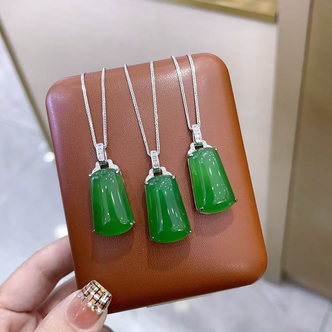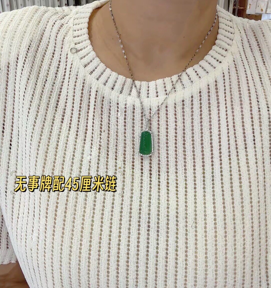 S925 Sterling Silver Inlaid with Natural Green Chalcedony Peace Amulet Ice Type Sun Green Pendant Women's Necklace Birthday Gift